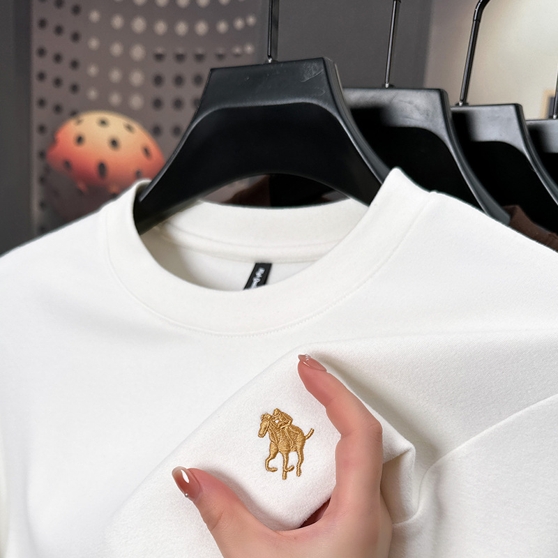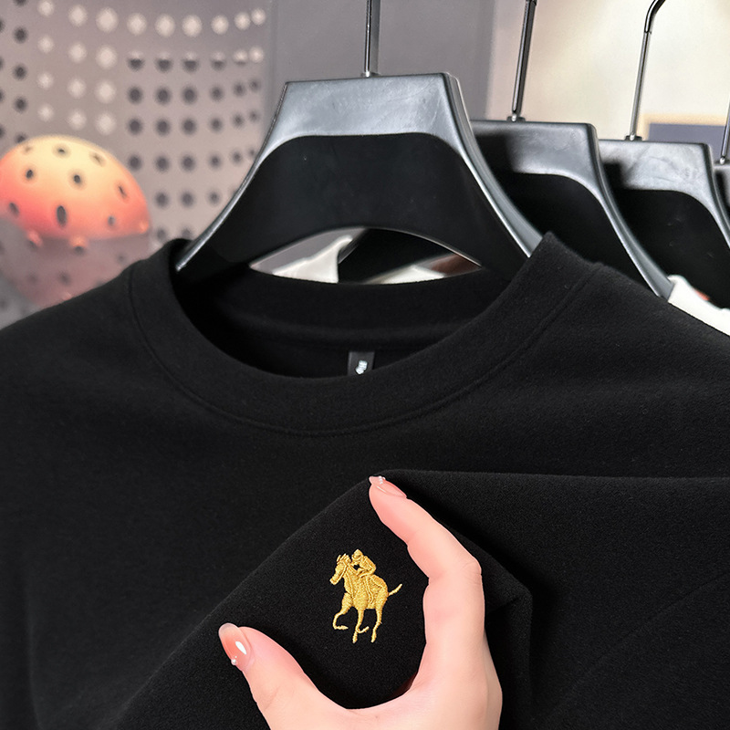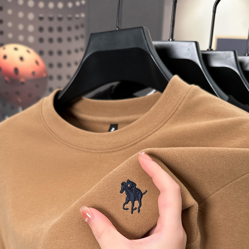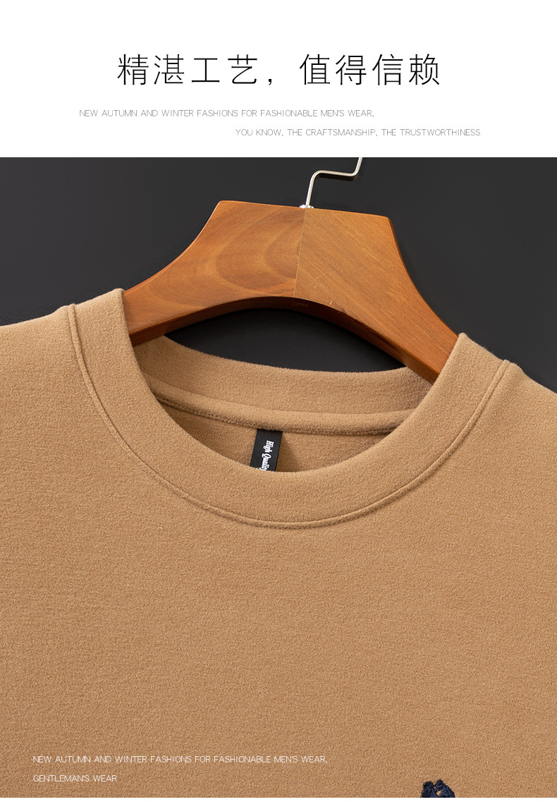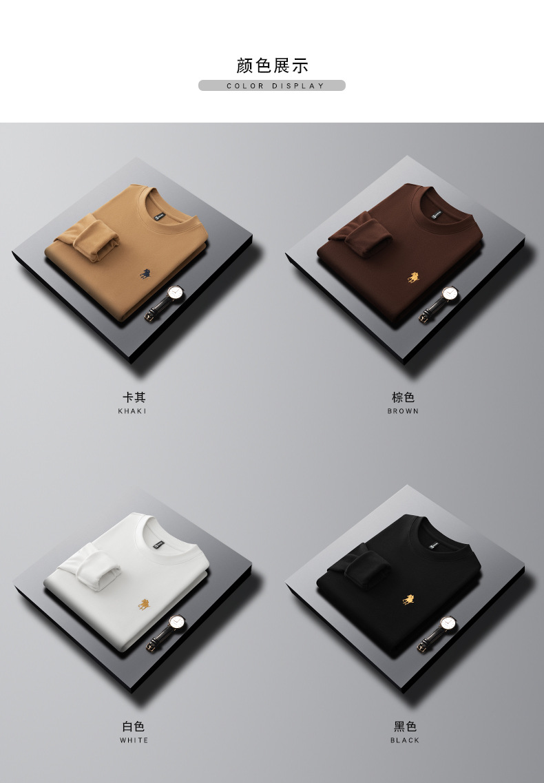 펜슨 롱 드 벨벳 베이스 셔츠 남성 속옷 가을과 겨울 하프 하이 칼라 중년 자수 티셔츠 남성용 따뜻한 탑