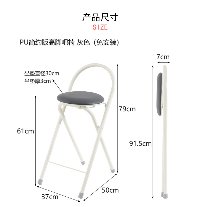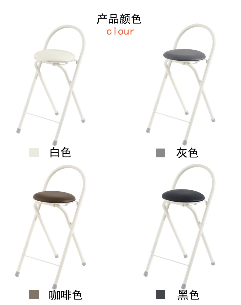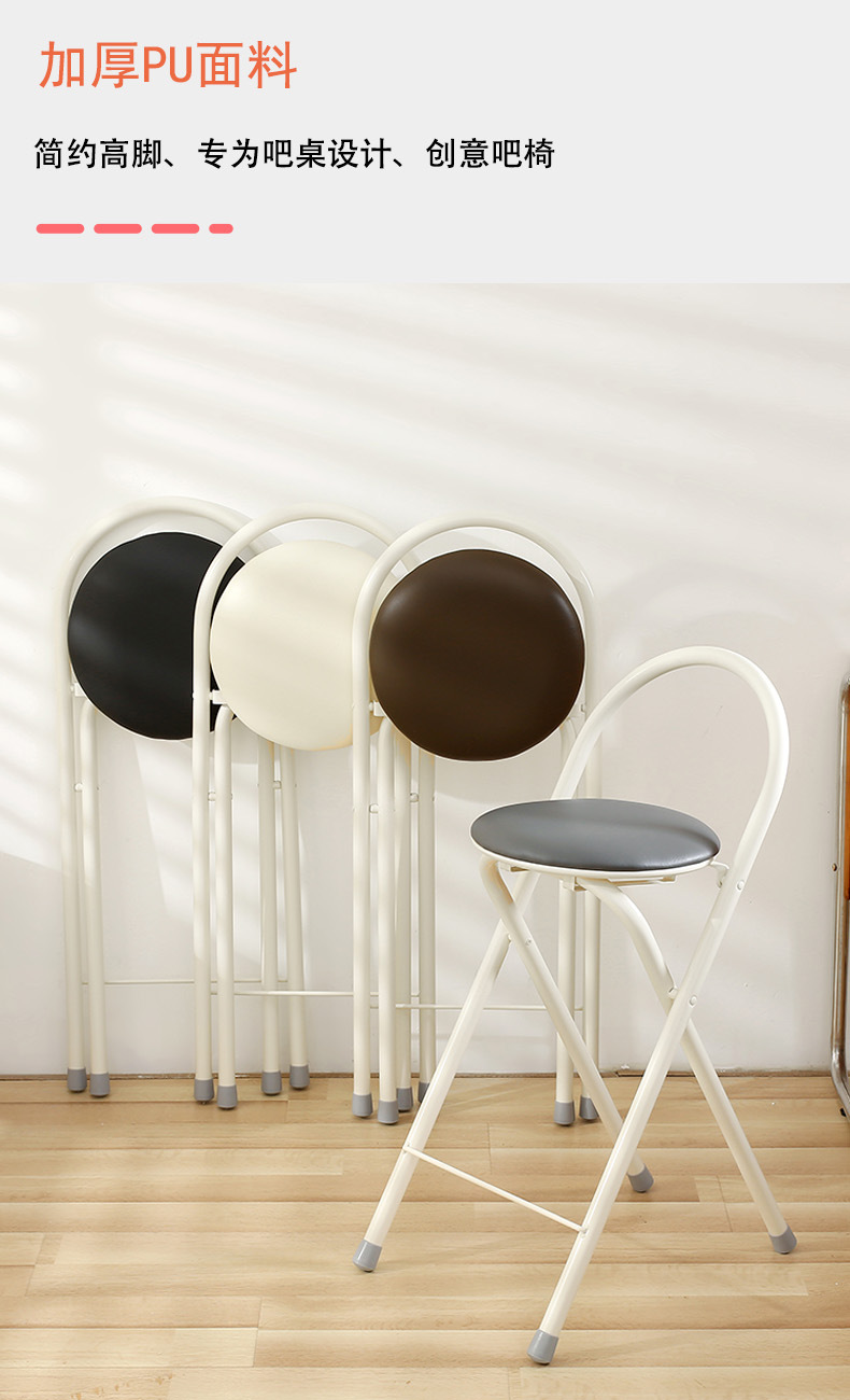 간단한 접이식 바 의자 높은 발 등받이 흰색 PU 바 테이블 의자 식탁 캐주얼 가정용 바 식당