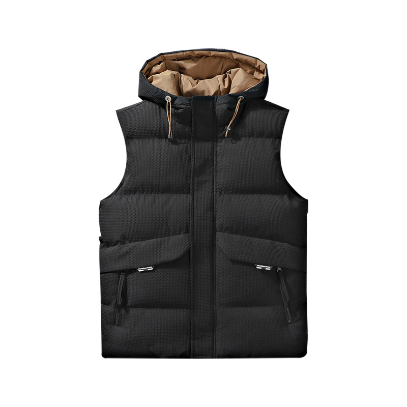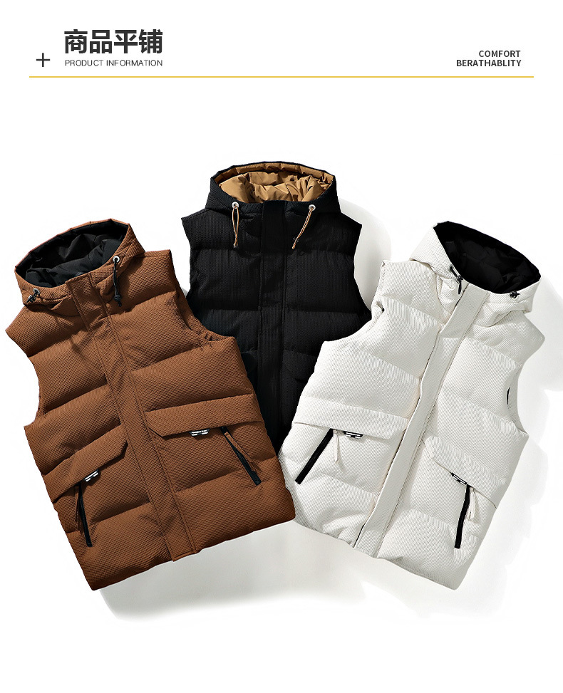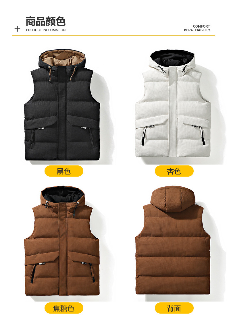 가을과 겨울 폭발 후드 조끼 남성용 자카드 느슨한 다운 면 따뜻한 두꺼운 레이스 면 조끼 커플 조끼 모든 매치