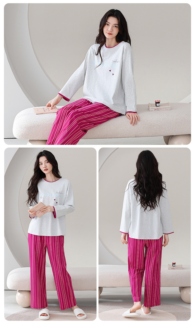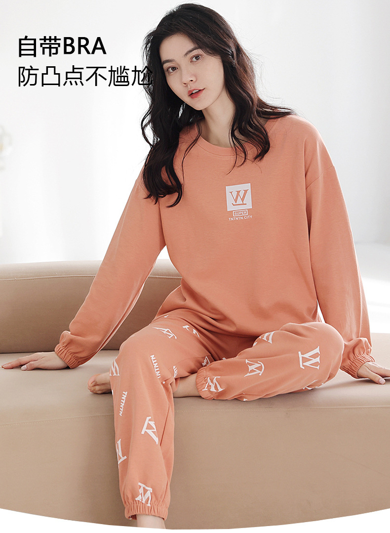 100% 면화 잠옷 가을과 겨울 여성 만화 캐주얼 얇은 가슴 패드는 가정 착용 봄 및 가을 세트 밖에서 착용 할 수 있습니다