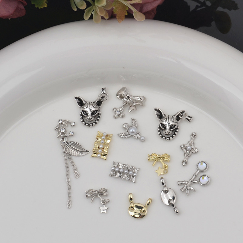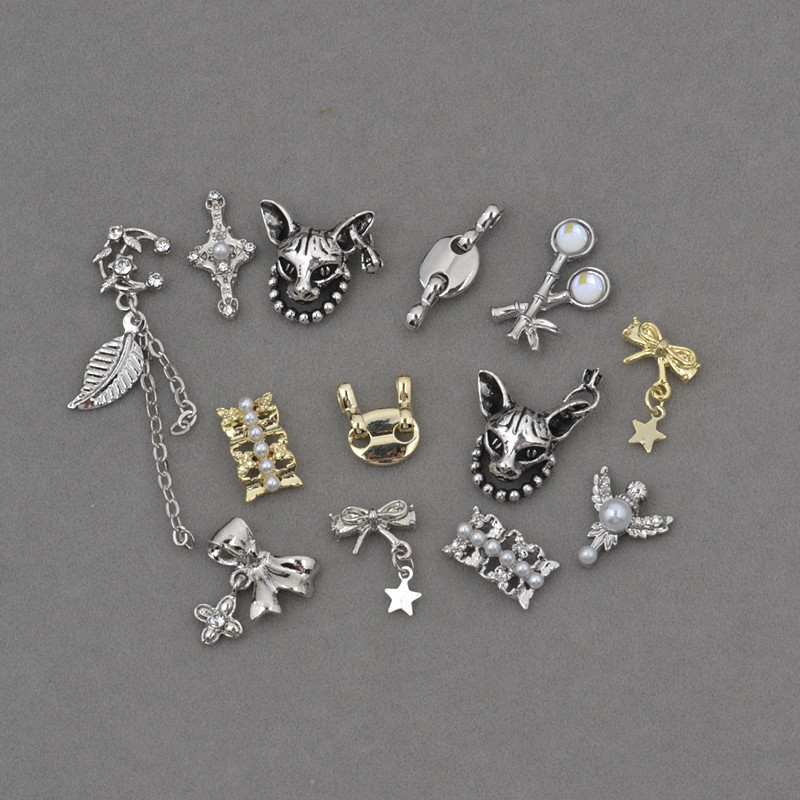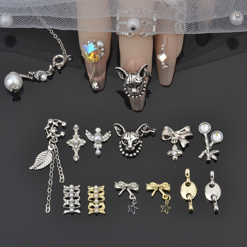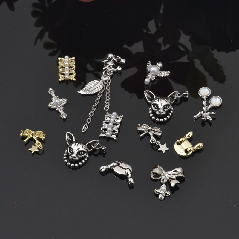 네일 아트 쥬얼리 다크 펑크 활 펜던트 대나무 체인 문 합금 날개 크로스 스커트 드릴