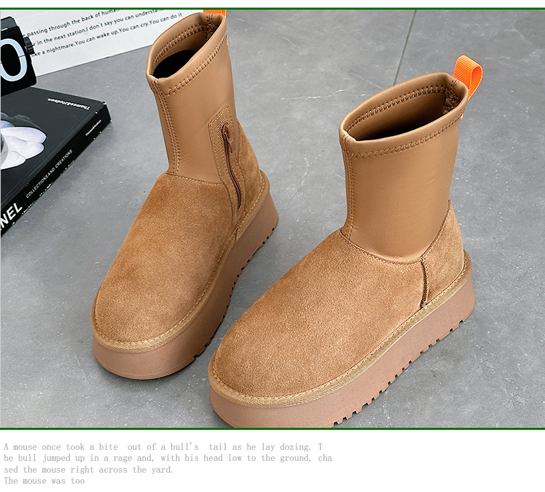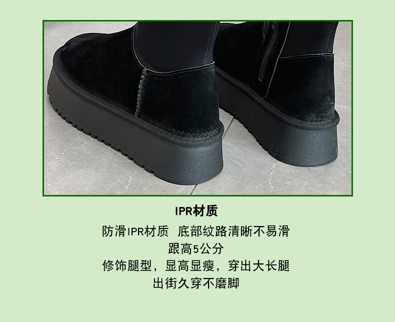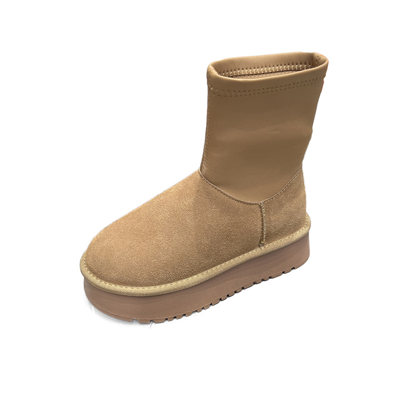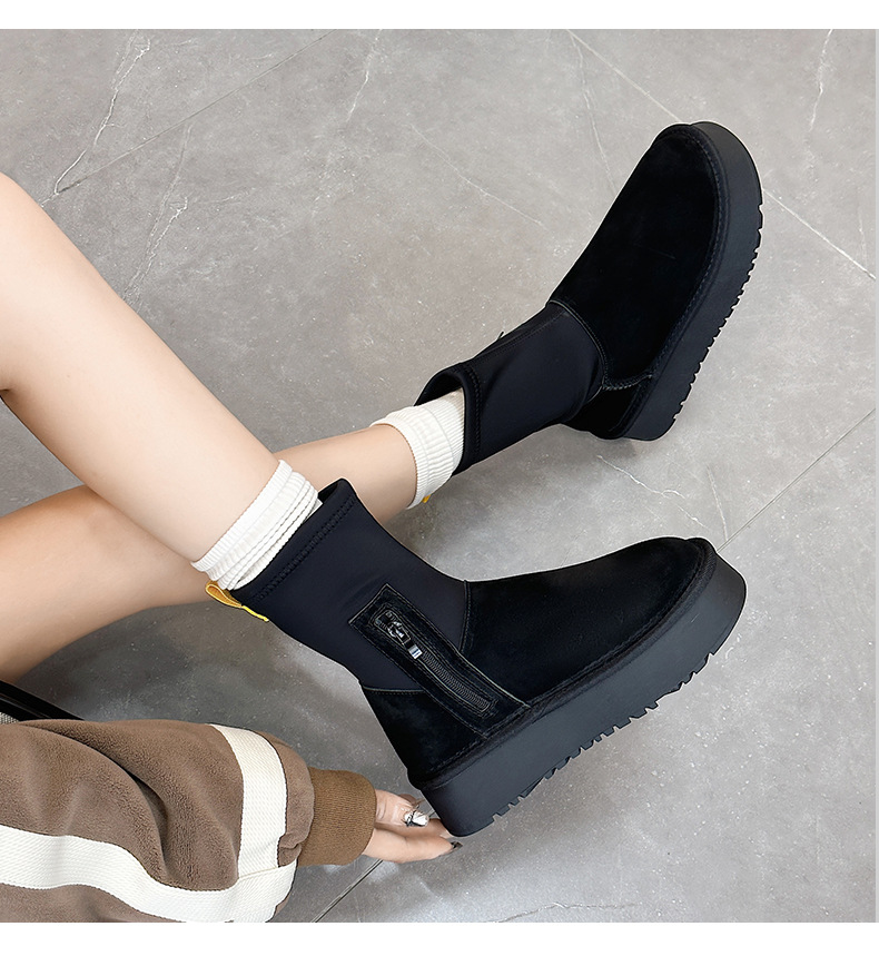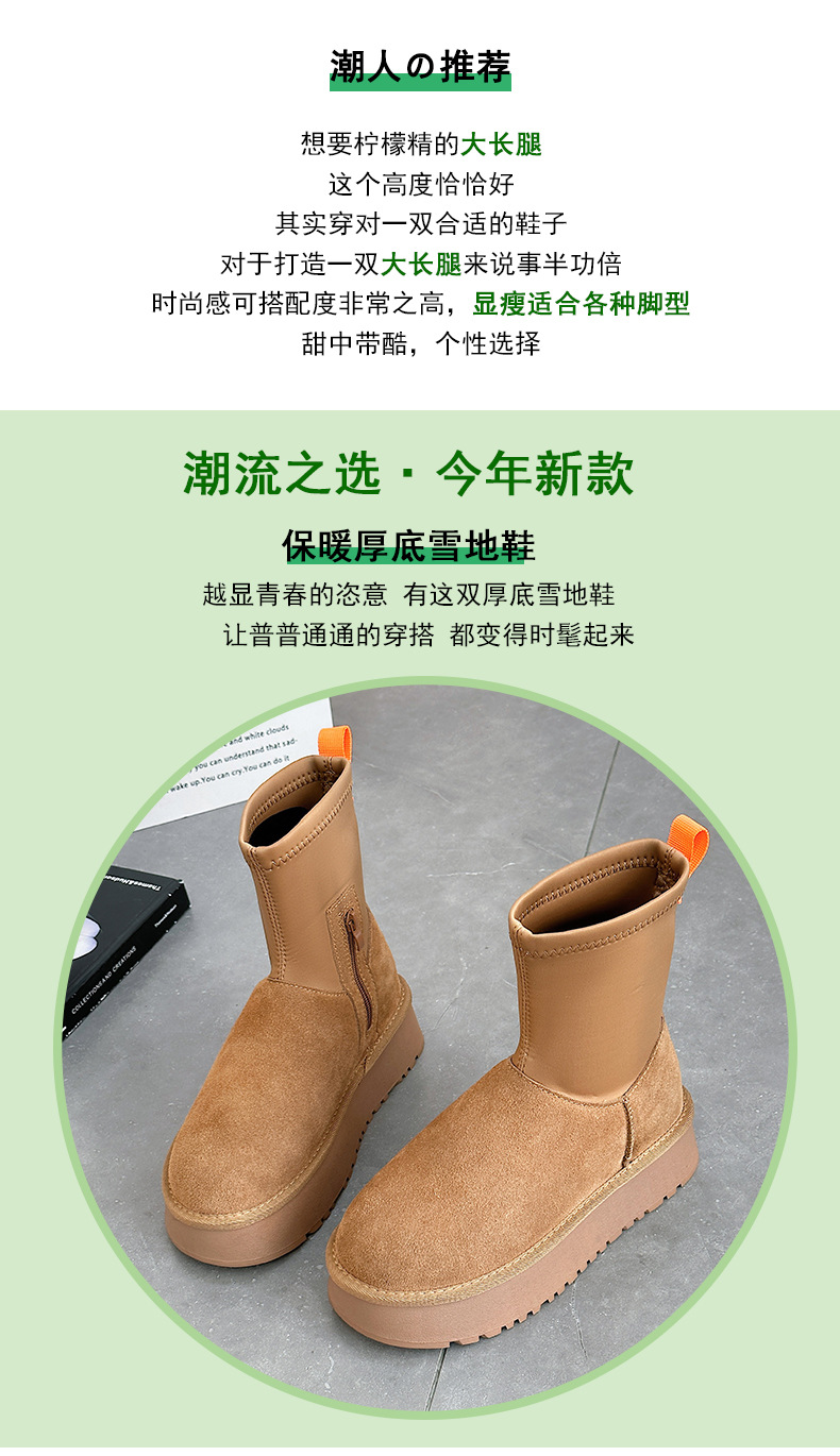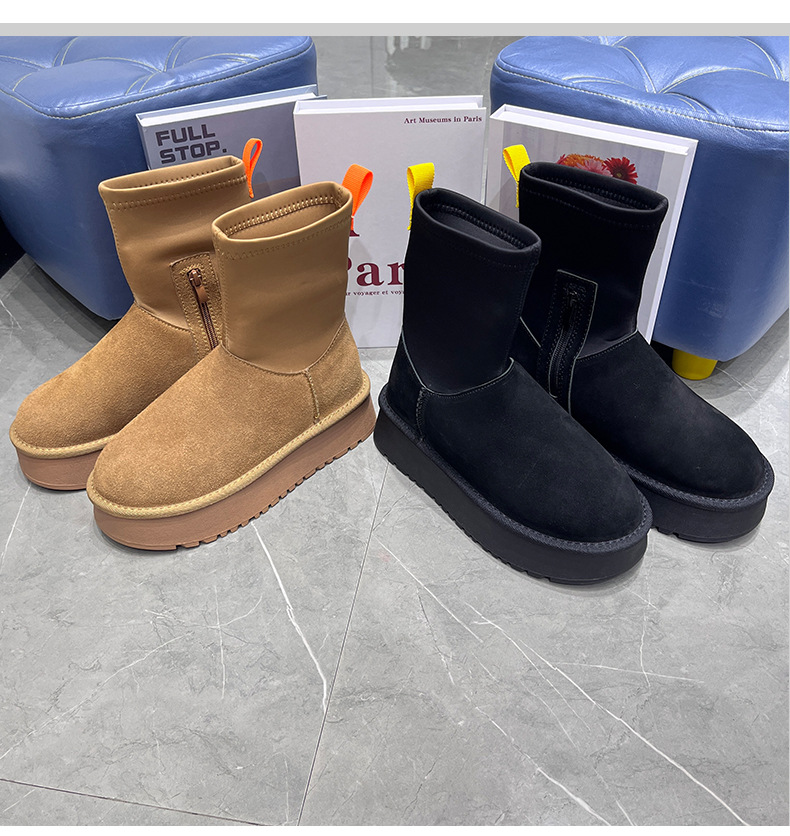 동북 기모 스노우 부츠 여자의 2023 겨울 정품 가죽 두꺼운 스키니 스트레치 부츠 미들 튜브 코튼 부츠 노래 Yanfei