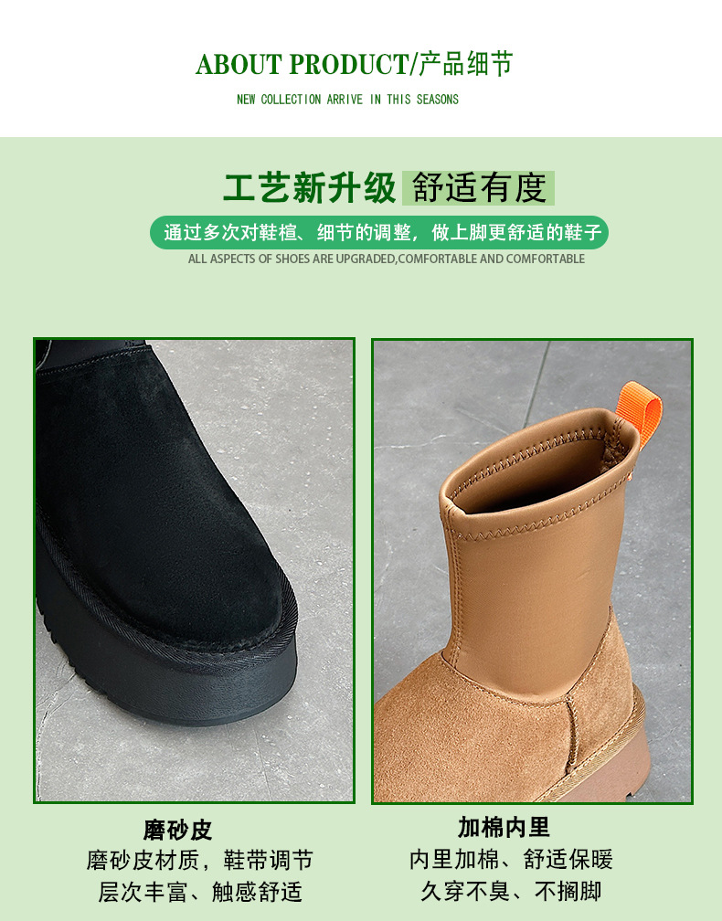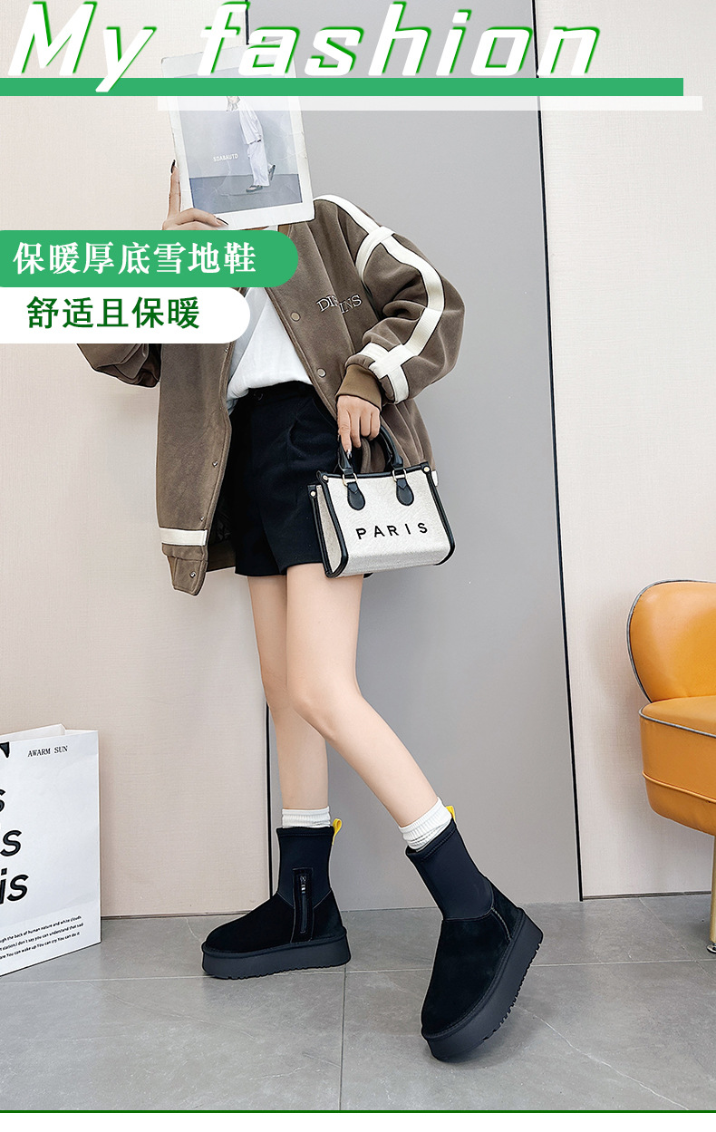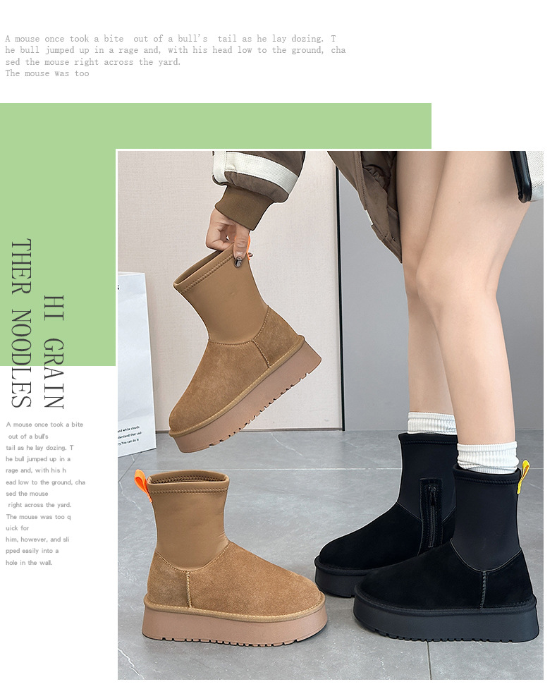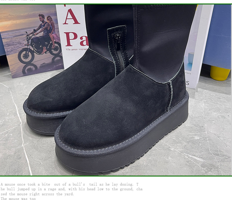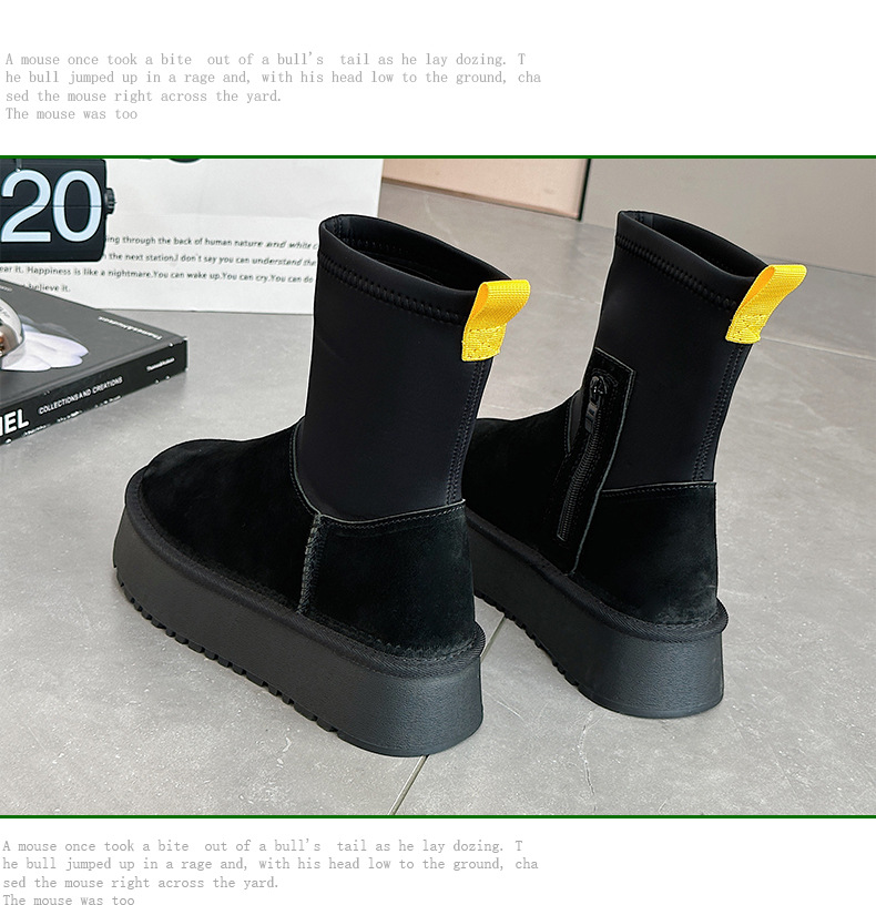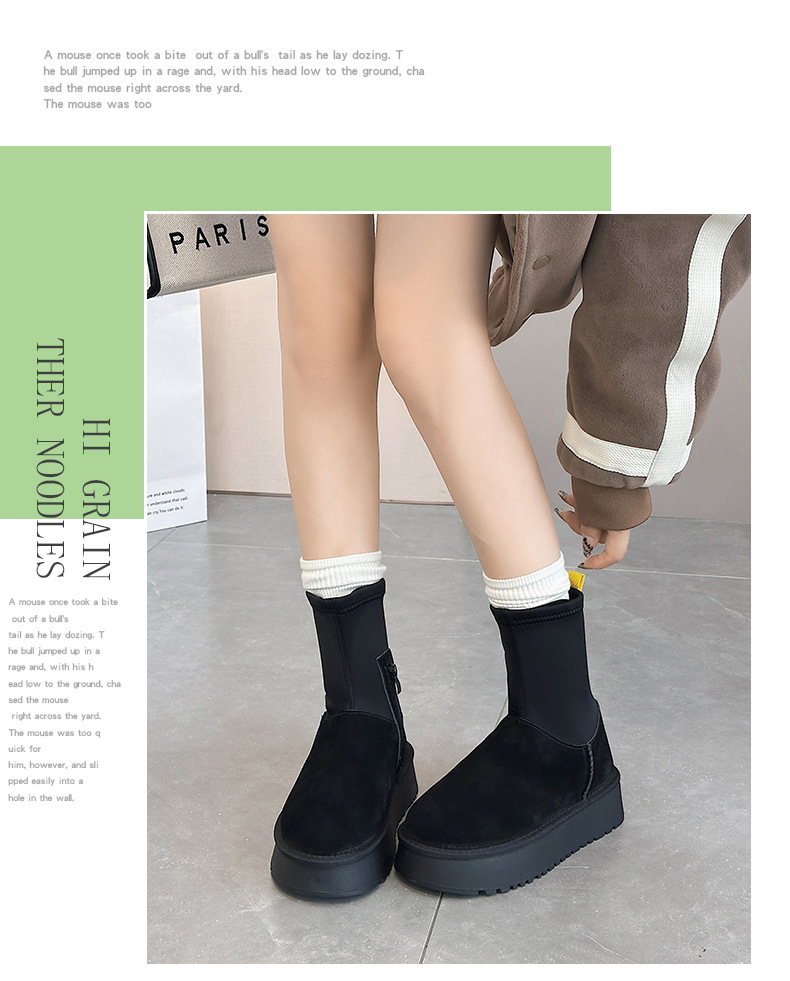 동북 기모 스노우 부츠 여자의 2023 겨울 정품 가죽 두꺼운 스키니 스트레치 부츠 미들 튜브 코튼 부츠 노래 Yanfei