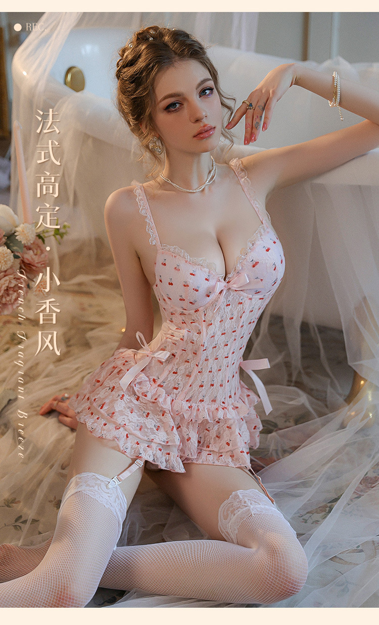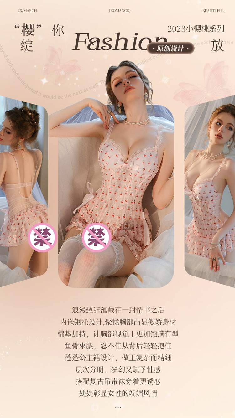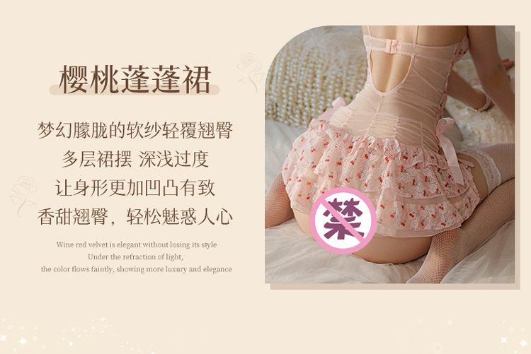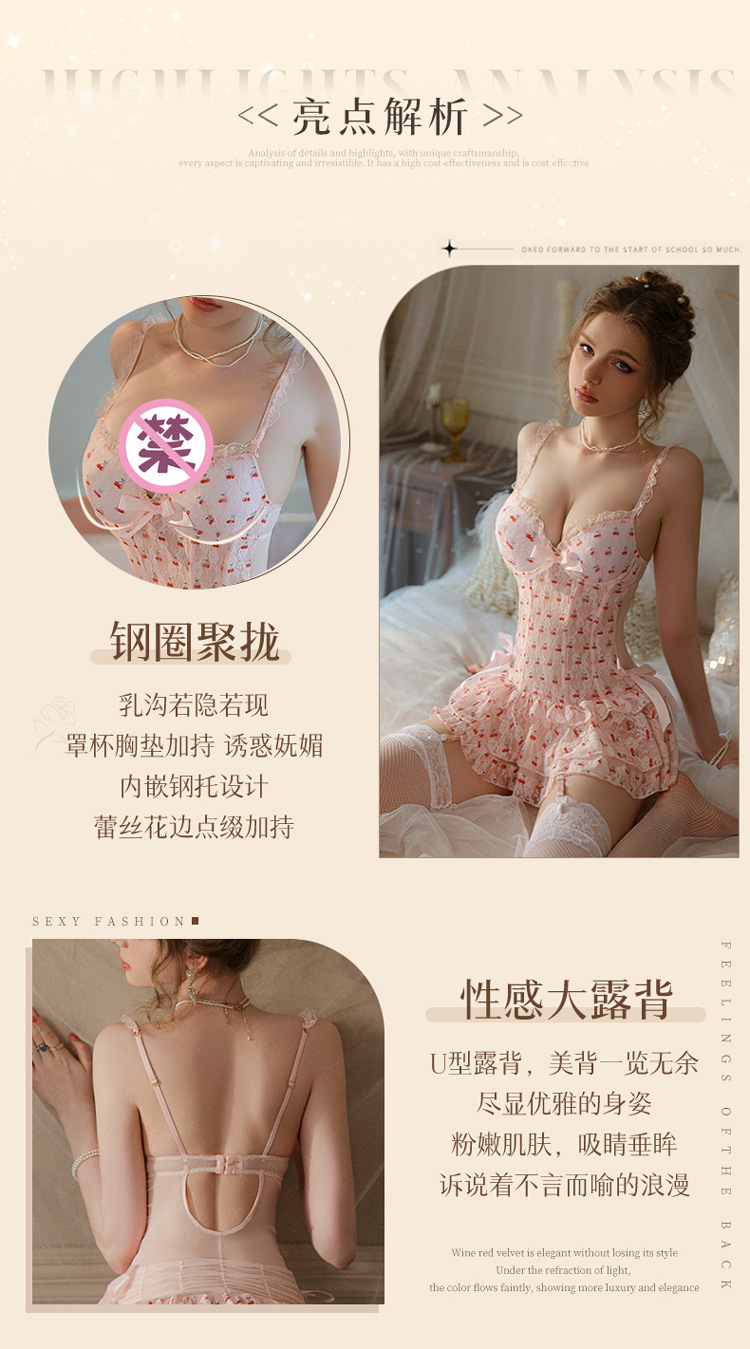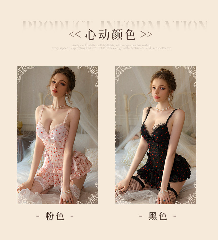 Jiumuadai 섹스 란제리 섹시한 잠옷 귀여운 체리 관점 열정 세트 슬림핏 케이크 슬립 스커트