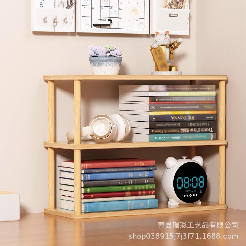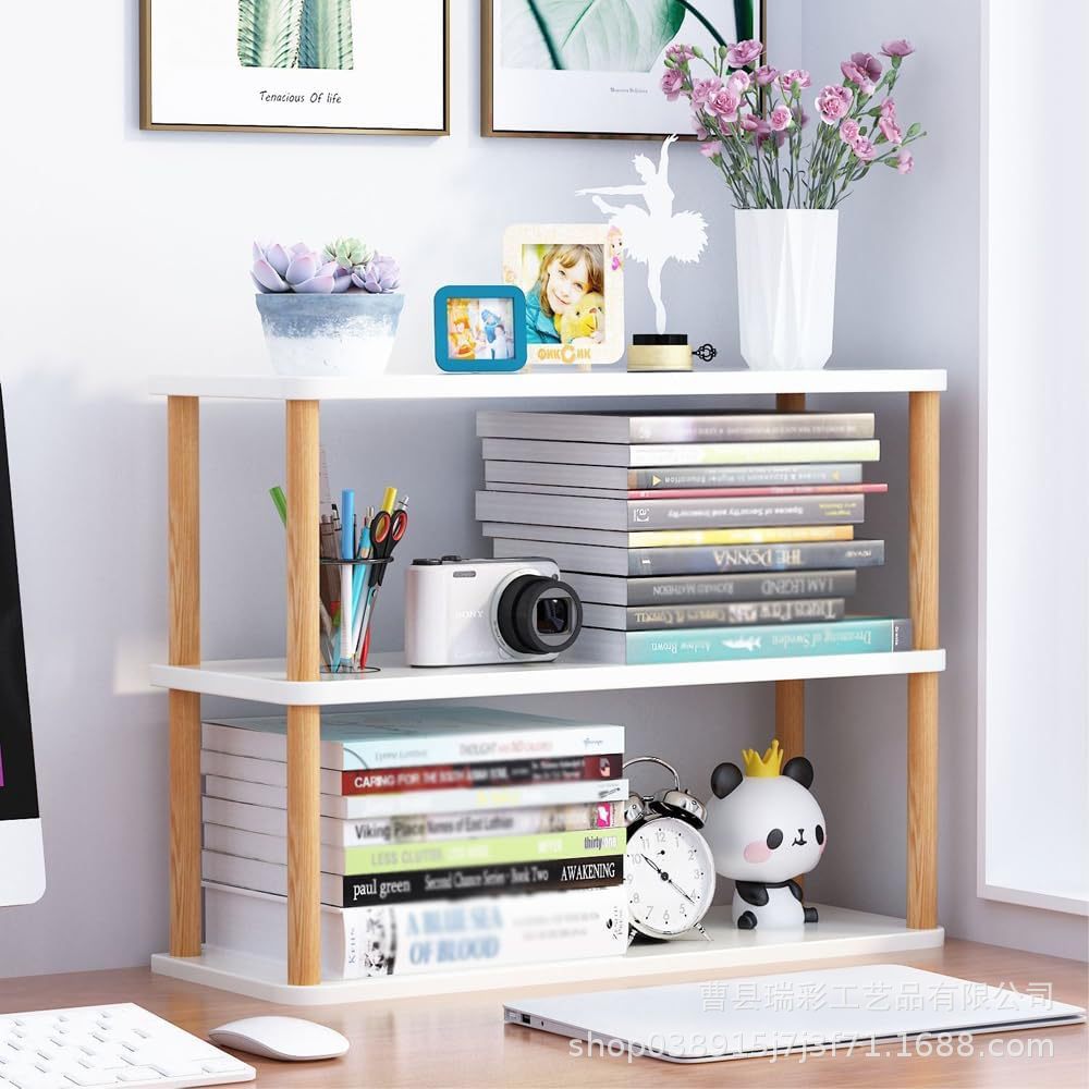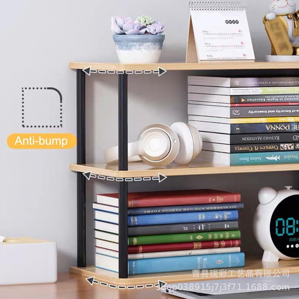책장 데스크탑 계층형 수납 선반 책상 어린이 수납 책상 다층 칸막이 단단한 나무 막대 작은 수납