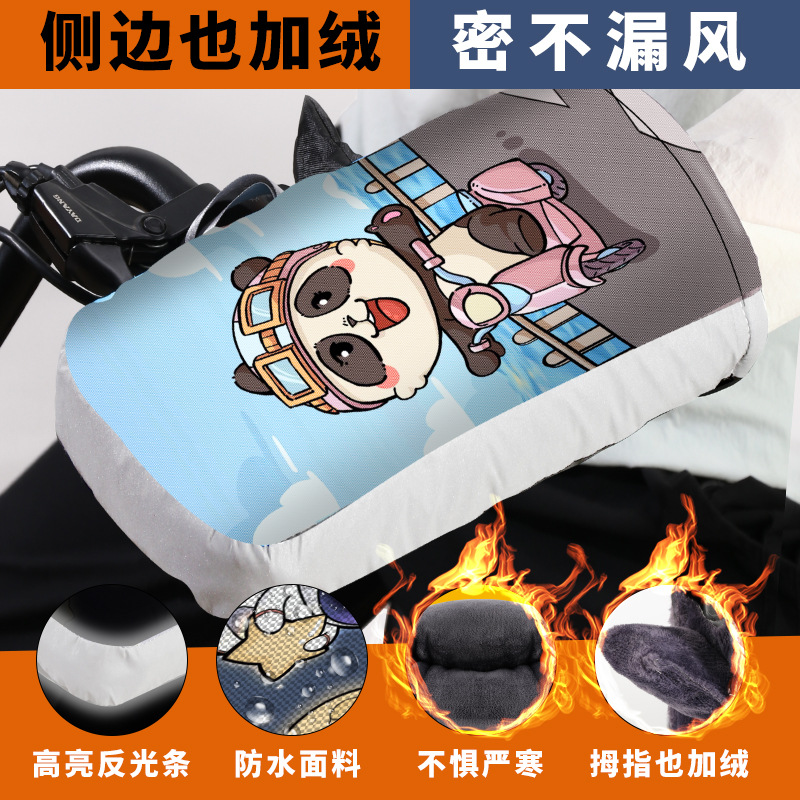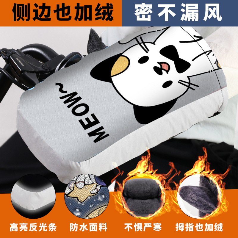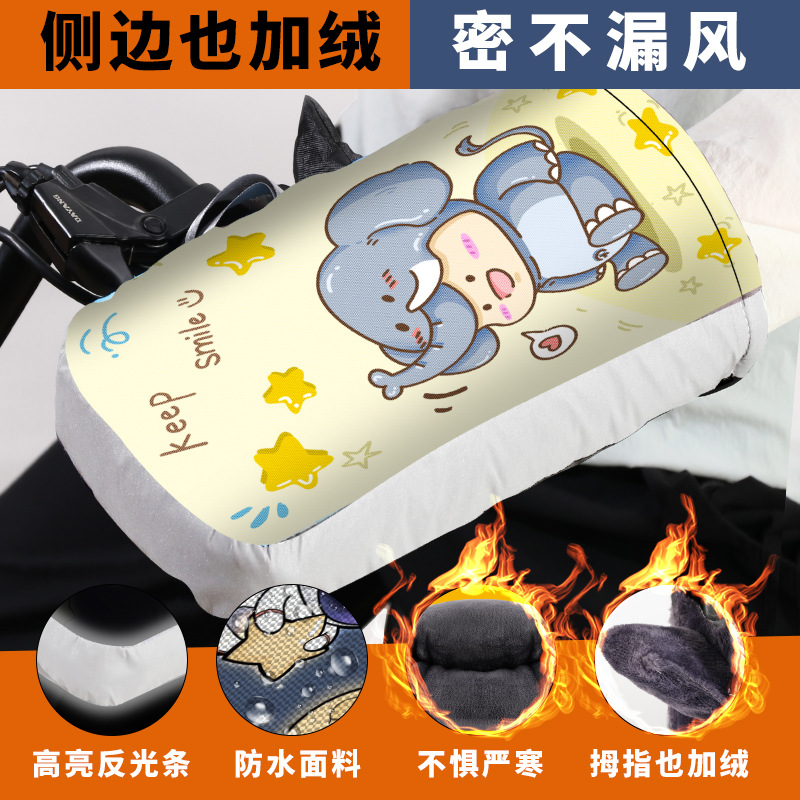 전기 자전거 핸들 바 커버 겨울 따뜻한 기모 두꺼운 배터리 오토바이 장갑 앞 유리 방수 방한 자전거