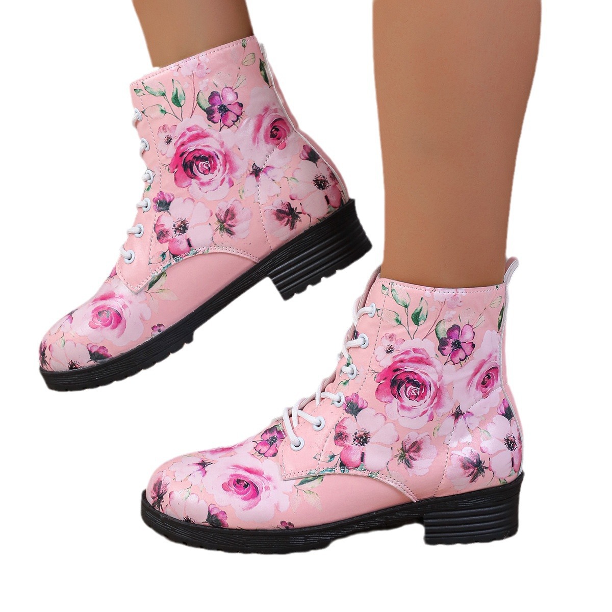 2023 유럽과 미국 로즈 프린트 하이 탑 부츠 여성의 플러스 사이즈 패션 부츠 마틴 가을과 겨울 새로운 패션 작업복 부츠