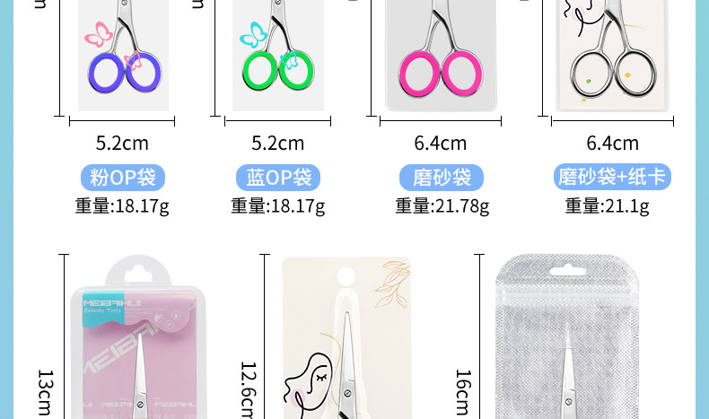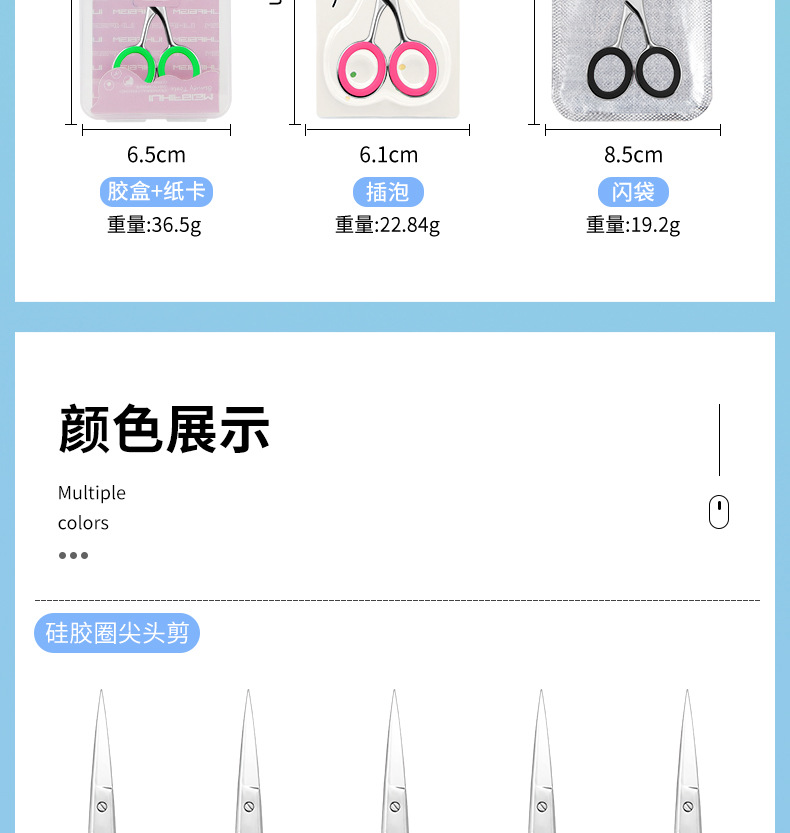 1# 뾰족한 가위 거울 빛 핑크 카드 플라스틱 상자