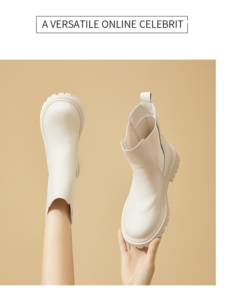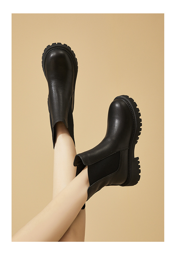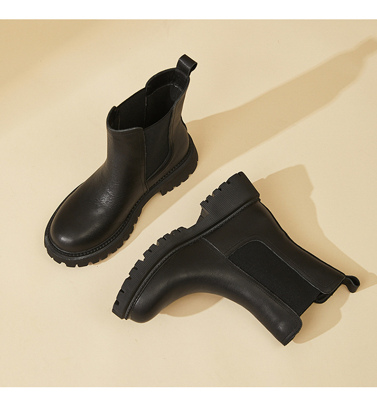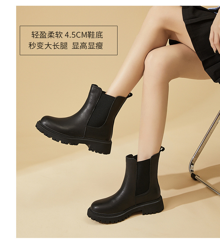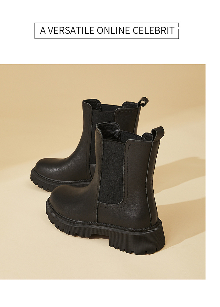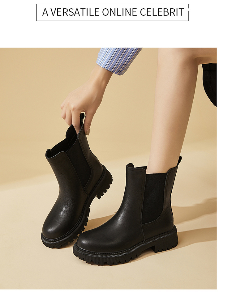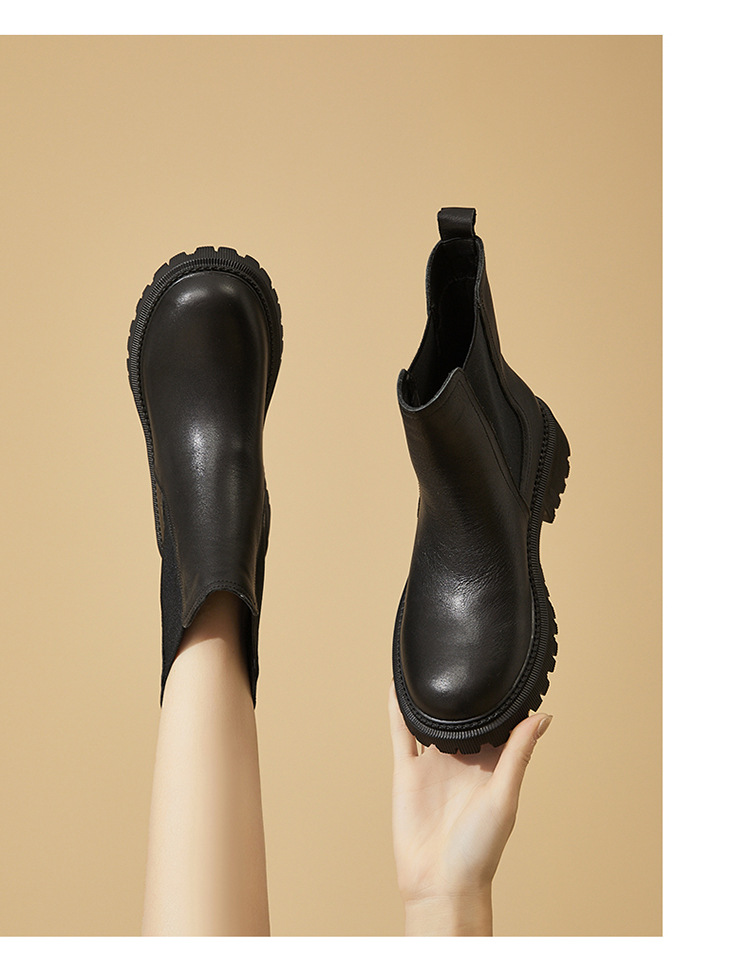 소가죽 마틴 부츠 여성용 2023 새로운 영국 스타일 슬림 룩 첼시 앵클 부츠 작은 두꺼운 바닥 중간 길이 연기 부츠