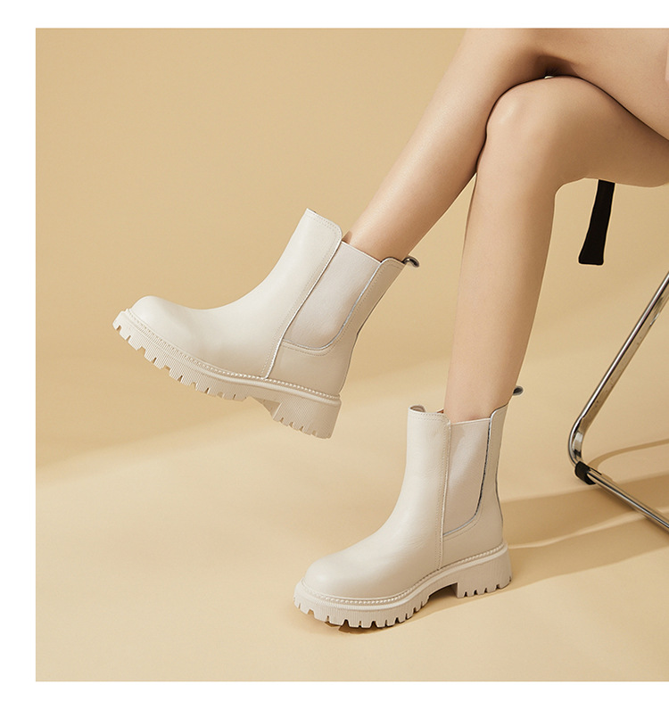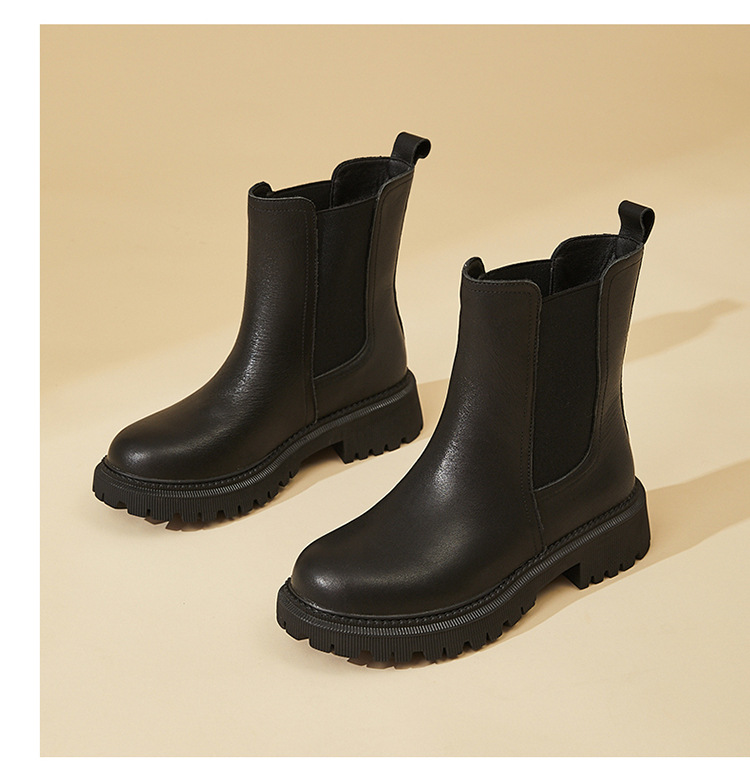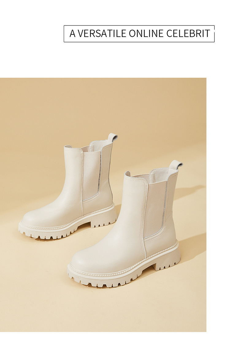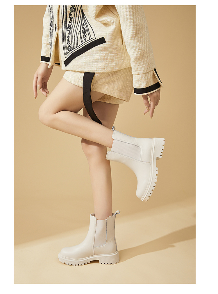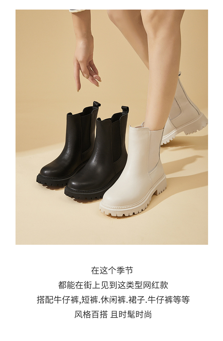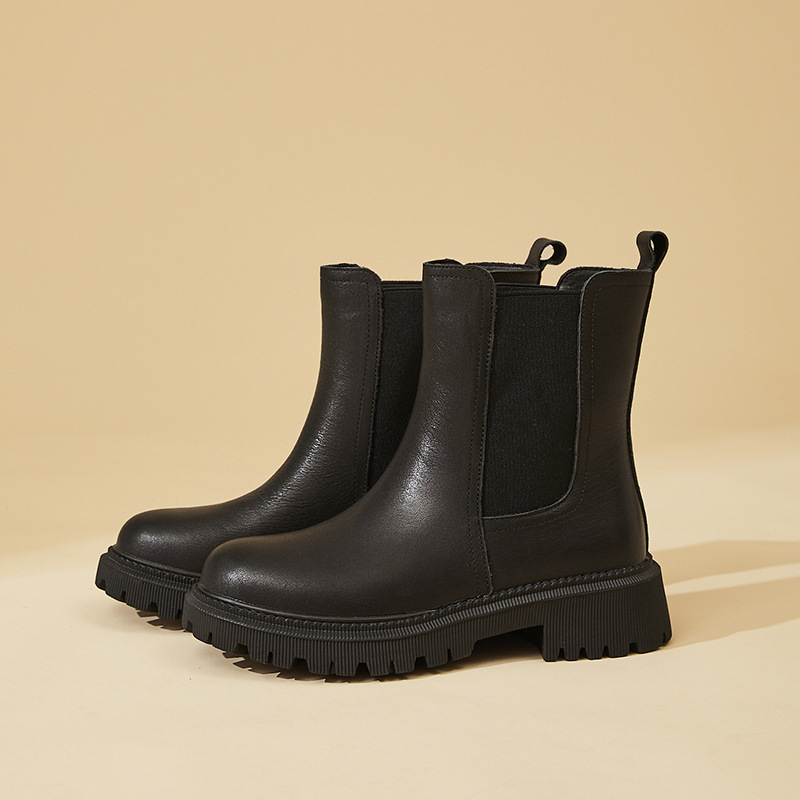 소가죽 마틴 부츠 여성용 2023 새로운 영국 스타일 슬림 룩 첼시 앵클 부츠 작은 두꺼운 바닥 중간 길이 연기 부츠