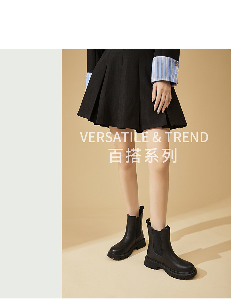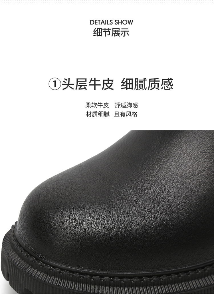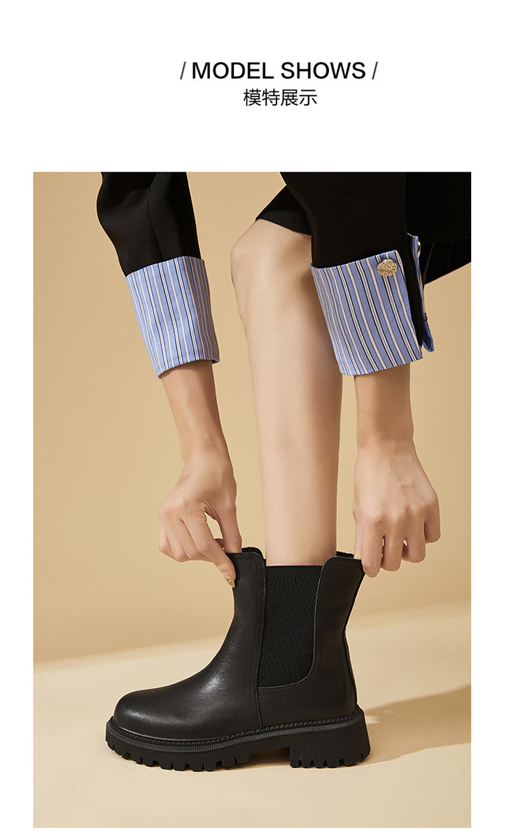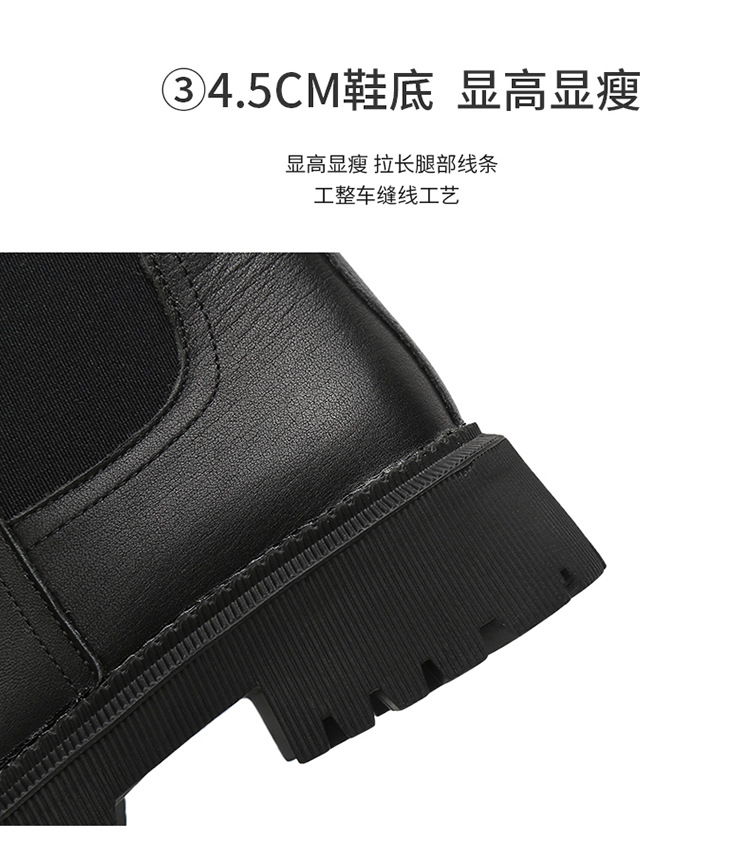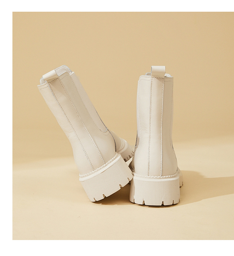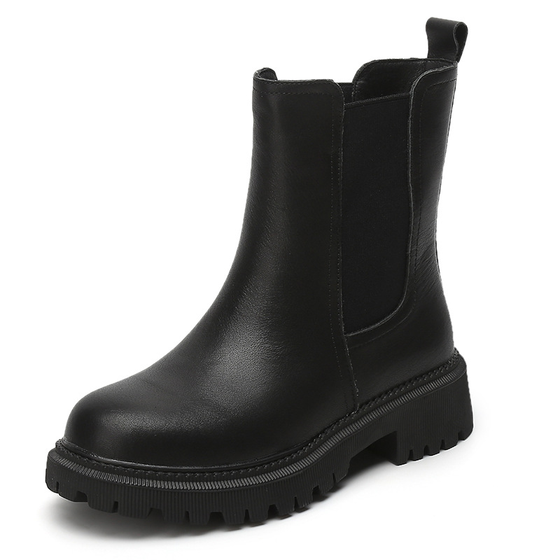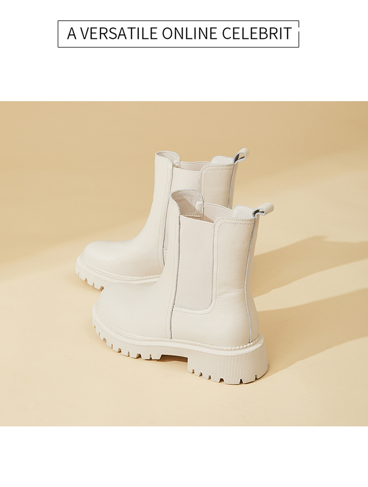 소가죽 마틴 부츠 여성용 2023 새로운 영국 스타일 슬림 룩 첼시 앵클 부츠 작은 두꺼운 바닥 중간 길이 연기 부츠