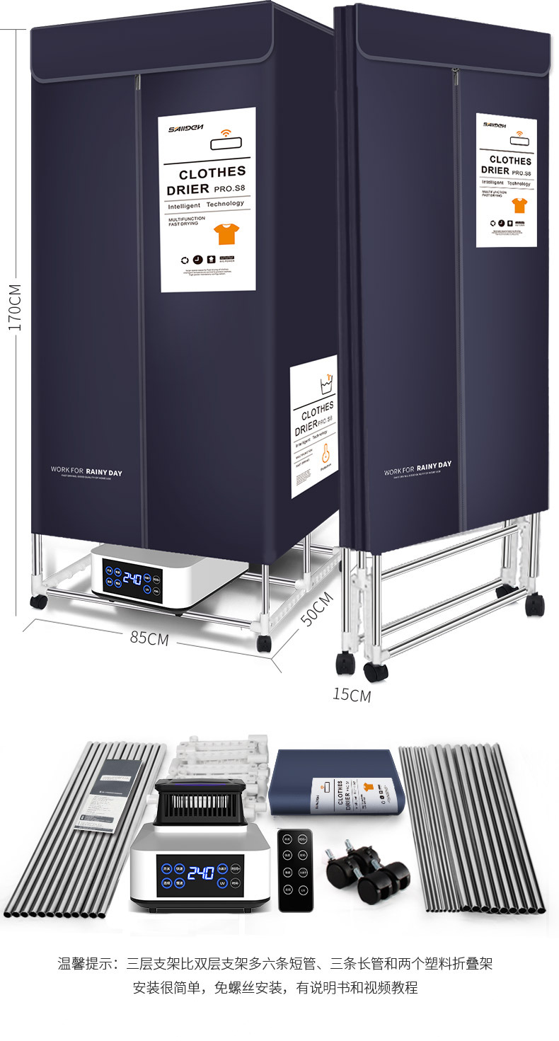 접이식 의류 건조기 가정용 의류 관리 건조기 소형 옷장 건조기 대용량 의류 건조기