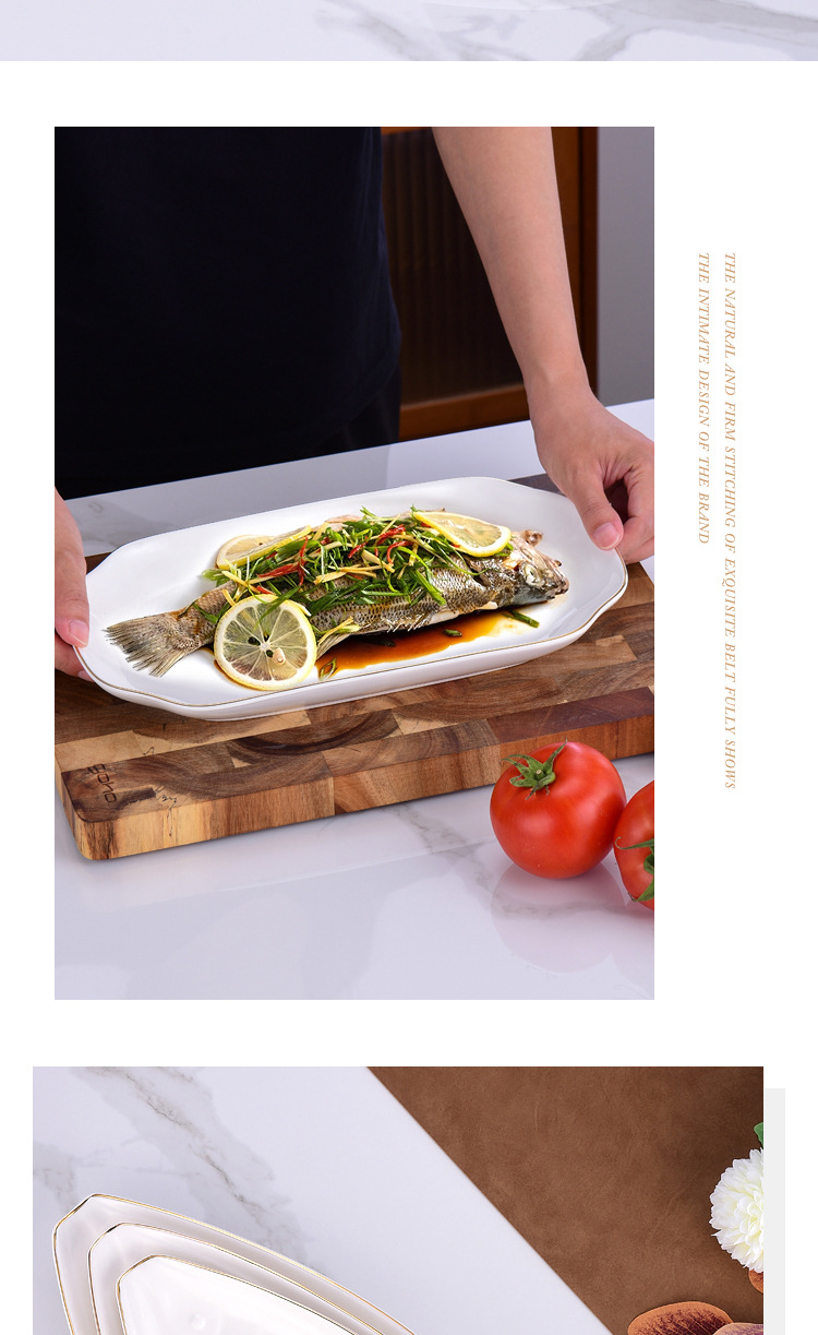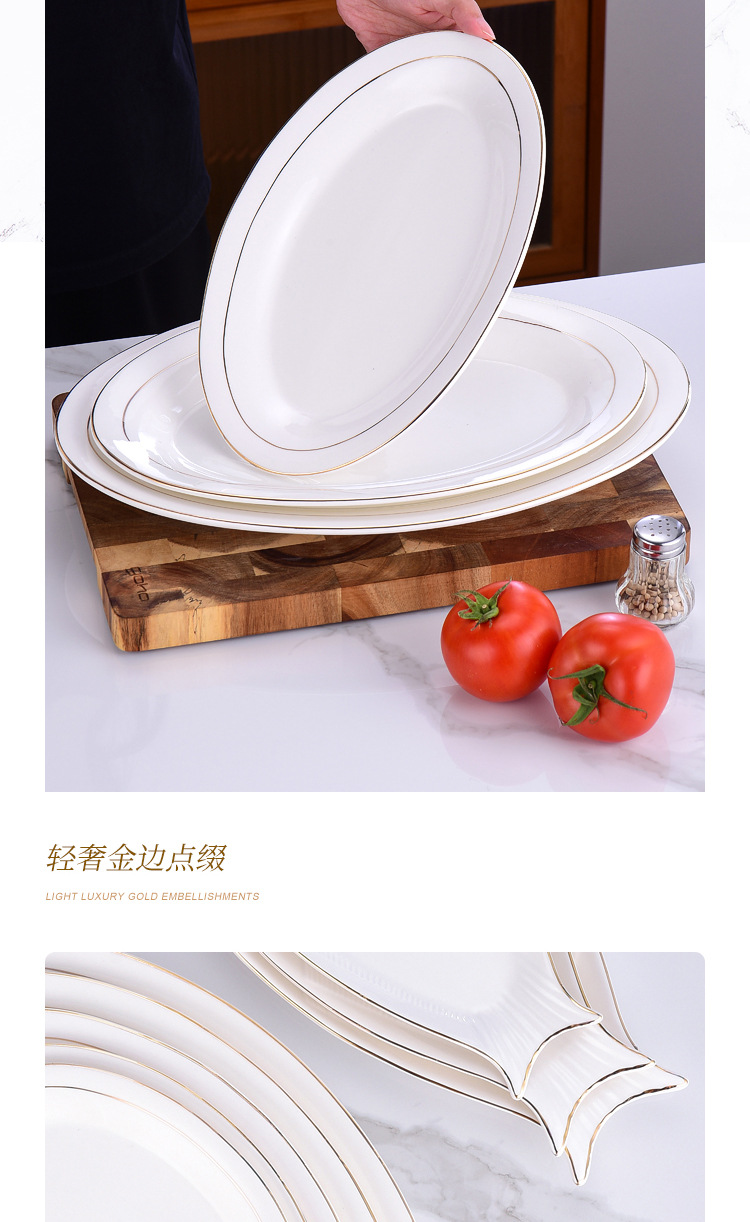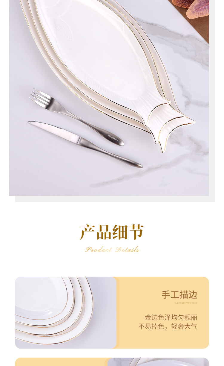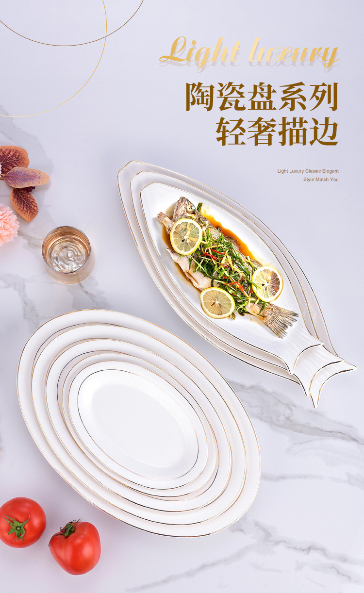 프놈펜 생선 접시 세라믹 타원형 접시 대형 찐 생선 접시 크리 에이 티브 라이트 럭셔리 생선 접시 접시 호텔 식기 도매