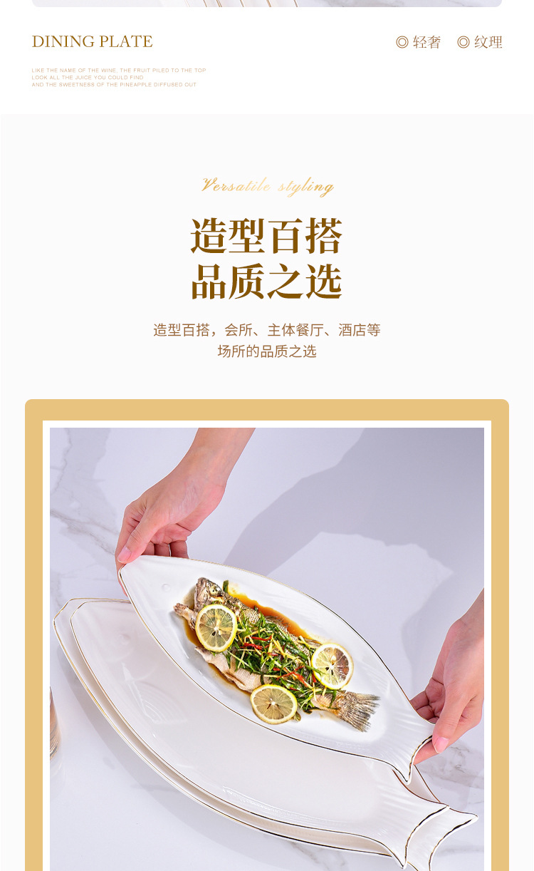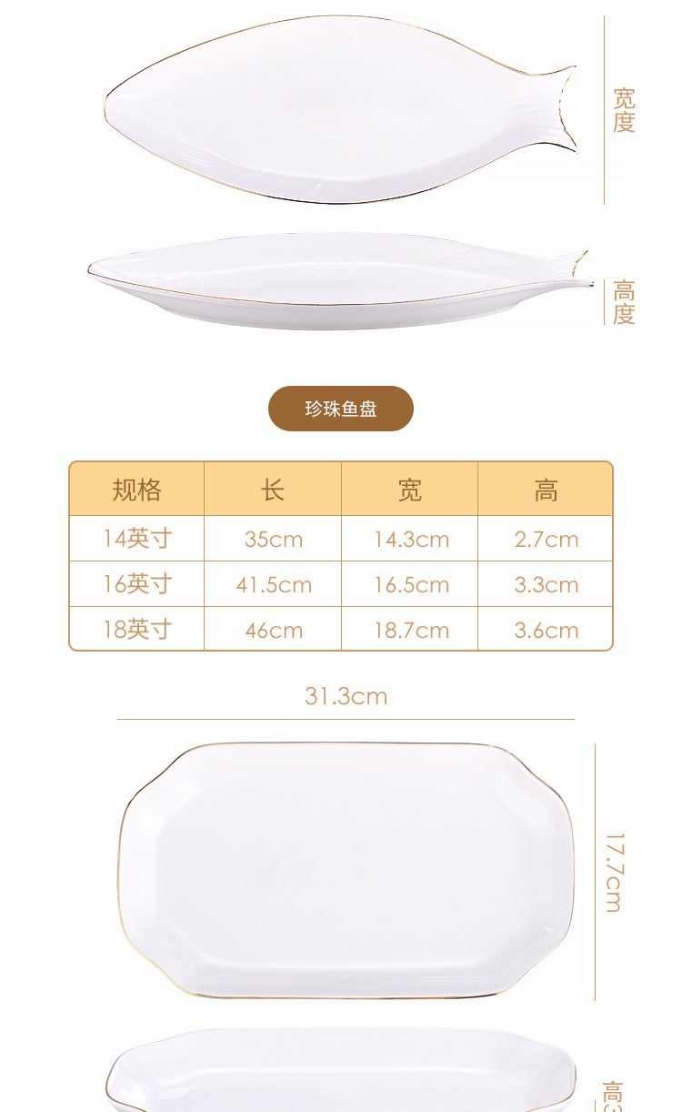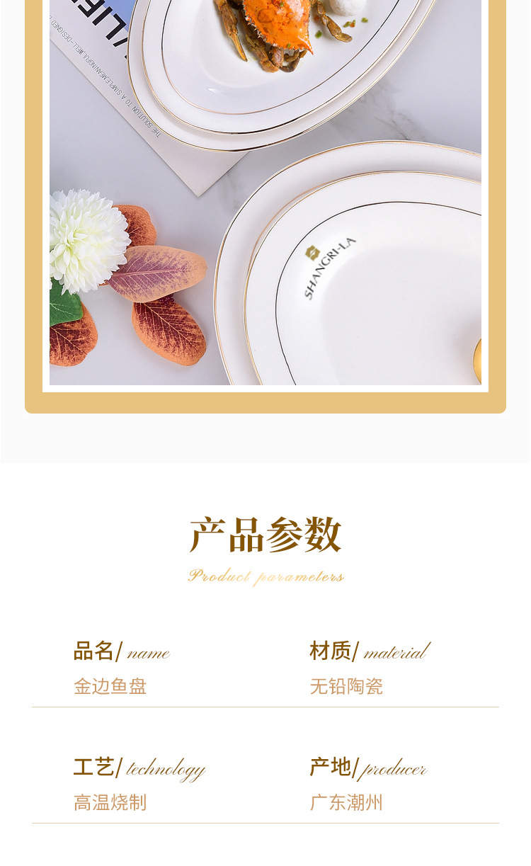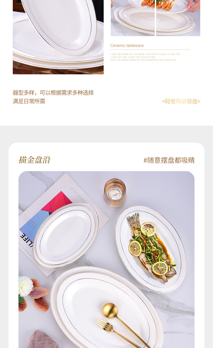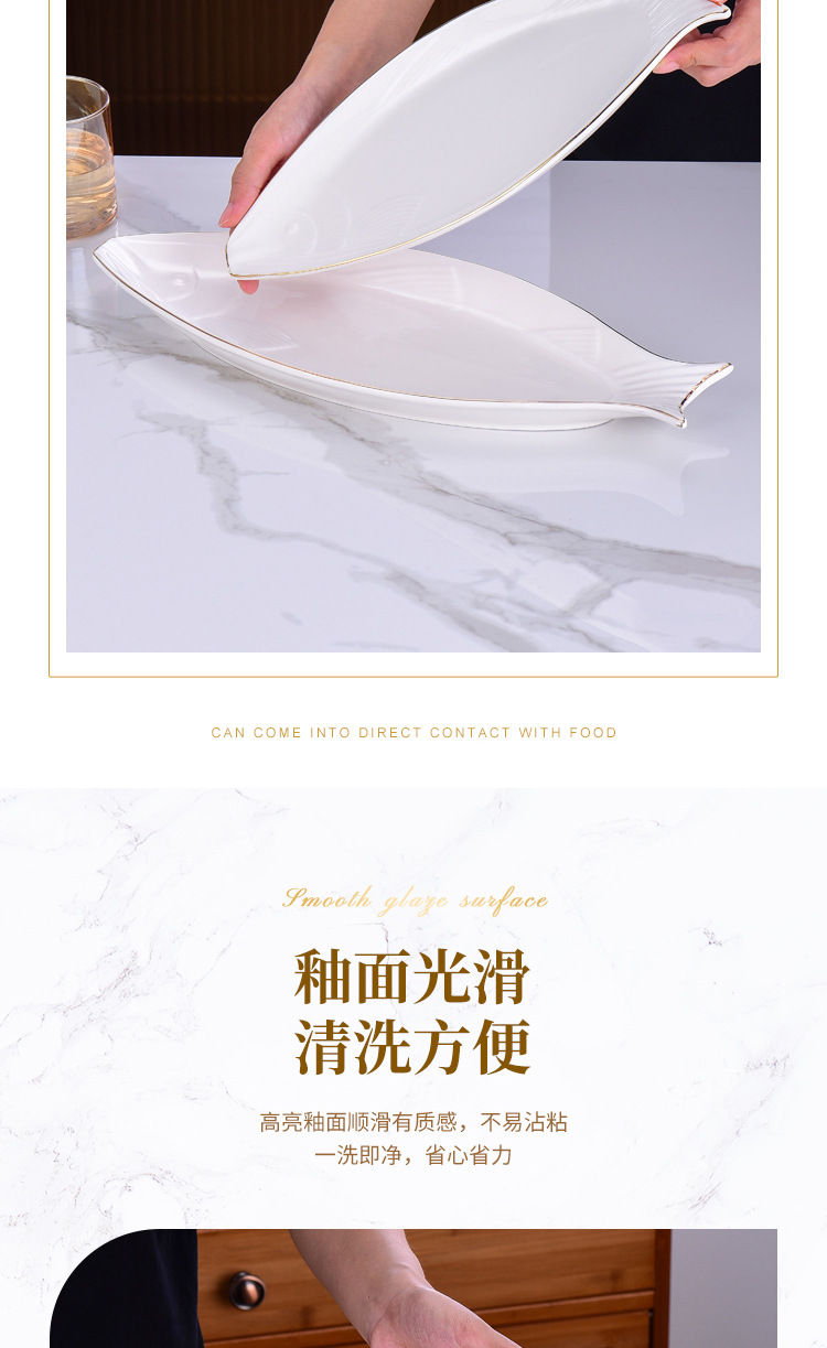 프놈펜 생선 접시 세라믹 타원형 접시 대형 찐 생선 접시 크리 에이 티브 라이트 럭셔리 생선 접시 접시 호텔 식기 도매