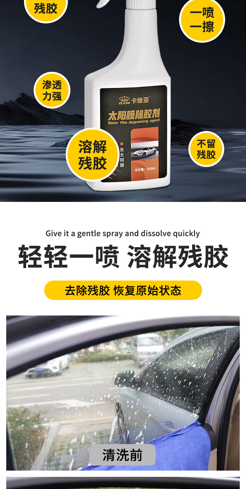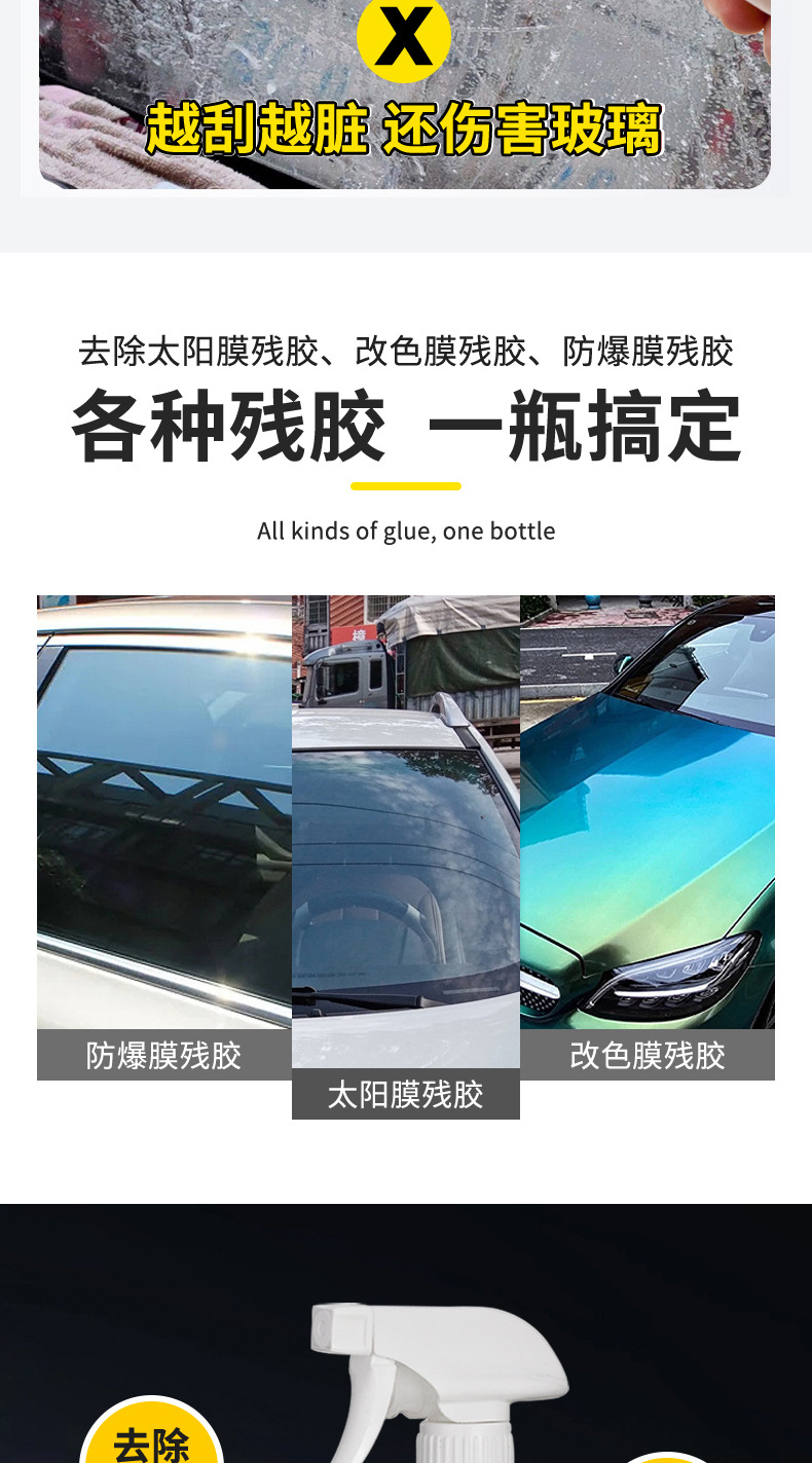 태양광 필름 접착제 제거제, 자동차 접착제, 유리, 페인트, 금속 500ml, 비건성 접착제 클리너