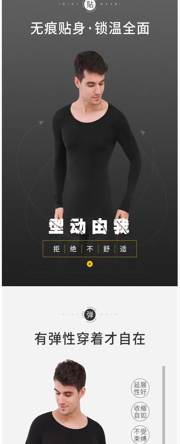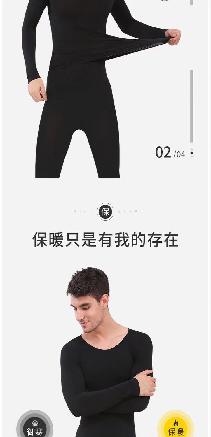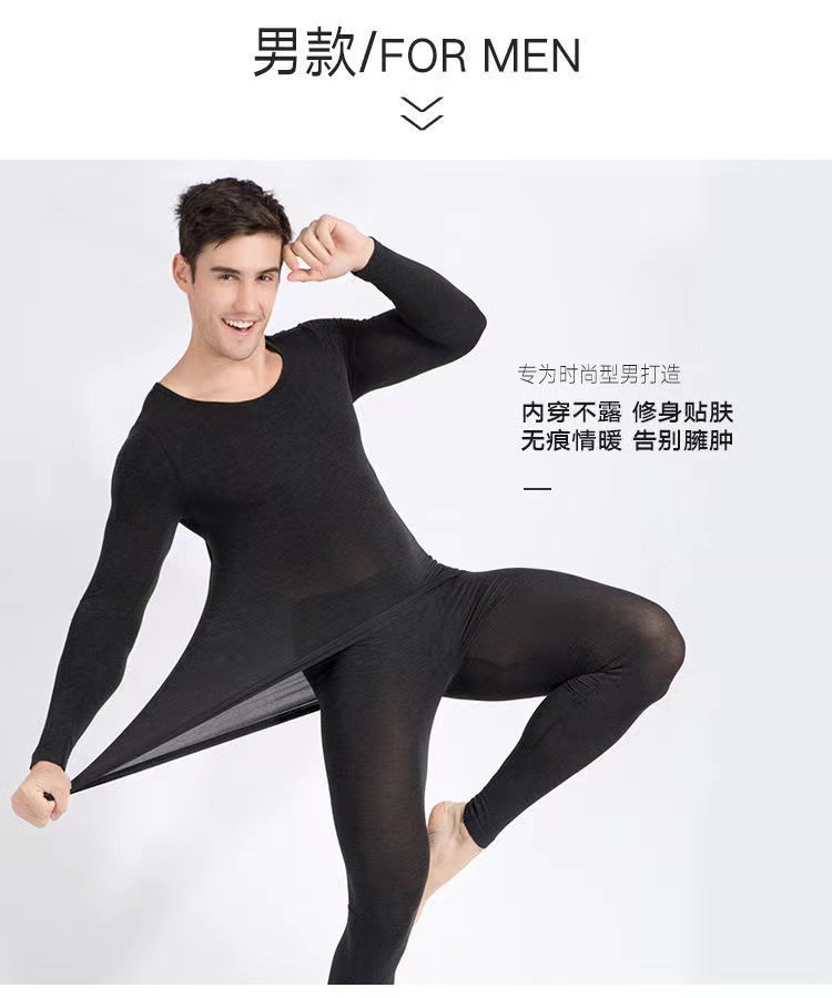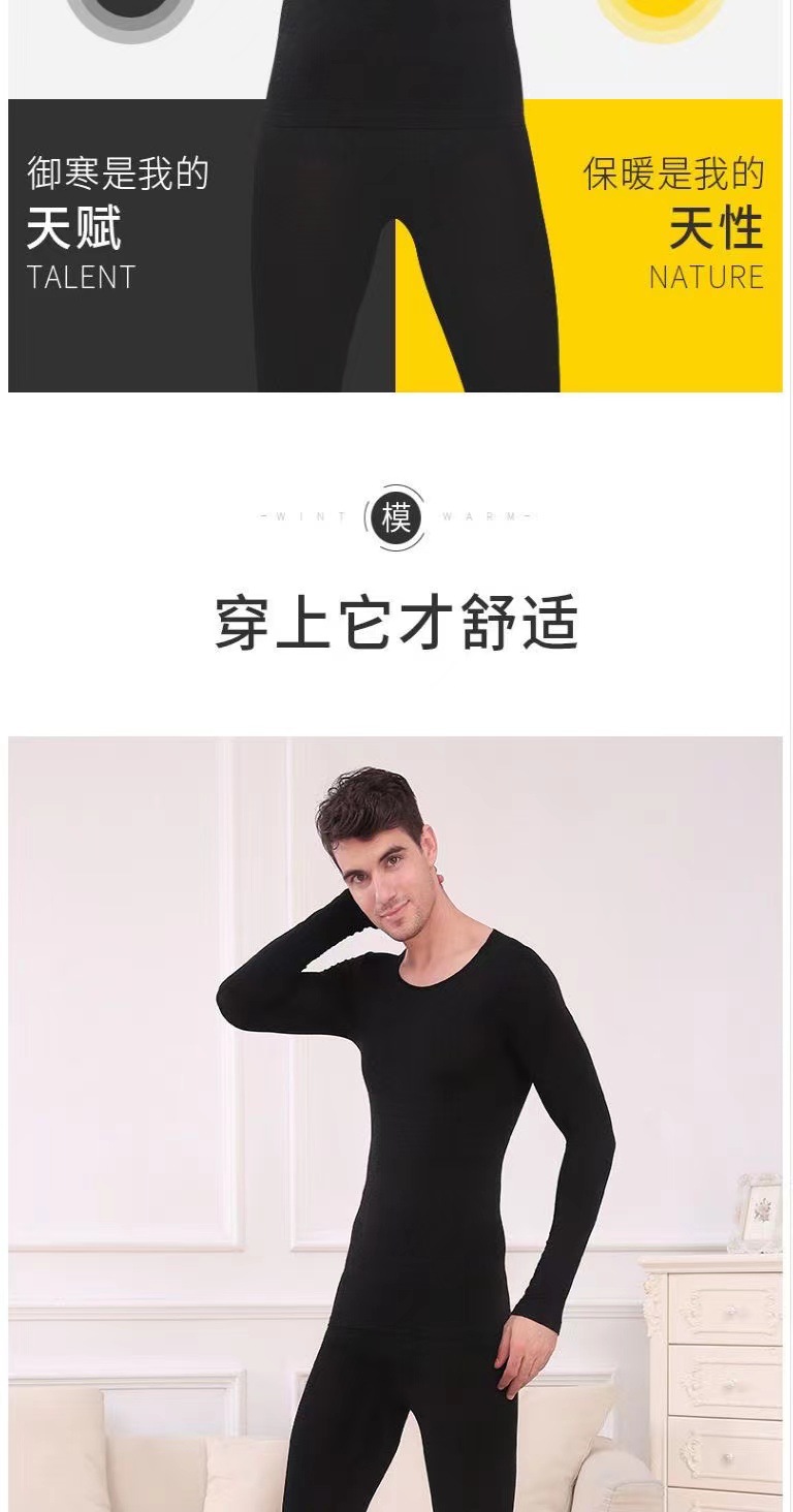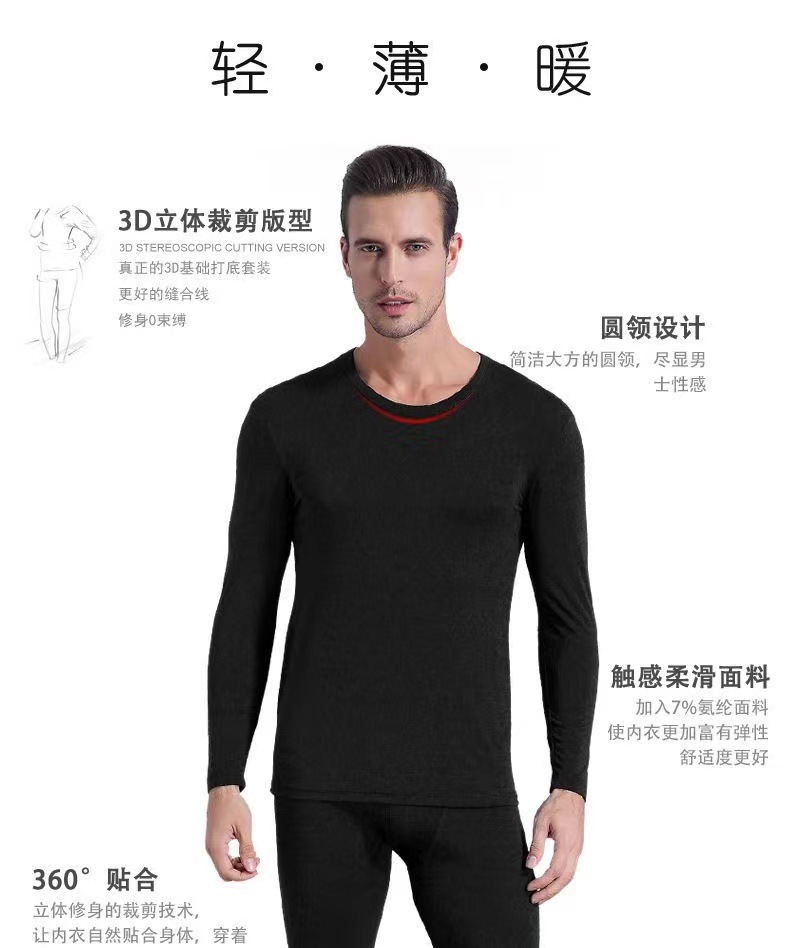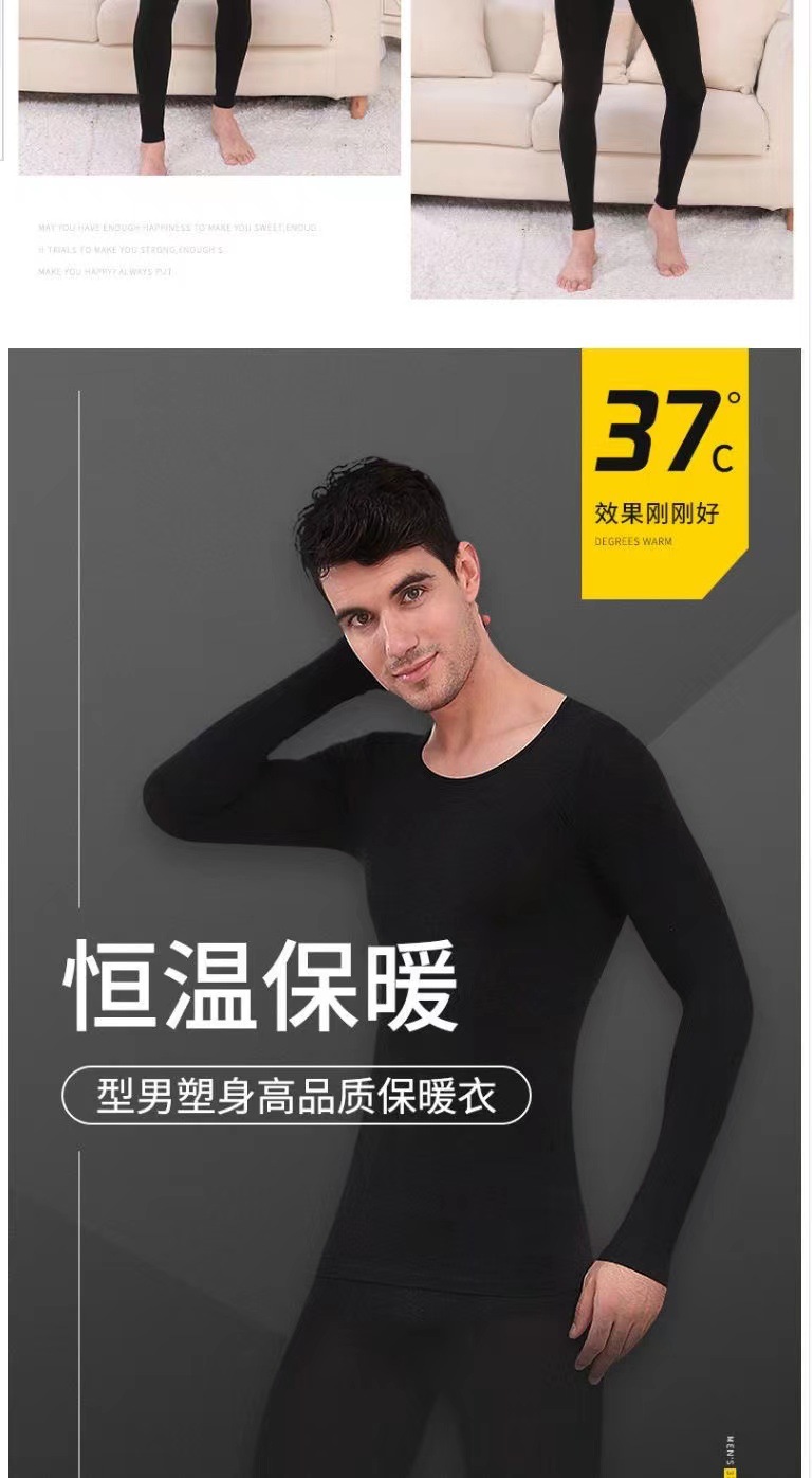 후이마이 유핀 37도 보온 내의 남성용 가을옷 세트 단색 다용도 고탄력 무봉제 방한 보온