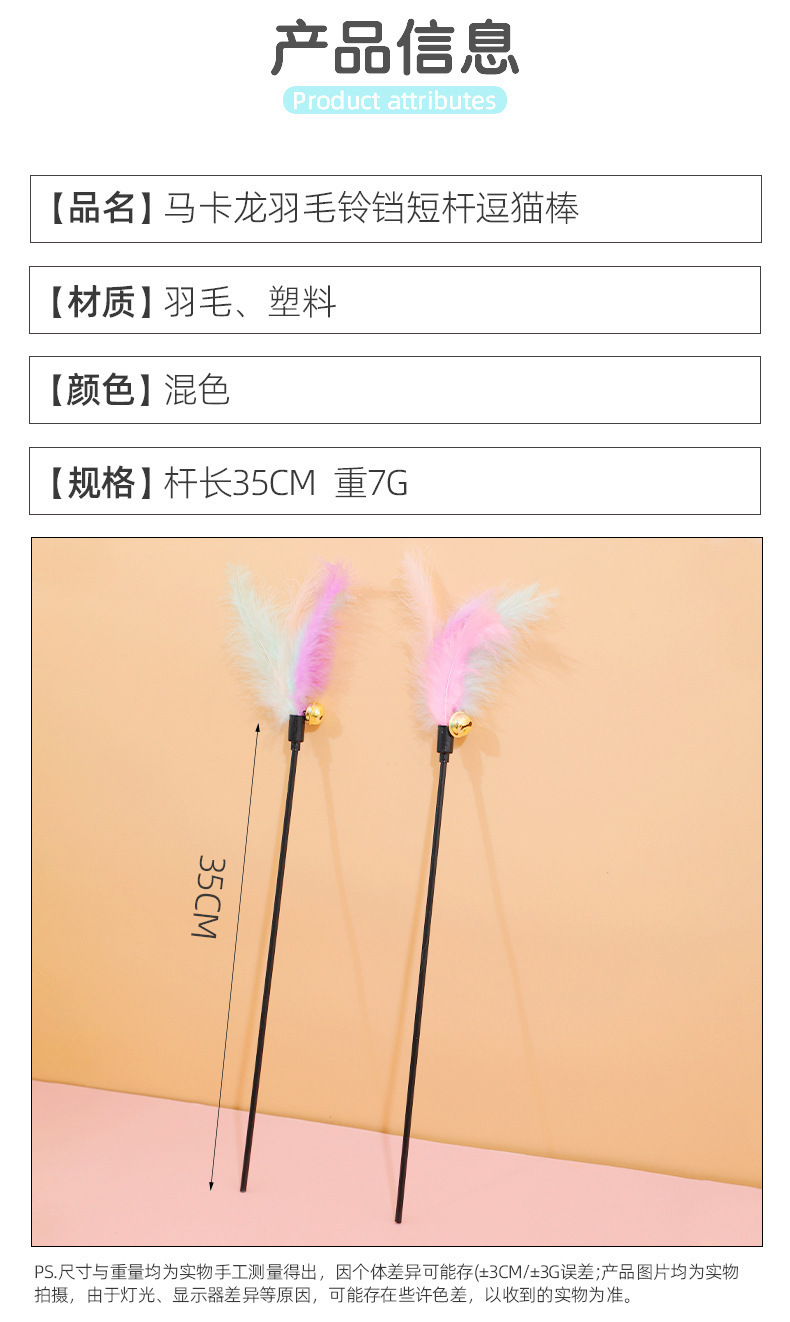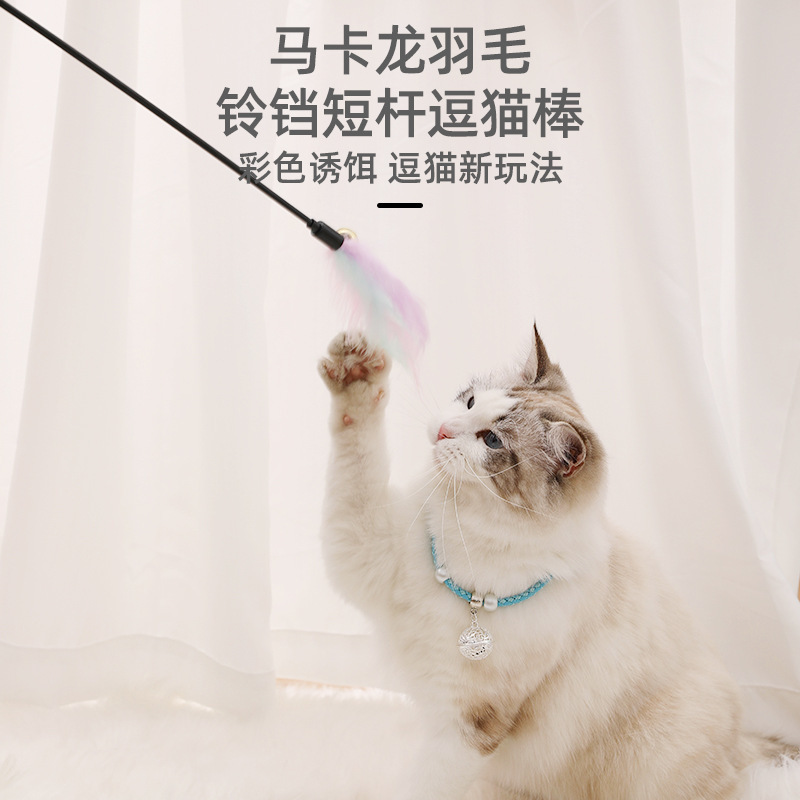마카롱 컬러 깃털 벨 고양이 장난감 고양이 장난감 고양이와 새끼 고양이를 위한 자체 즐거움 도구 도매
