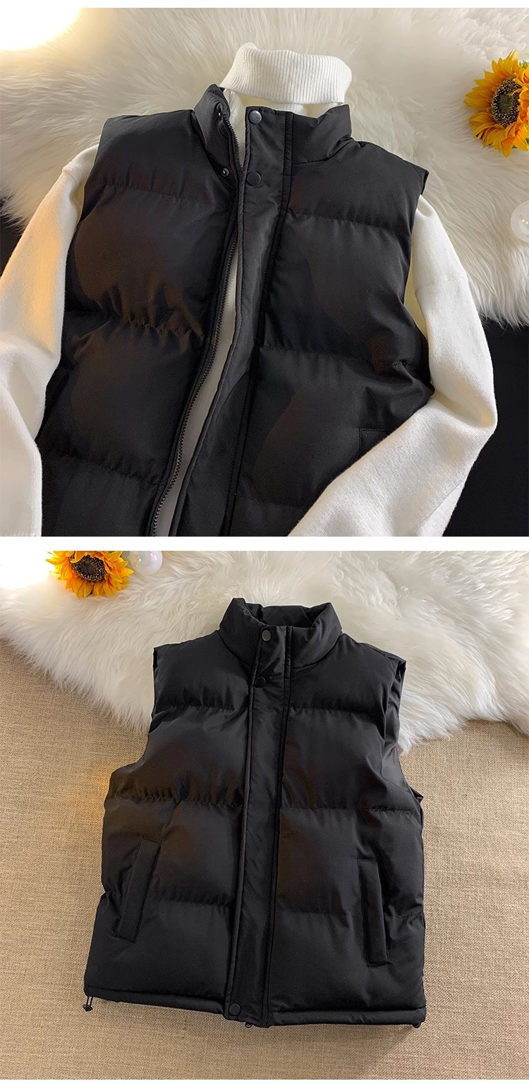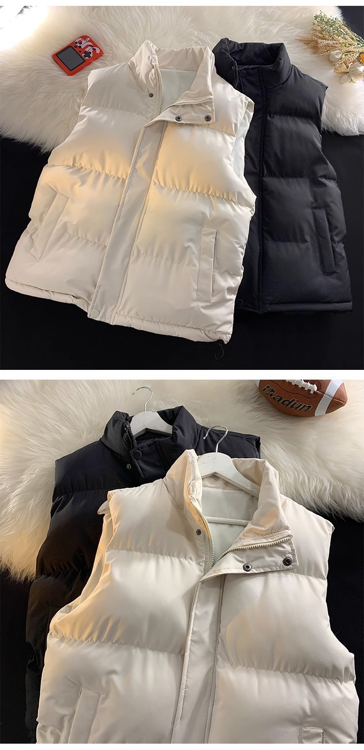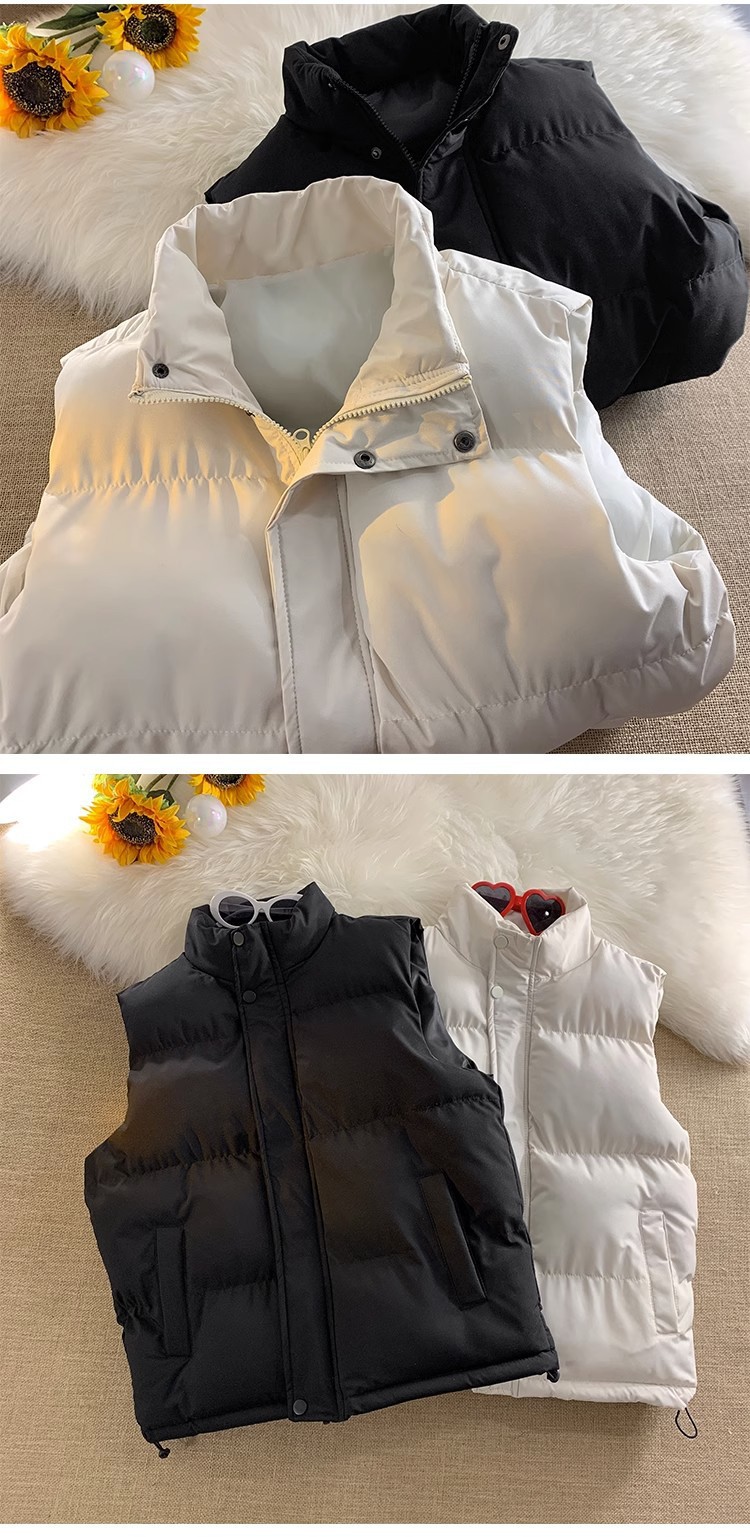 가을과 겨울 한국식 양복 조끼 남녀 트렌디 스탠드 칼라 면 패딩 재킷 슬림핏 두꺼운 양복 조끼 따뜻한 양복 조끼 재킷