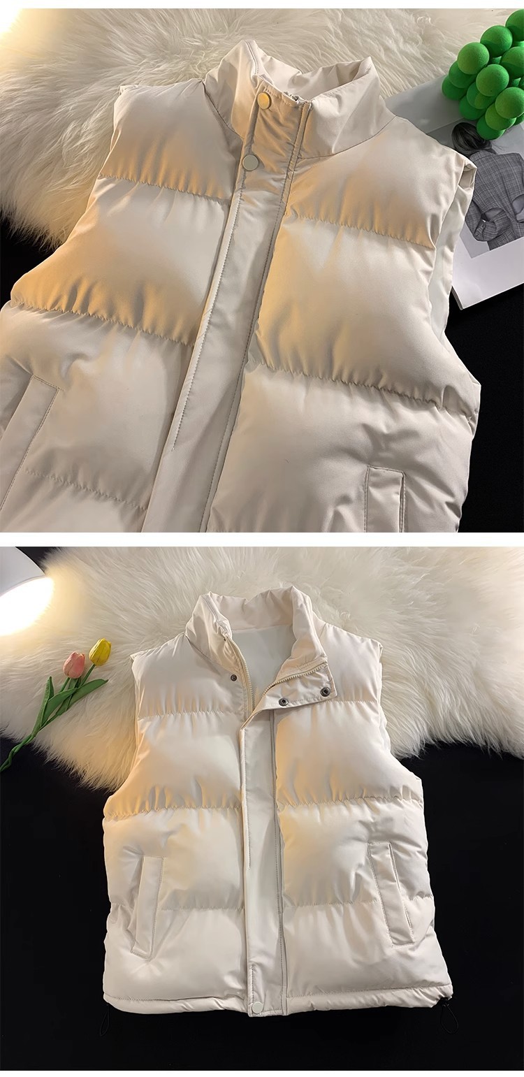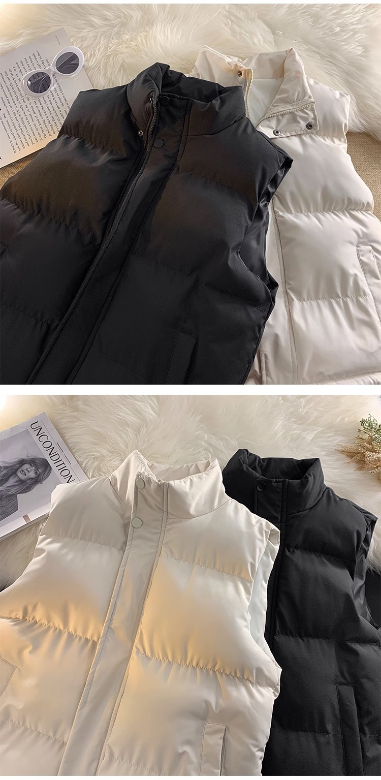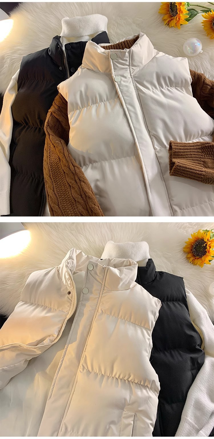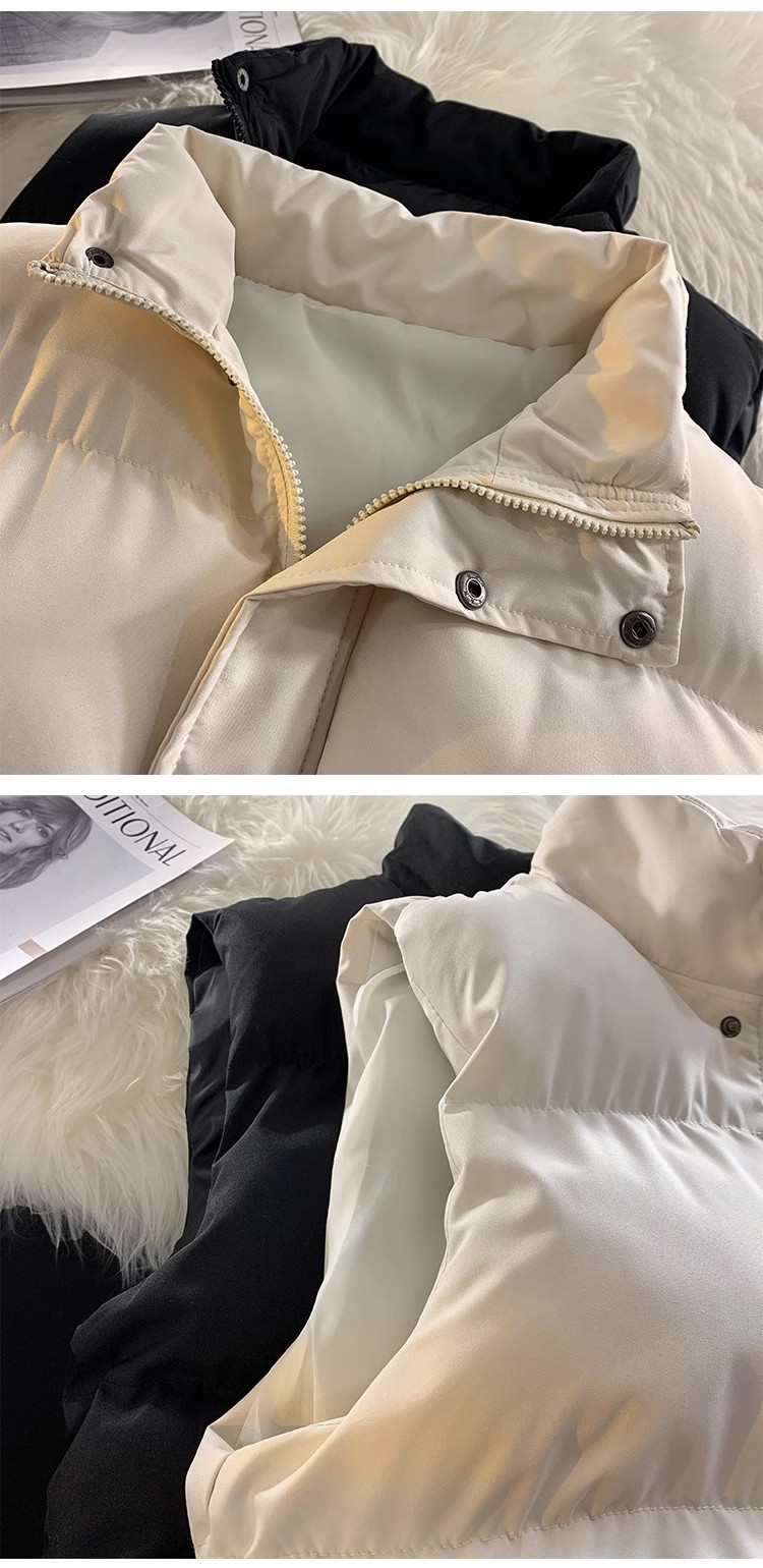 가을과 겨울 한국식 양복 조끼 남녀 트렌디 스탠드 칼라 면 패딩 재킷 슬림핏 두꺼운 양복 조끼 따뜻한 양복 조끼 재킷