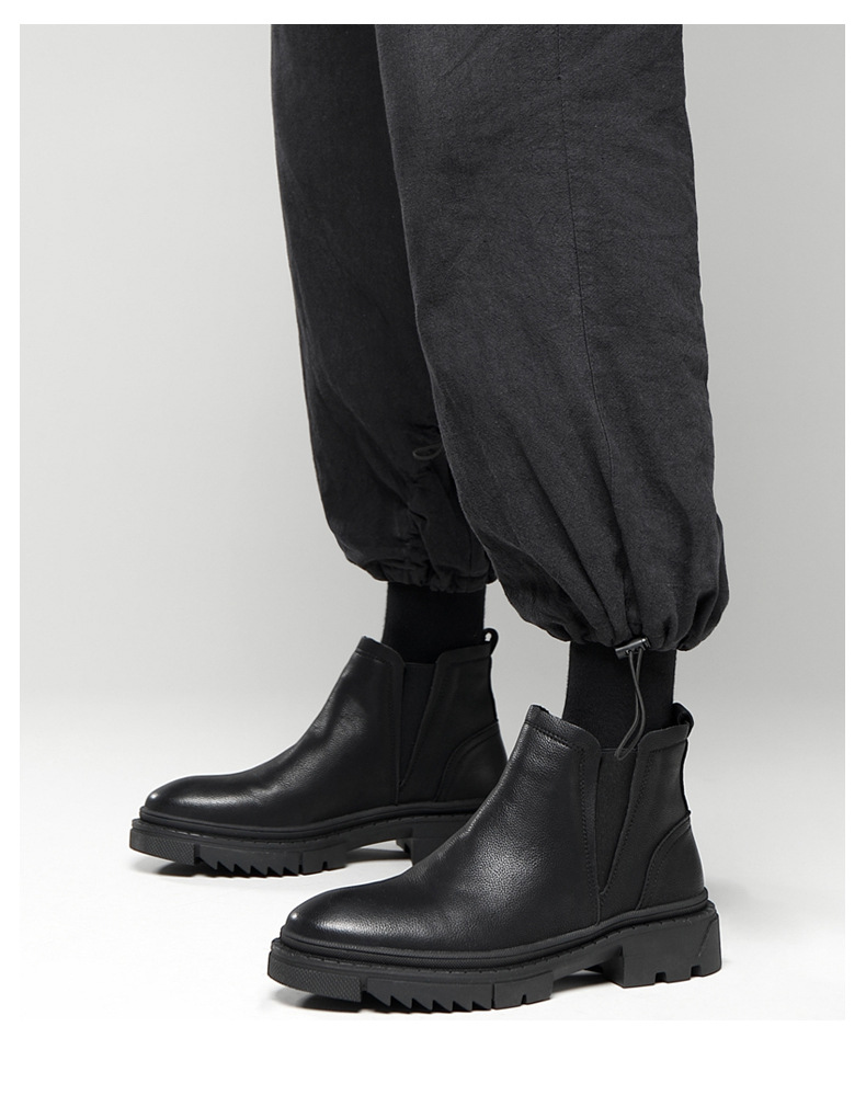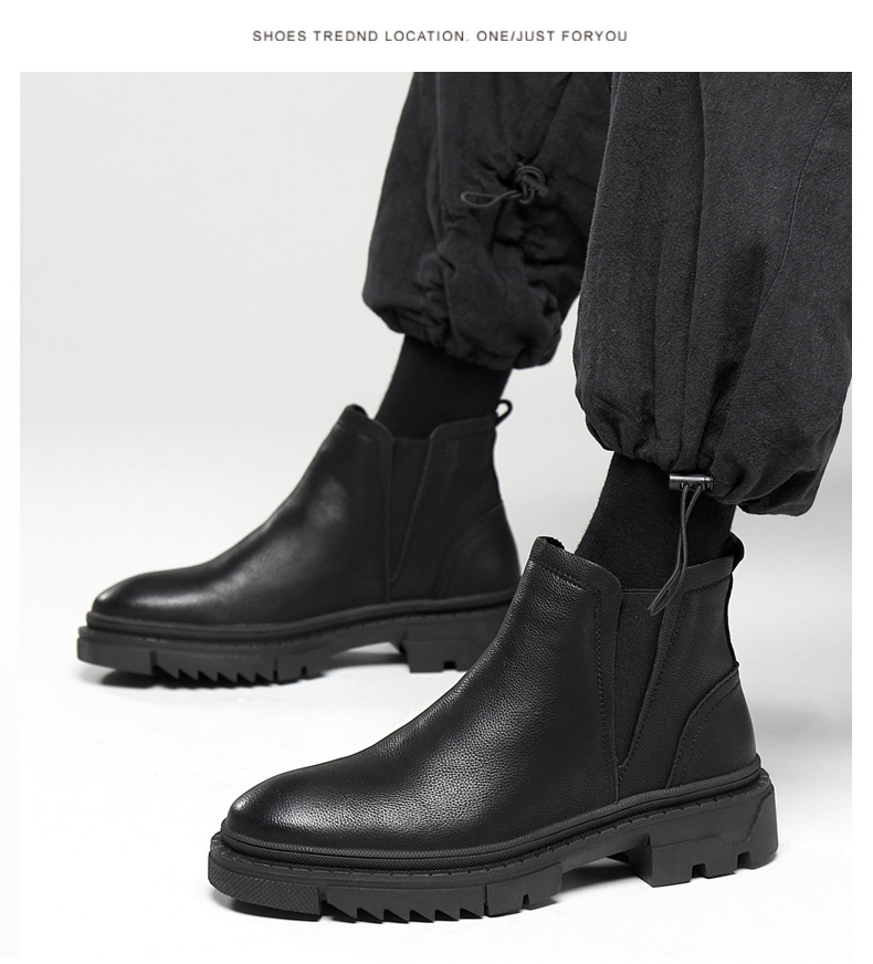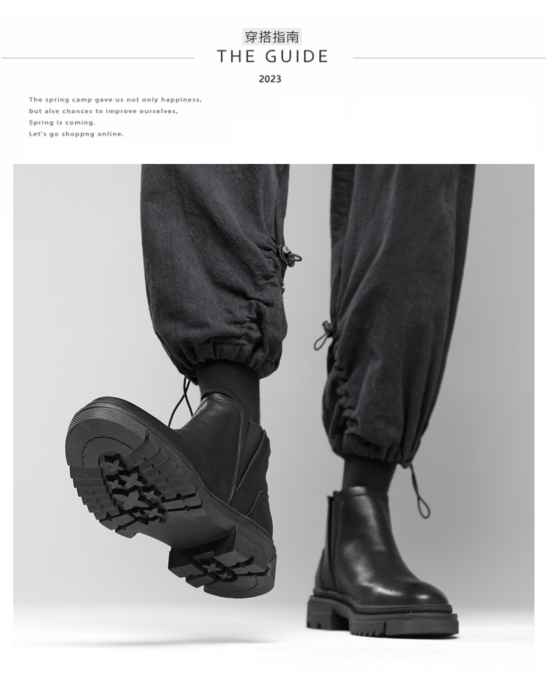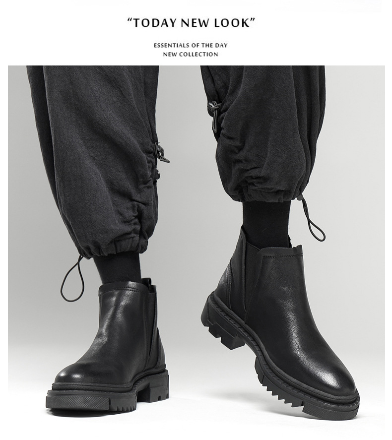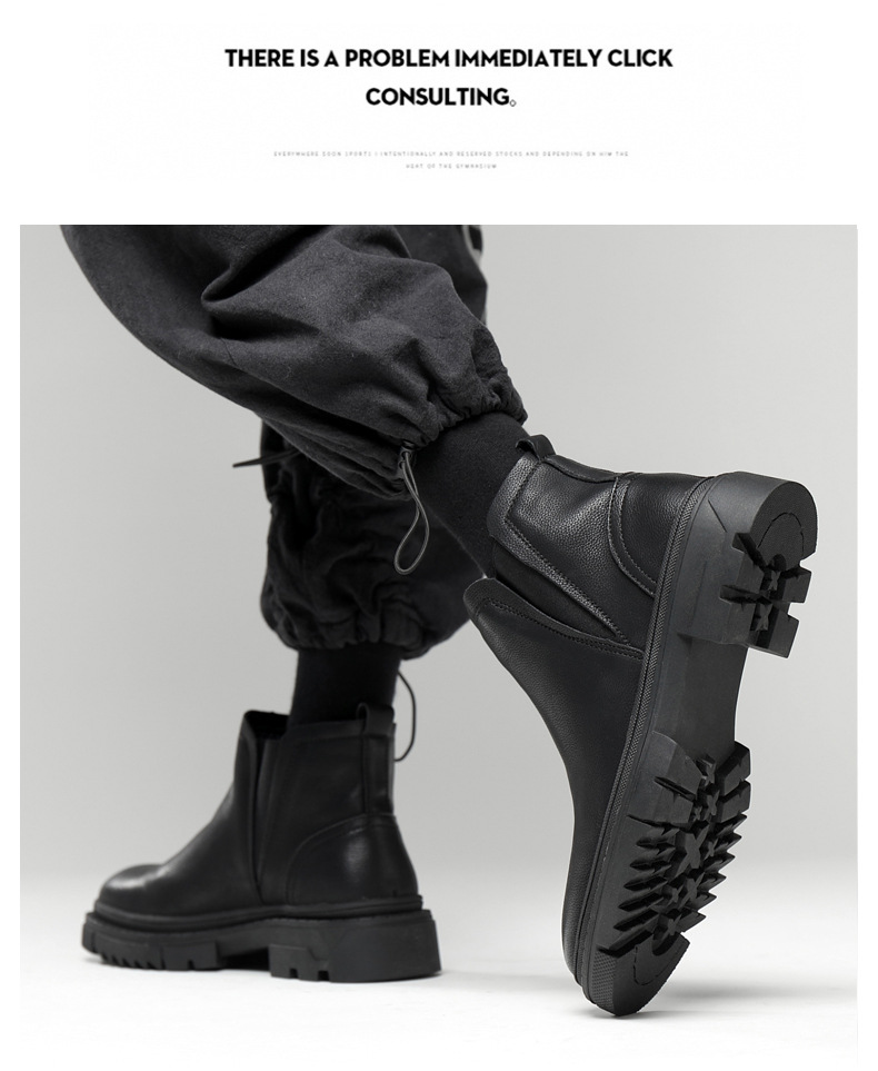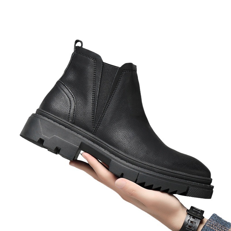 마틴 부츠 남자의 봄과 가을 증가 두꺼운 밑창 첼시 부츠 로우 탑 슬립 온 남성 신발 블랙 캐주얼 가죽 부츠 S52-H