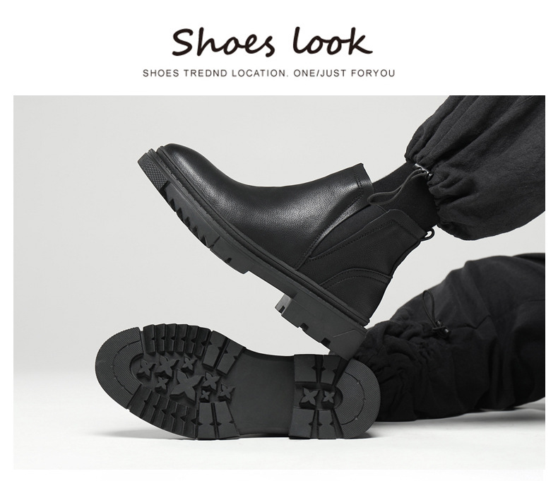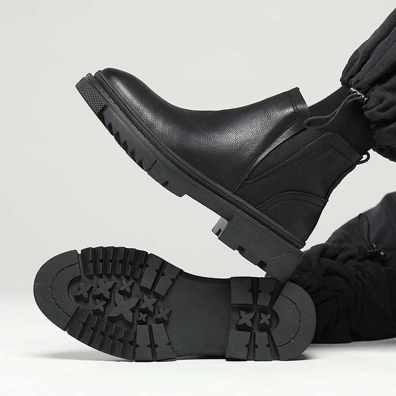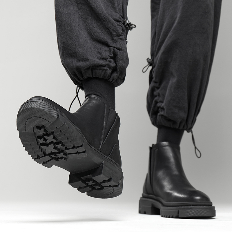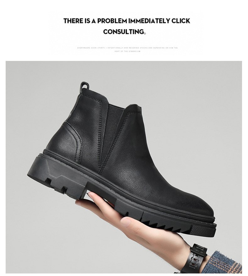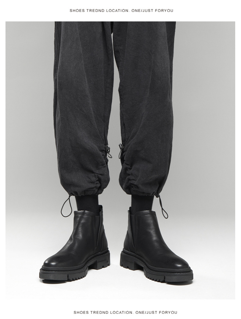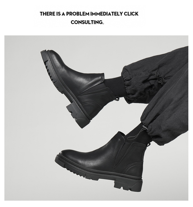 마틴 부츠 남자의 봄과 가을 증가 두꺼운 밑창 첼시 부츠 로우 탑 슬립 온 남성 신발 블랙 캐주얼 가죽 부츠 S52-H