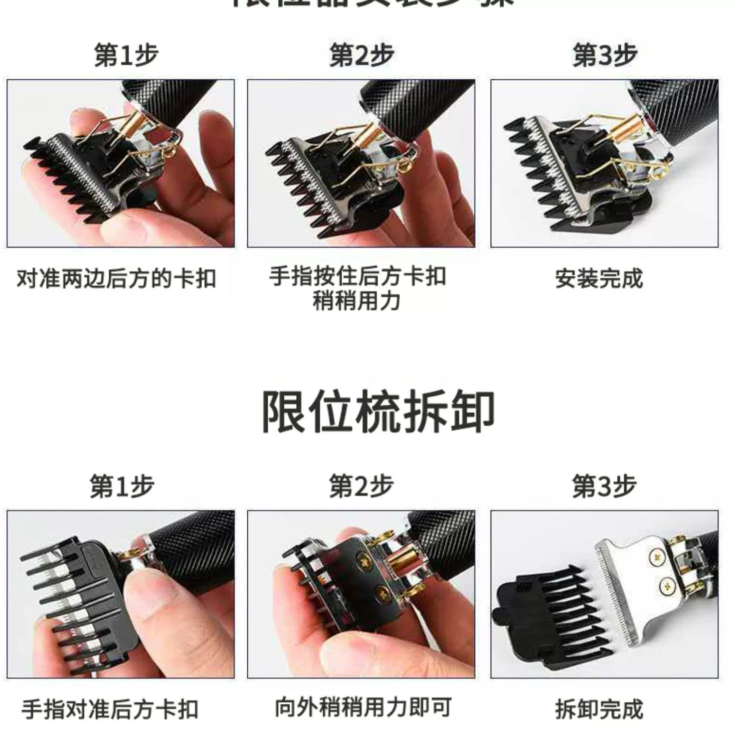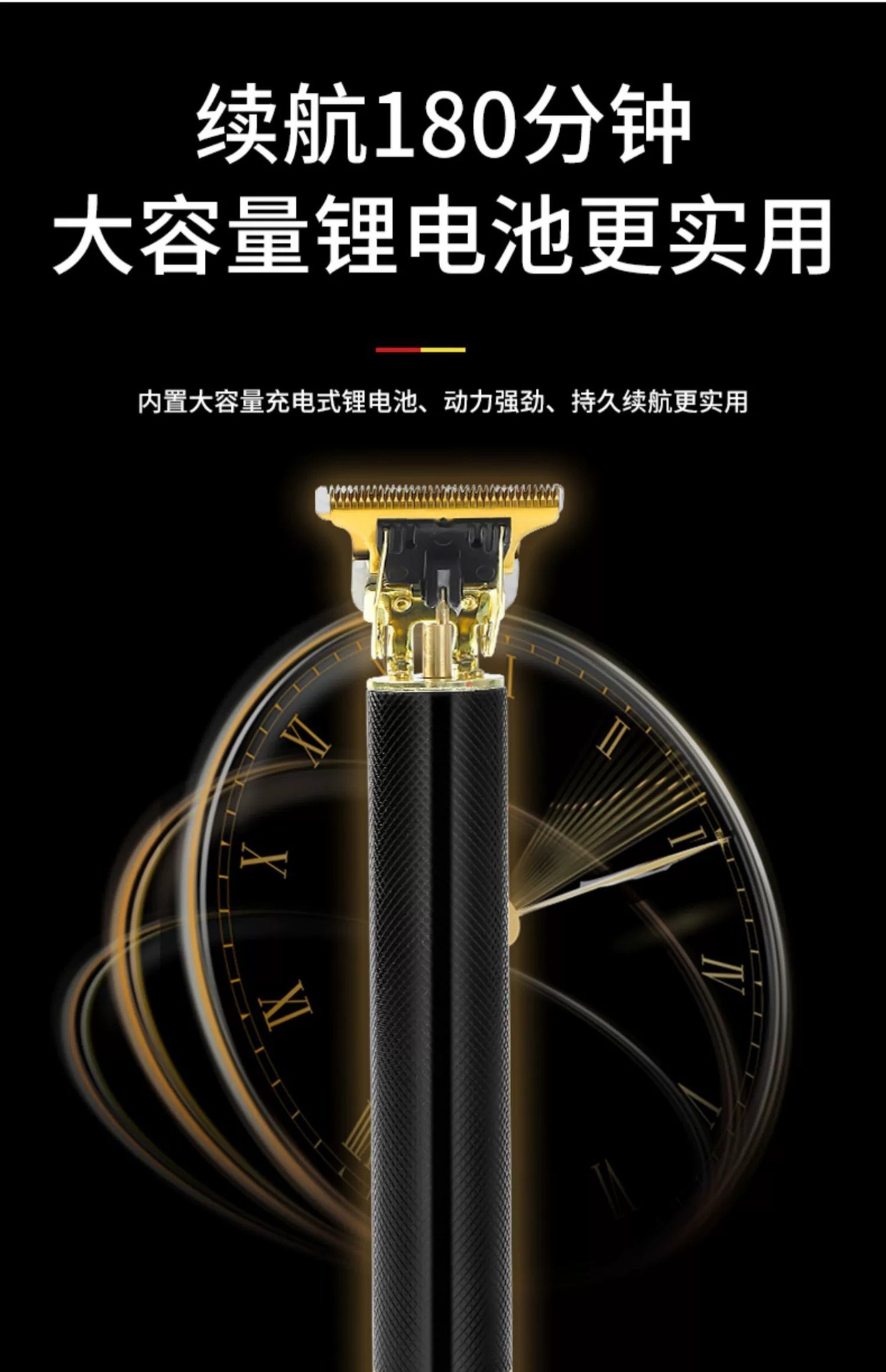 블랙 골드 + 예비 배터리 + 오리지널 커터 헤드 헤어 클리퍼-블랙 그리드 시트 충전