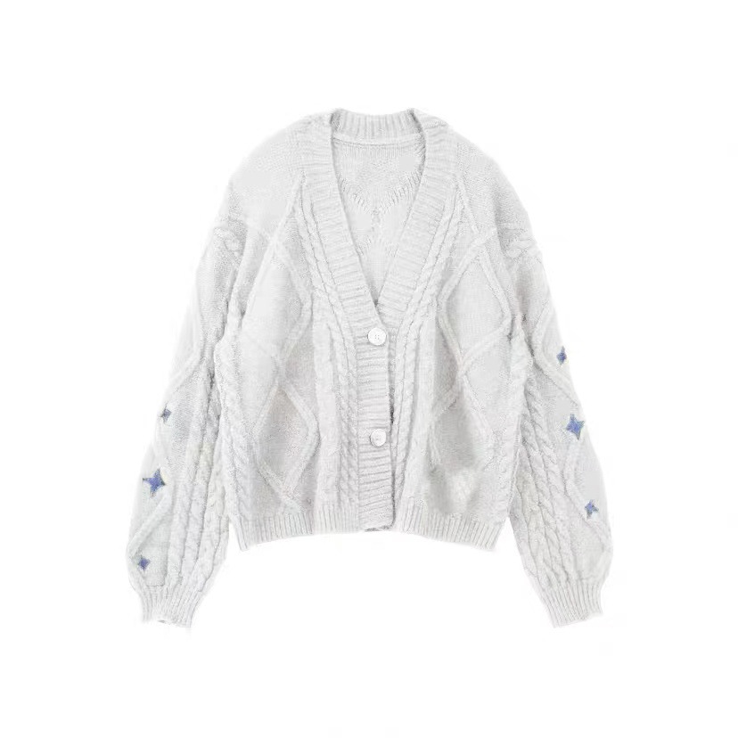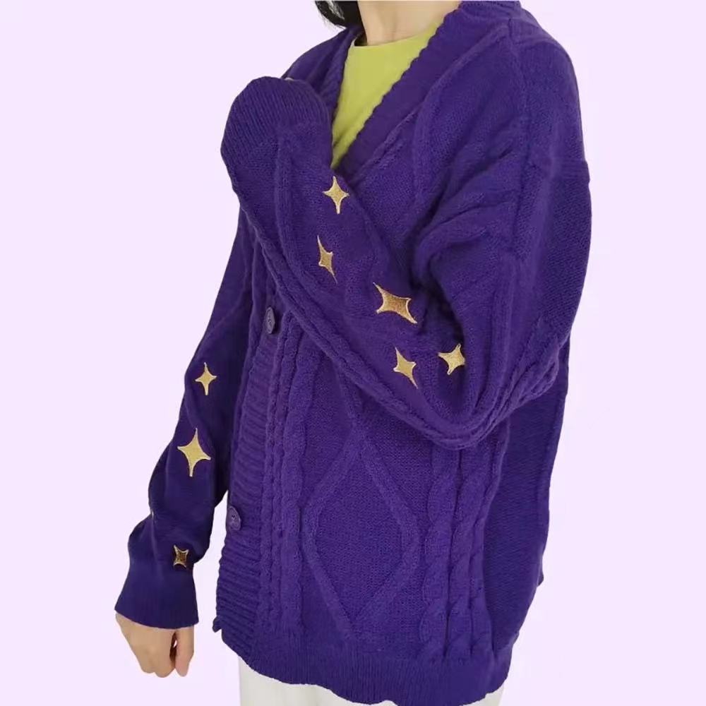 가을과 겨울 새로운 보라색 스웨터 카디건 코트 국경 유럽 및 미국 싱글 브레스트 스타 자수 캐주얼 스웨터 탑