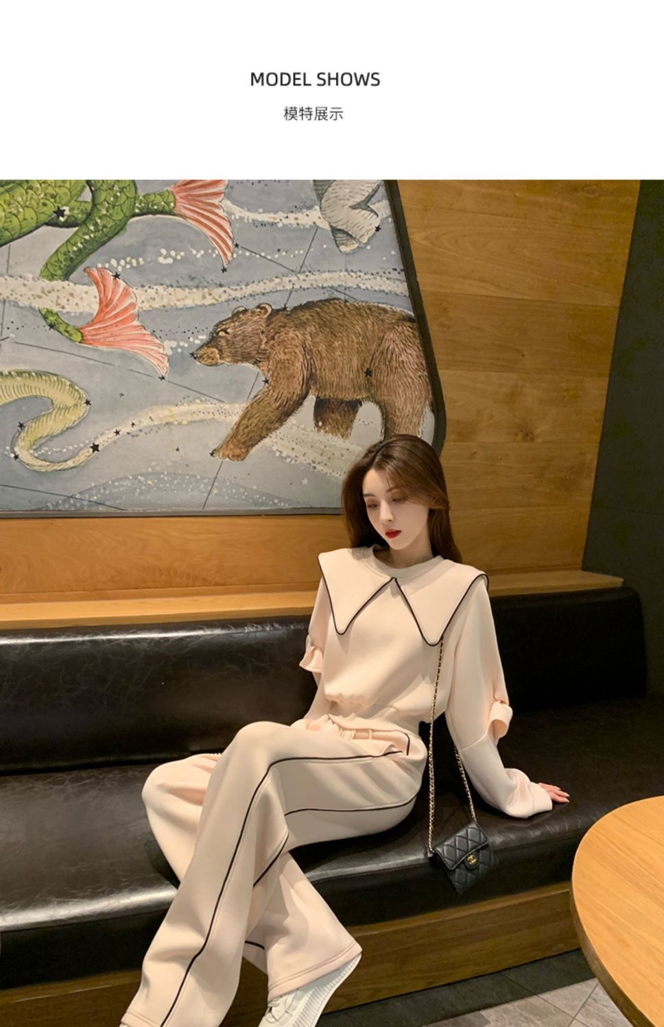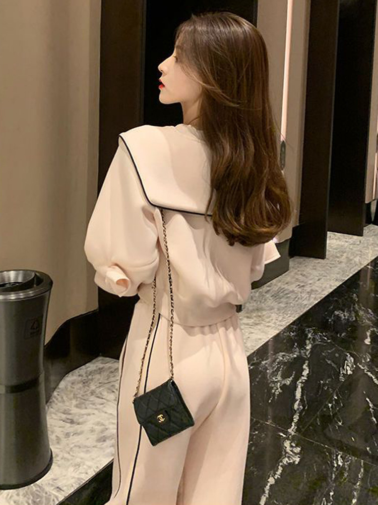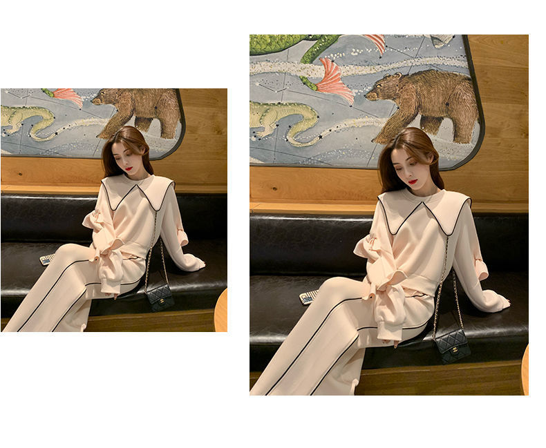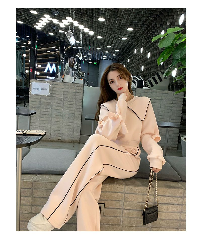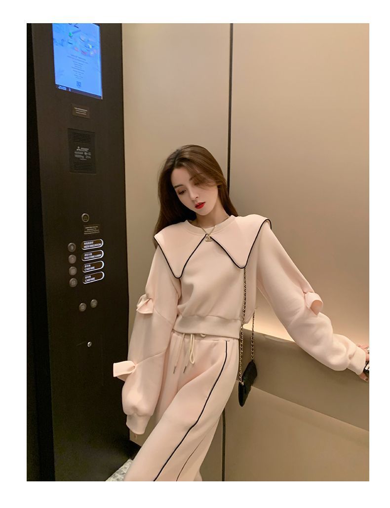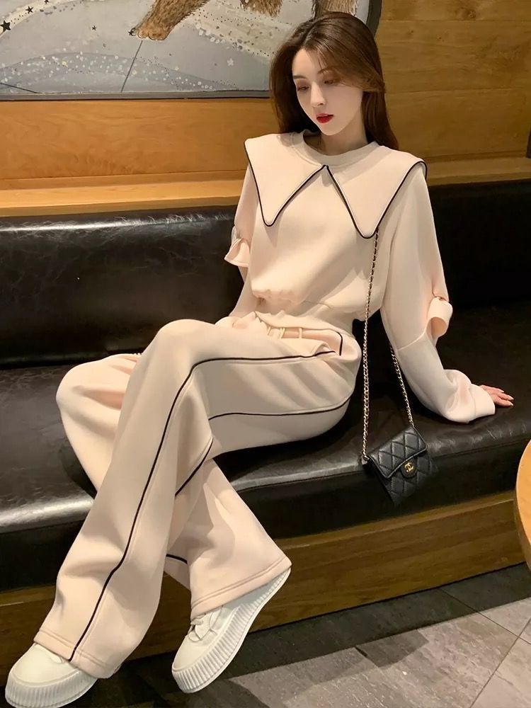 Xiaoxiangfeng 캐주얼 스웨트 셔츠 정장 바지 가을, 겨울 여성 2024 새로운 스타일 작은 패션 스포츠 바지 투피스 세트
