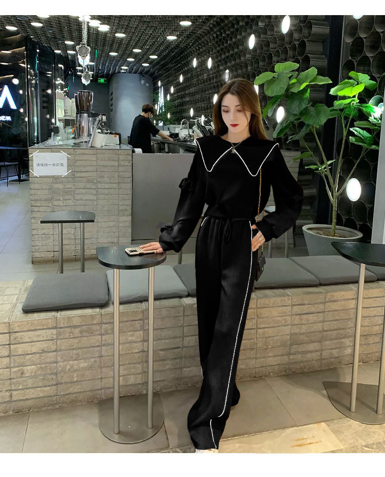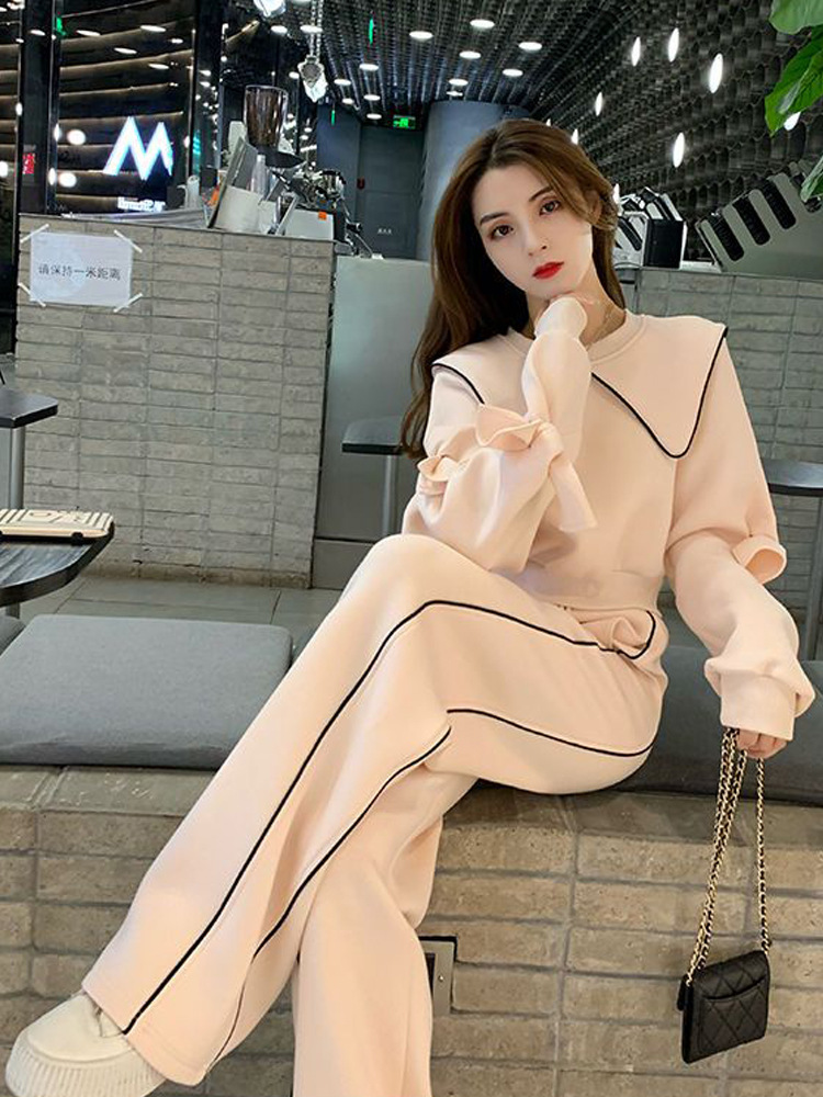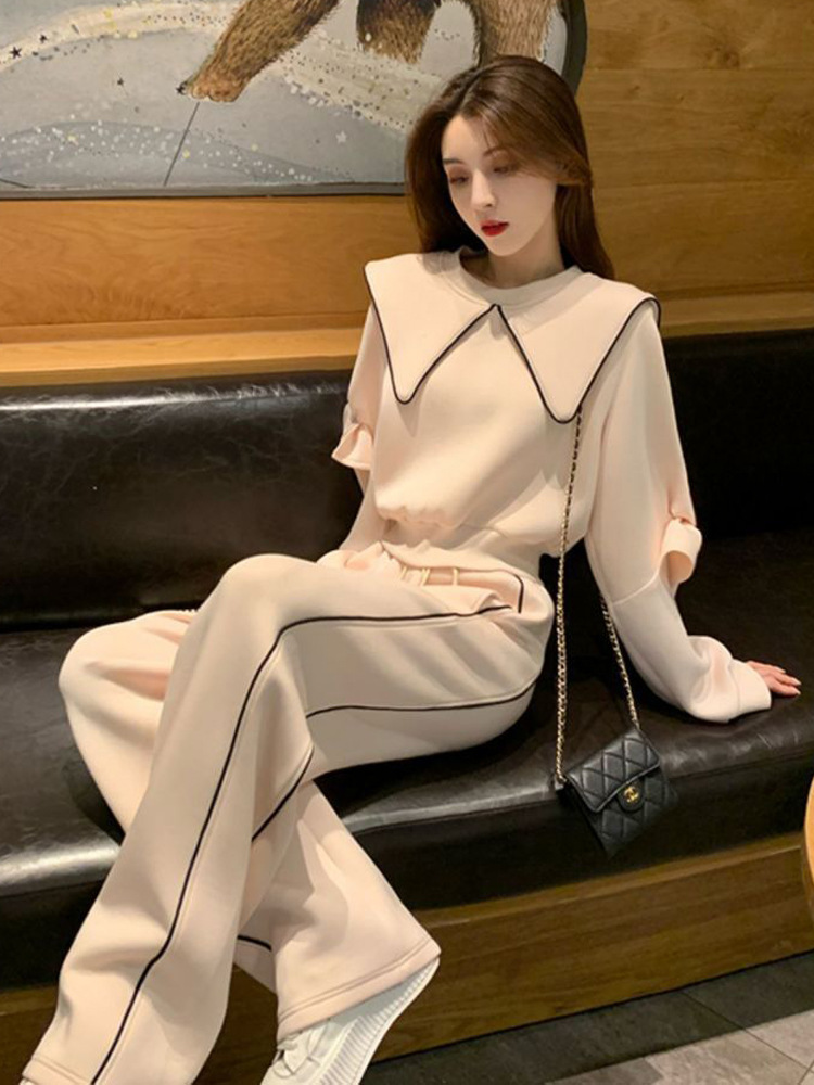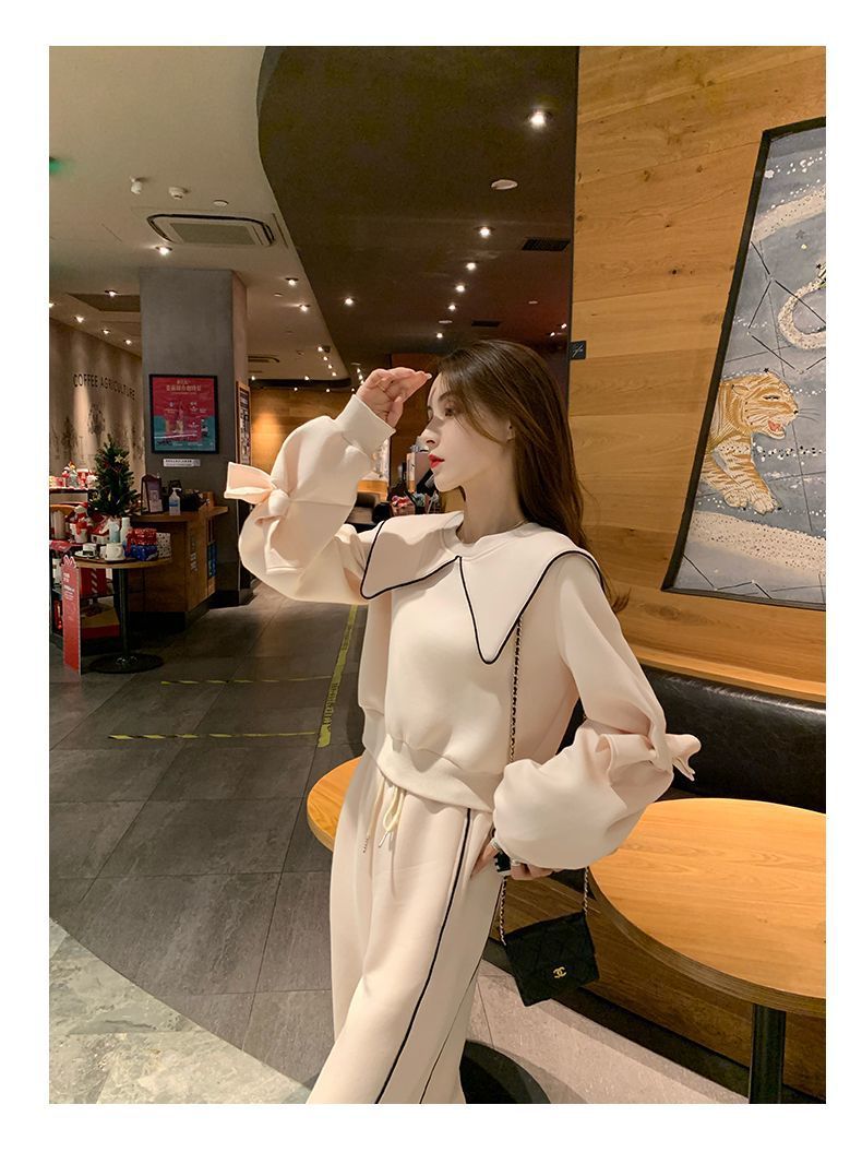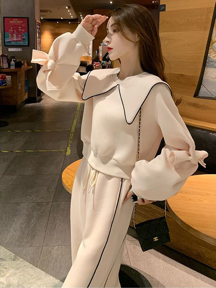 Xiaoxiangfeng 캐주얼 스웨트 셔츠 정장 바지 가을, 겨울 여성 2024 새로운 스타일 작은 패션 스포츠 바지 투피스 세트