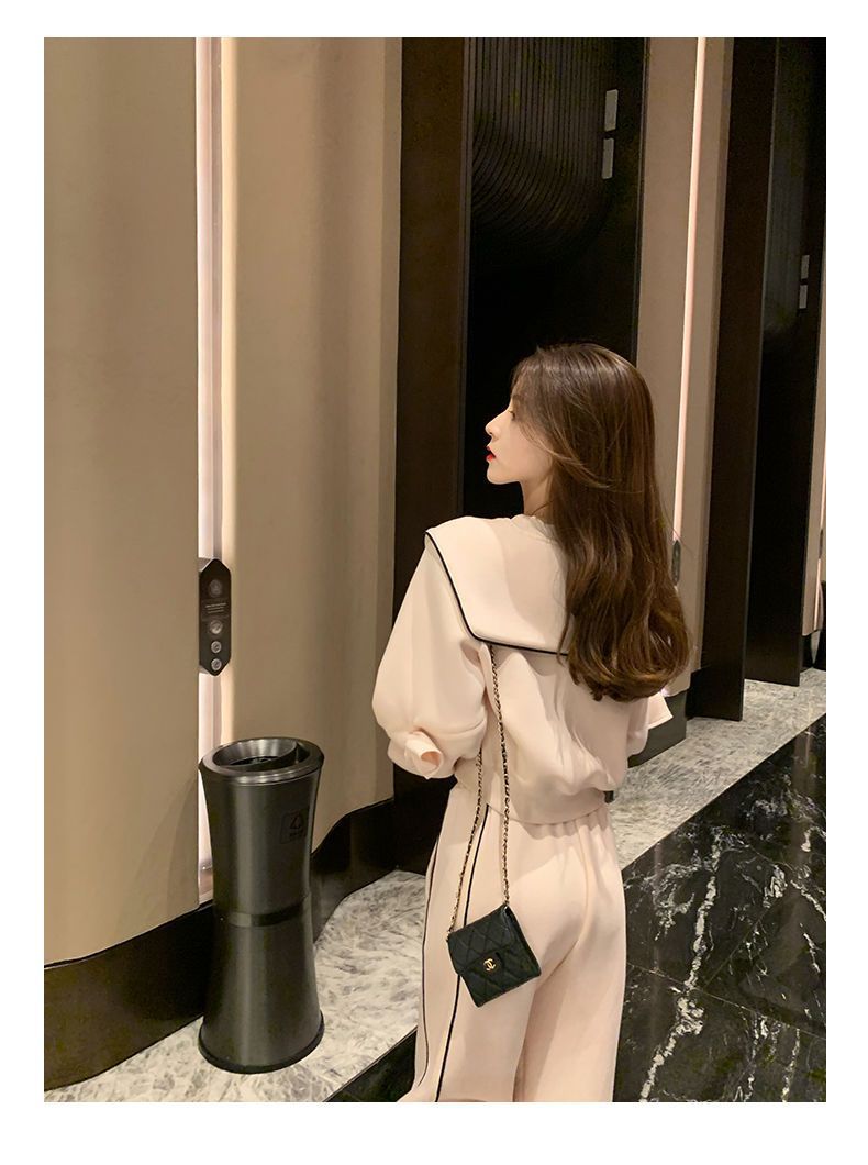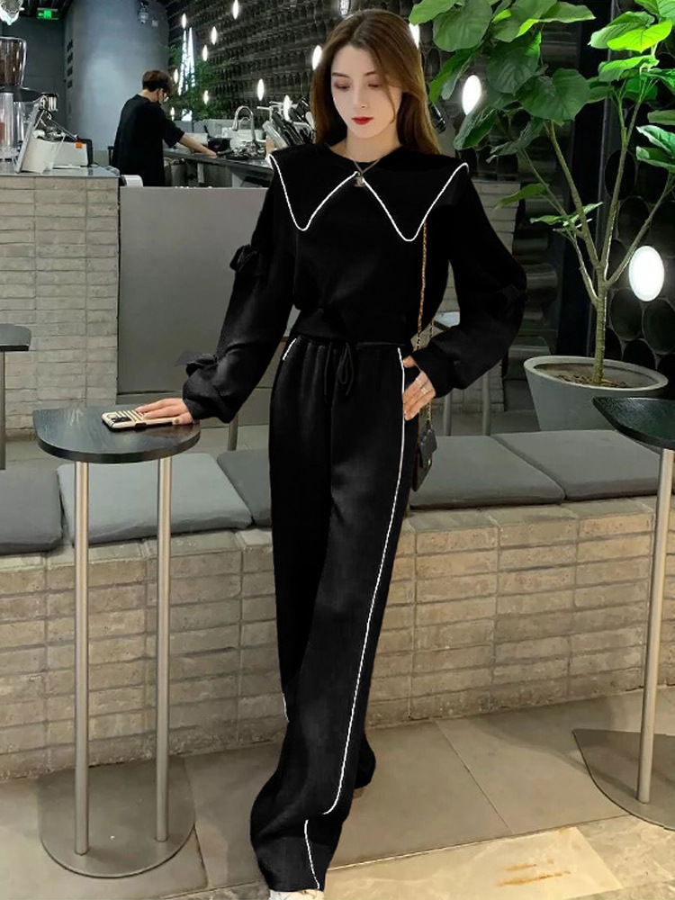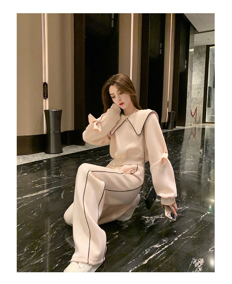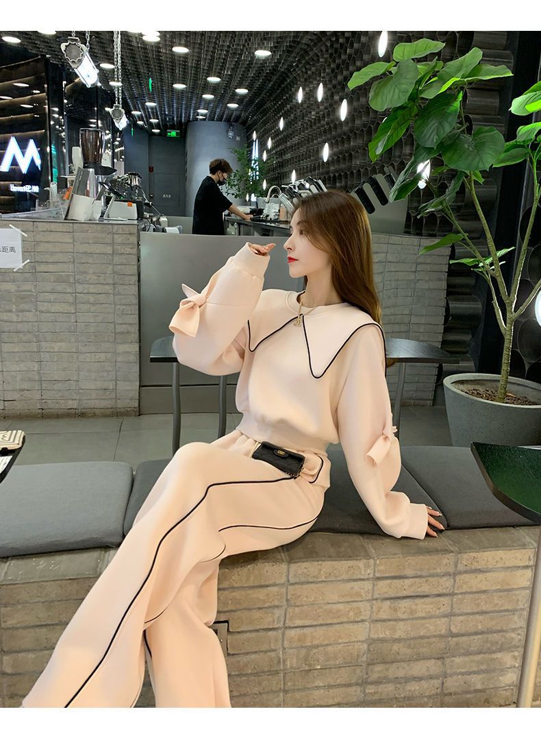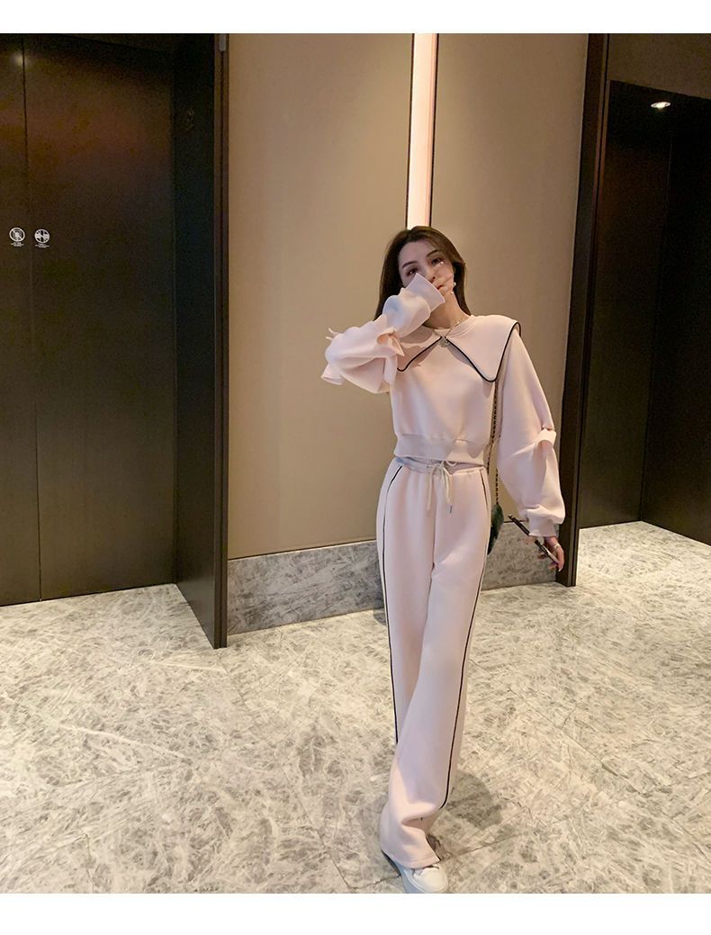 Xiaoxiangfeng 캐주얼 스웨트 셔츠 정장 바지 가을, 겨울 여성 2024 새로운 스타일 작은 패션 스포츠 바지 투피스 세트