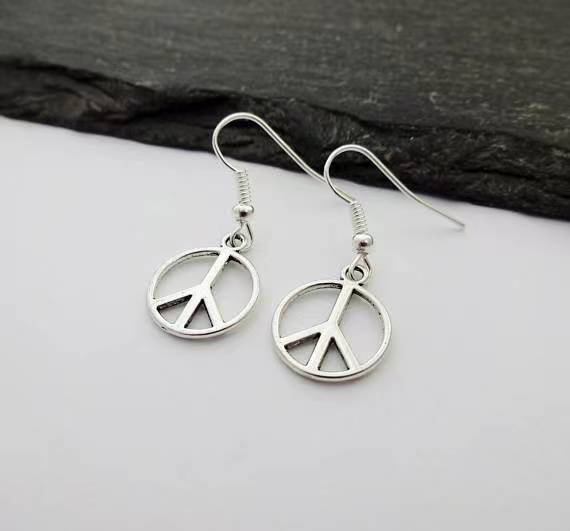 유럽과 미국 국경 간 평화 로고 귀걸이 보헤미아 빈티지 합금 평화 귀걸이 귀걸이 도매