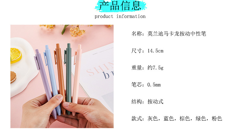| 产品名称:莫兰迪马卡龙按动中性笔; | |