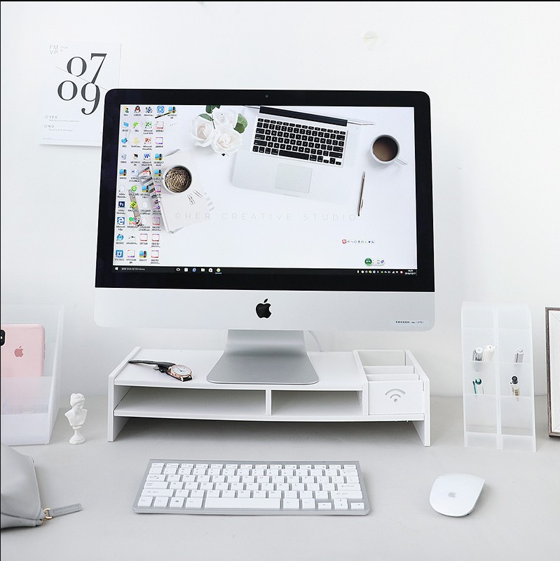 사무실 컴퓨터 높은 다층 스토리지 랙 데스크탑 다기능 스토리지 랙 데스크탑 모니터 스탠드