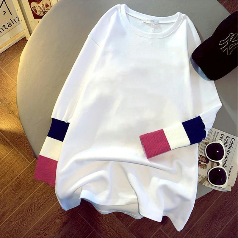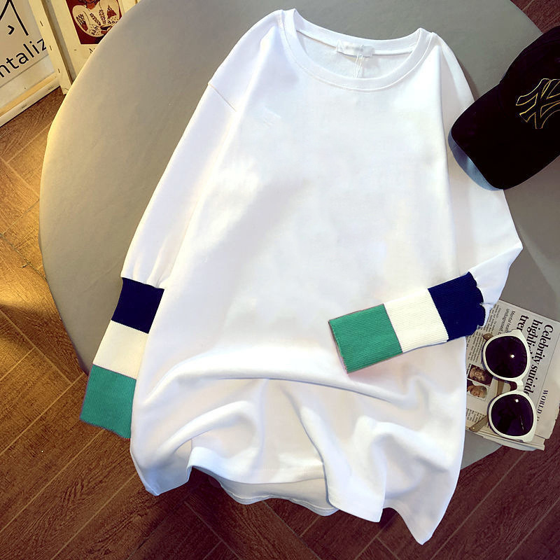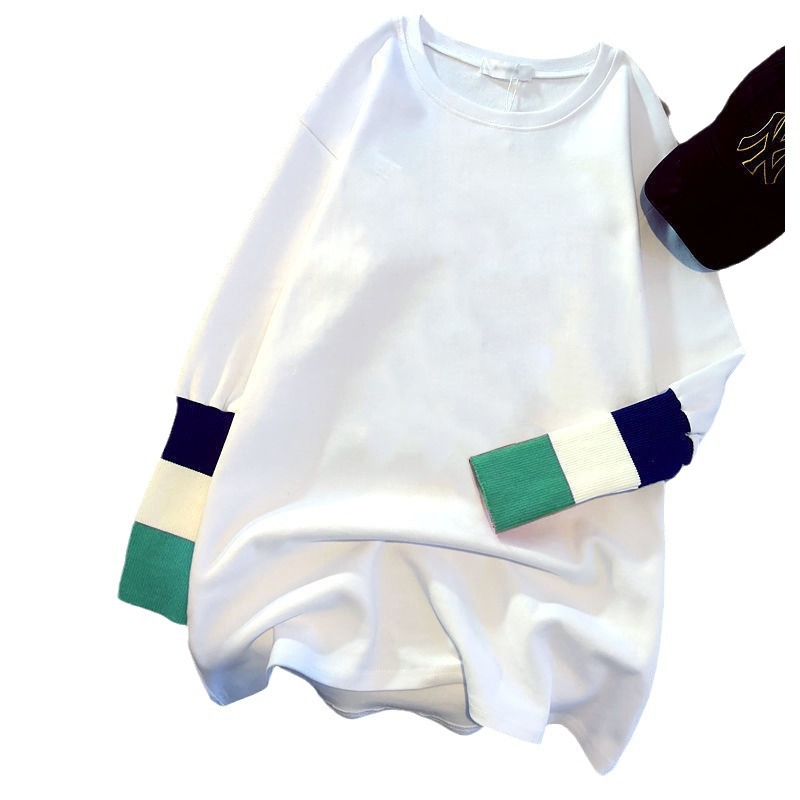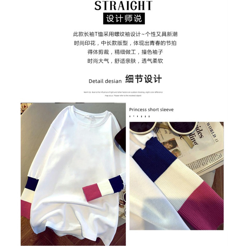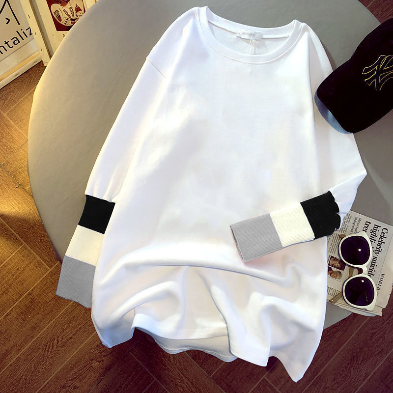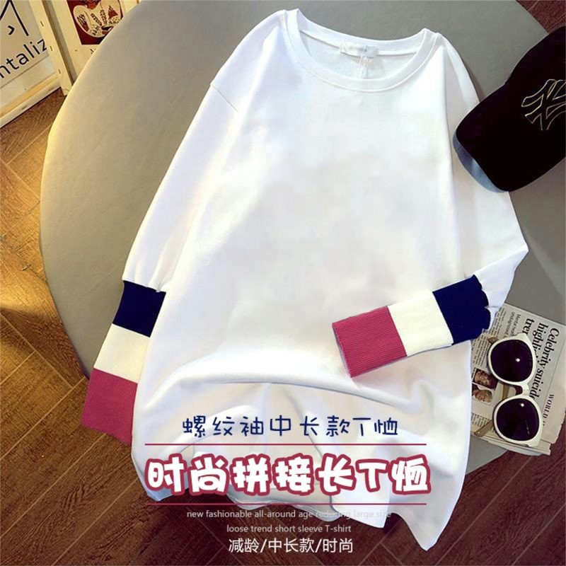가을 긴팔 여성베이스 셔츠 스티칭 가짜 투피스 긴팔 티셔츠 여성용 단색 루즈한베이스 탑 풀오버 여성용 티셔츠