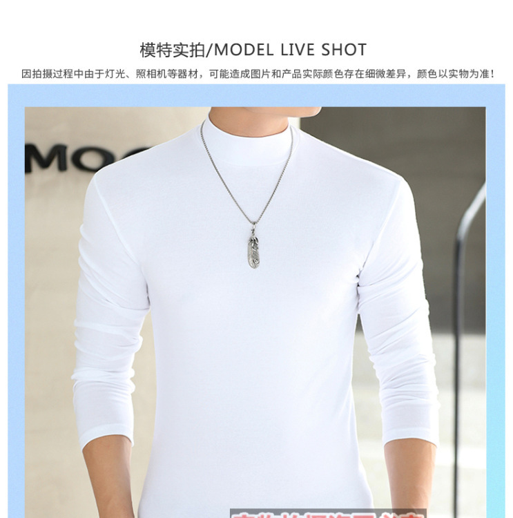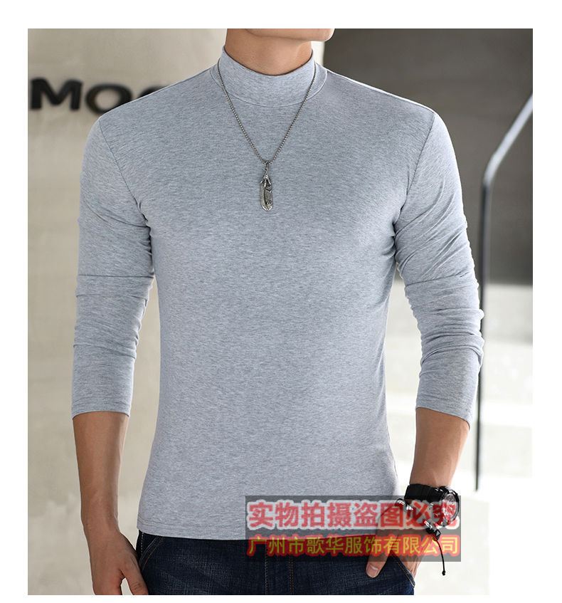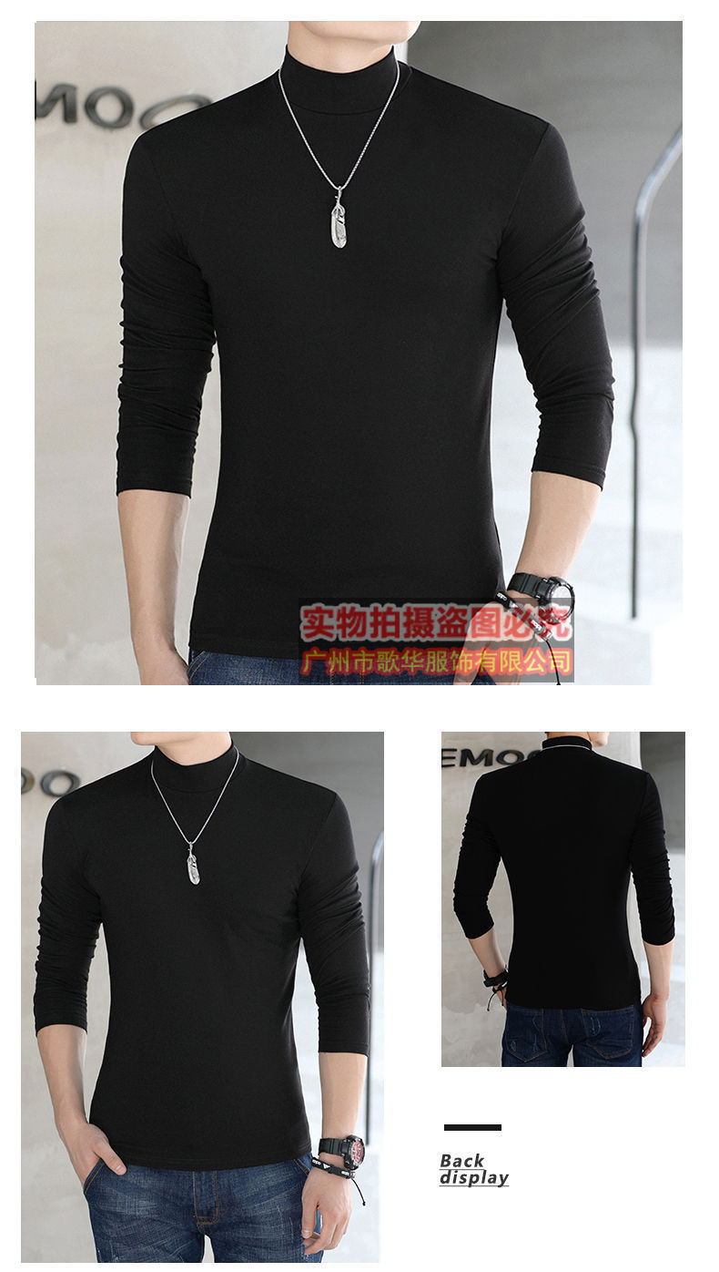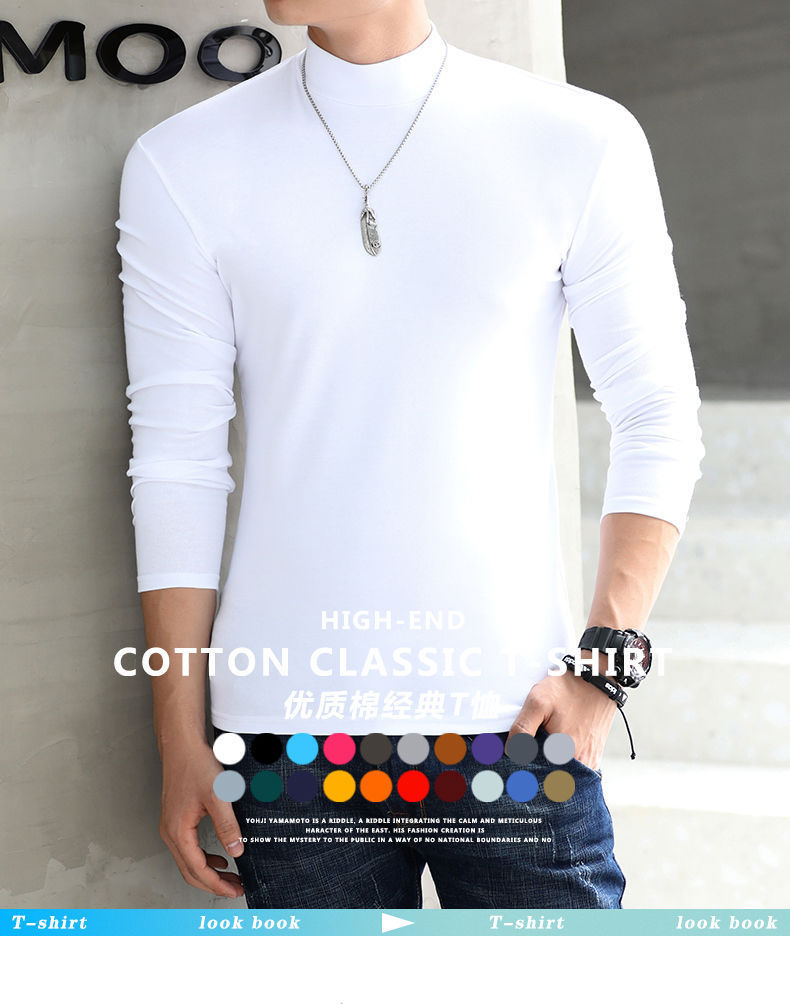 2023 미드 하이 칼라 베이스 셔츠 남성용 긴팔 티셔츠 가을 시즌 단색 슬림 핏 플러스 사이즈 따뜻한 가을 옷 한국 스타일