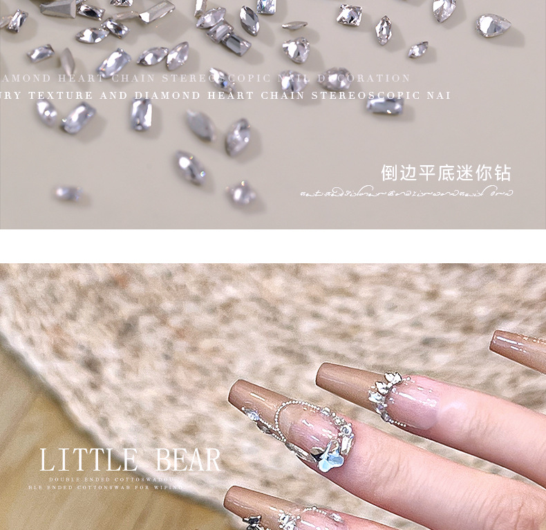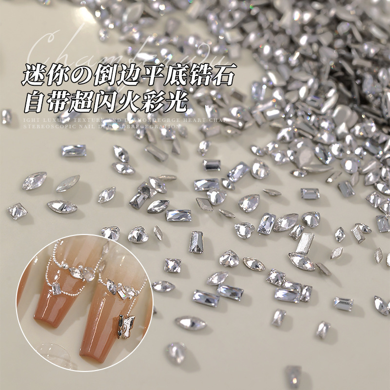 네일 아트 쥬얼리 미니 거꾸로 된 가장자리 지르콘 투명 흰색 모양의 평면 다이아몬드 작은 밀 스파이크 더미 드릴 버스트 플래시 네일 드릴