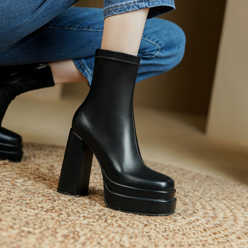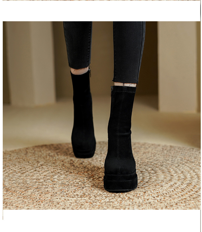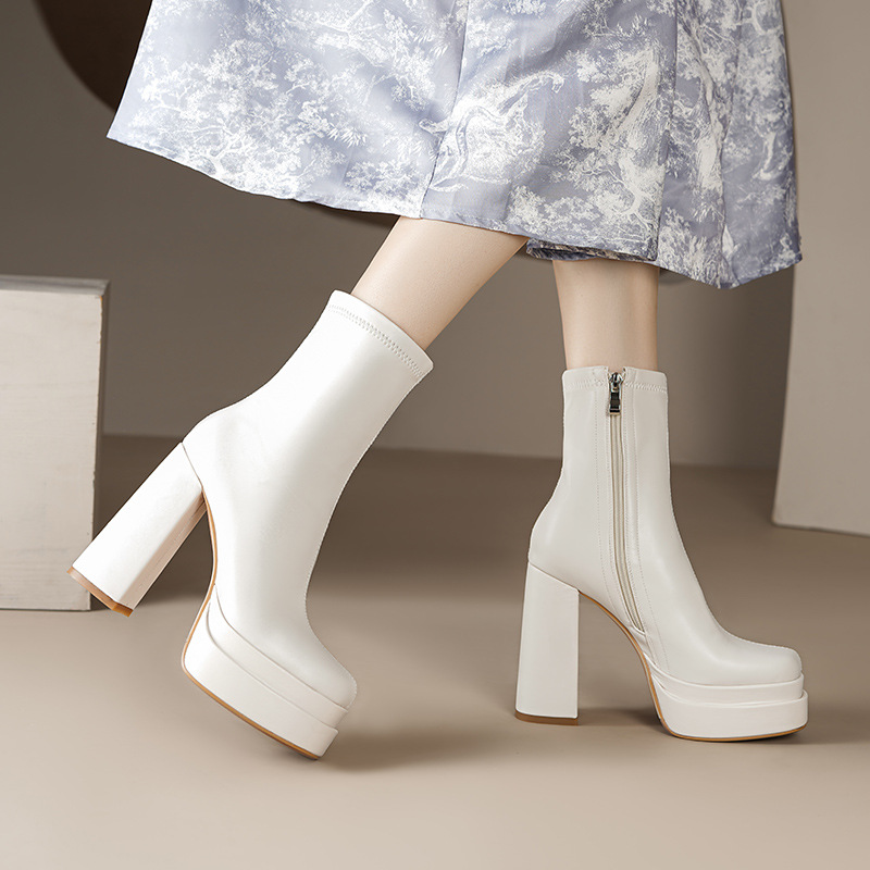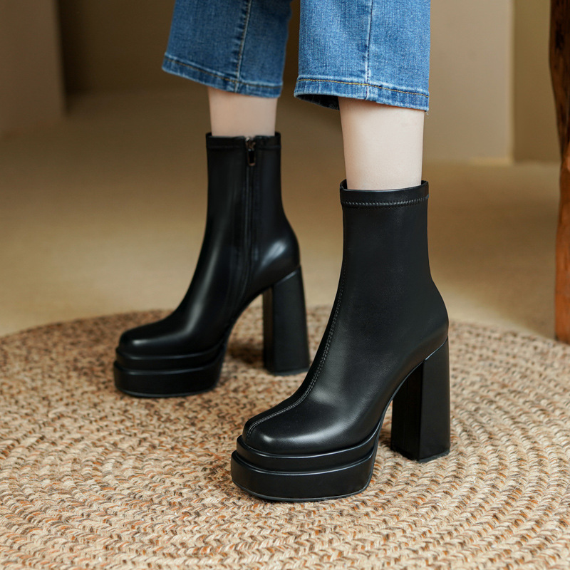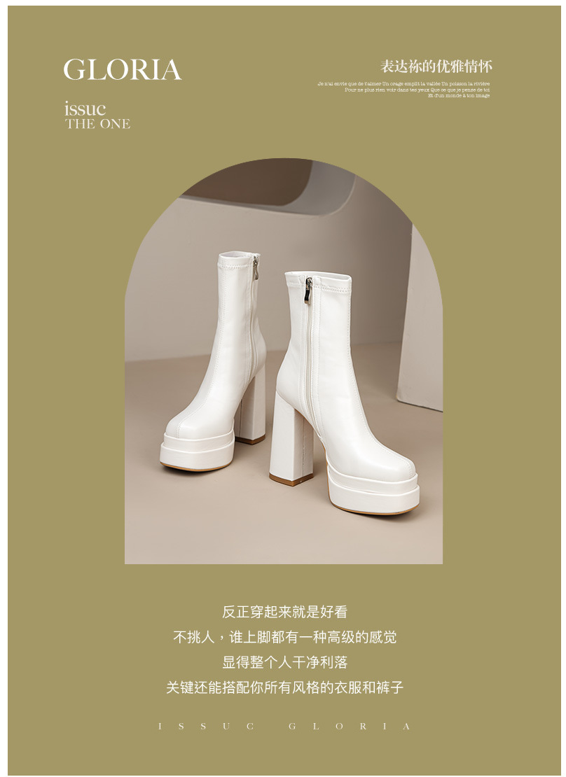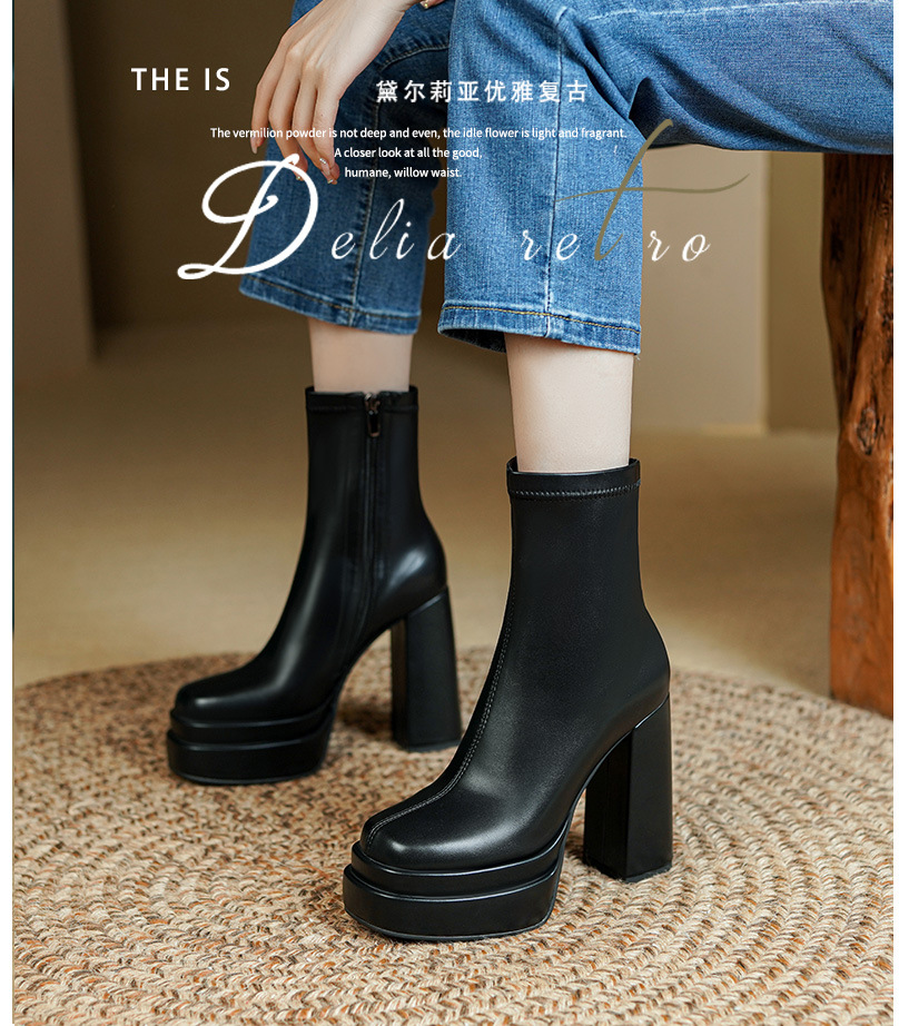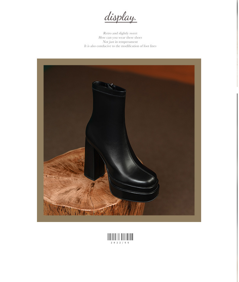 프랑스 스타일 작은 발목 부츠 하이힐 얇은 부츠 두꺼운 굽 방수 테이블 마틴 부츠 여성용 2023 스커트와 새로운 스타일 짧은 부츠