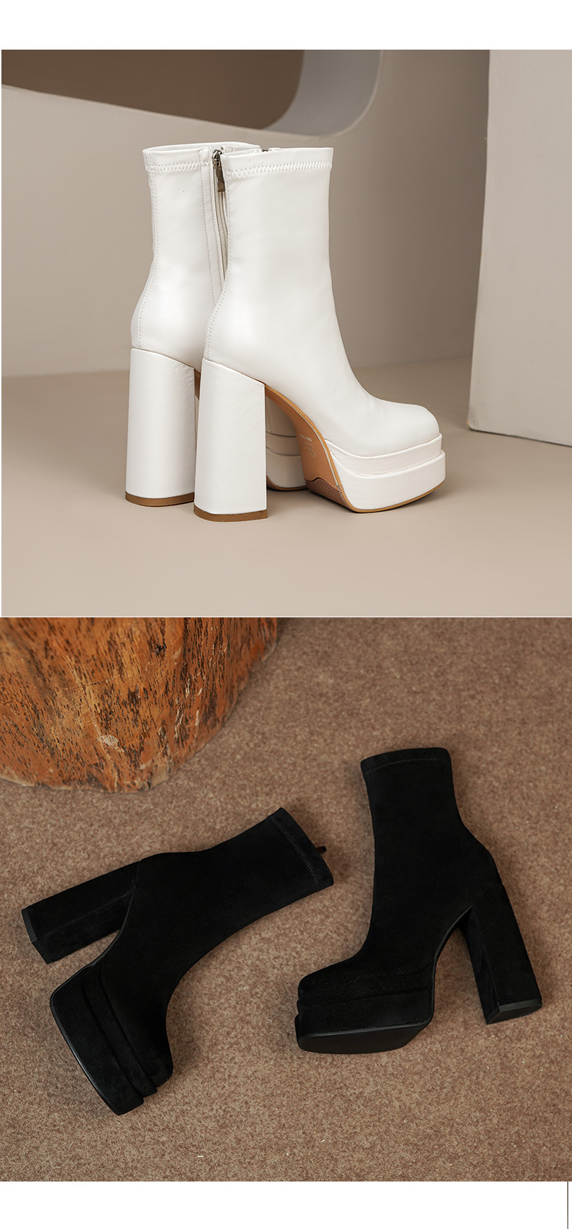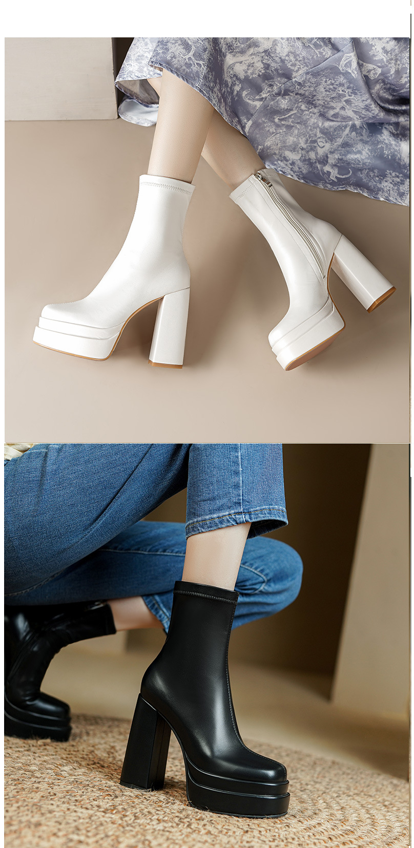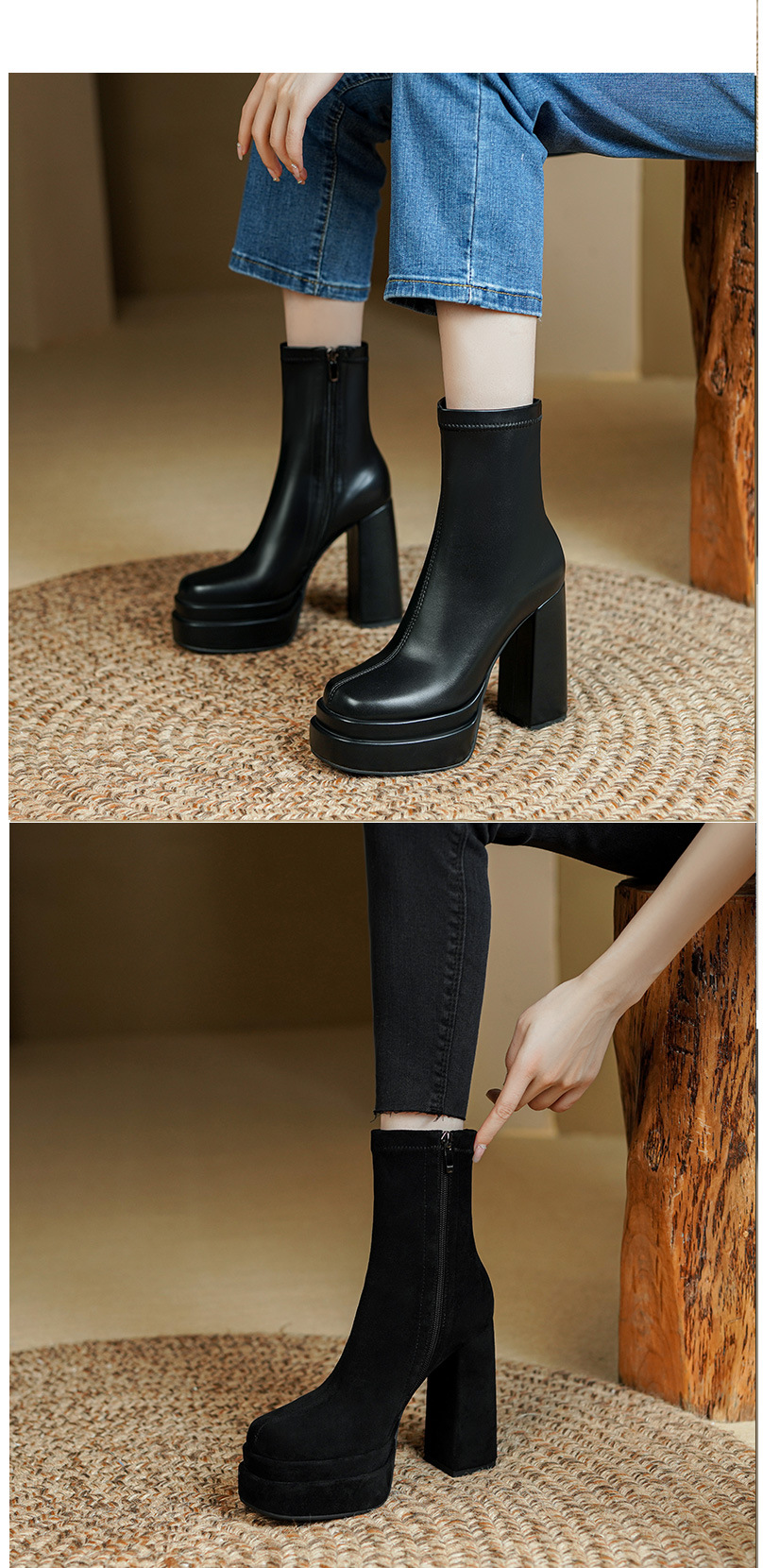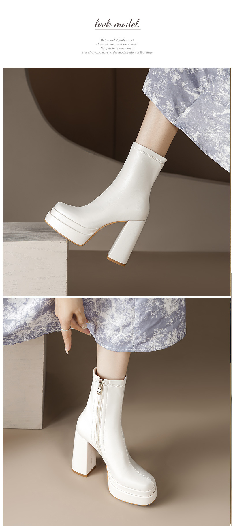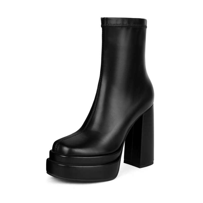 프랑스 스타일 작은 발목 부츠 하이힐 얇은 부츠 두꺼운 굽 방수 테이블 마틴 부츠 여성용 2023 스커트와 새로운 스타일 짧은 부츠