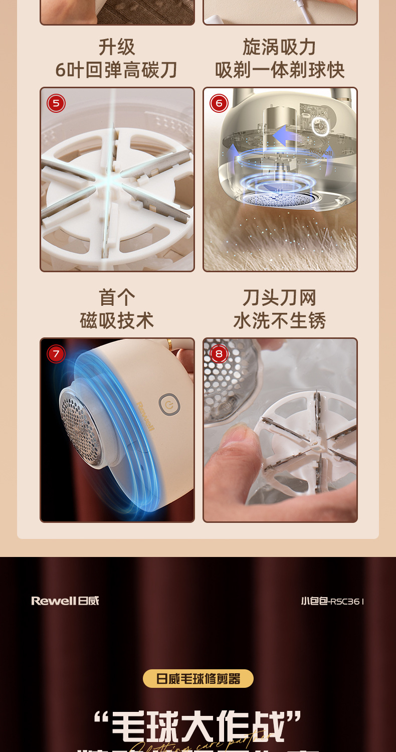 Riwei 면도 의류 헤어 볼 트리머 가정용 충전식 헤어 비트 머신 필링 및 긁기 볼 제거 RSC-361