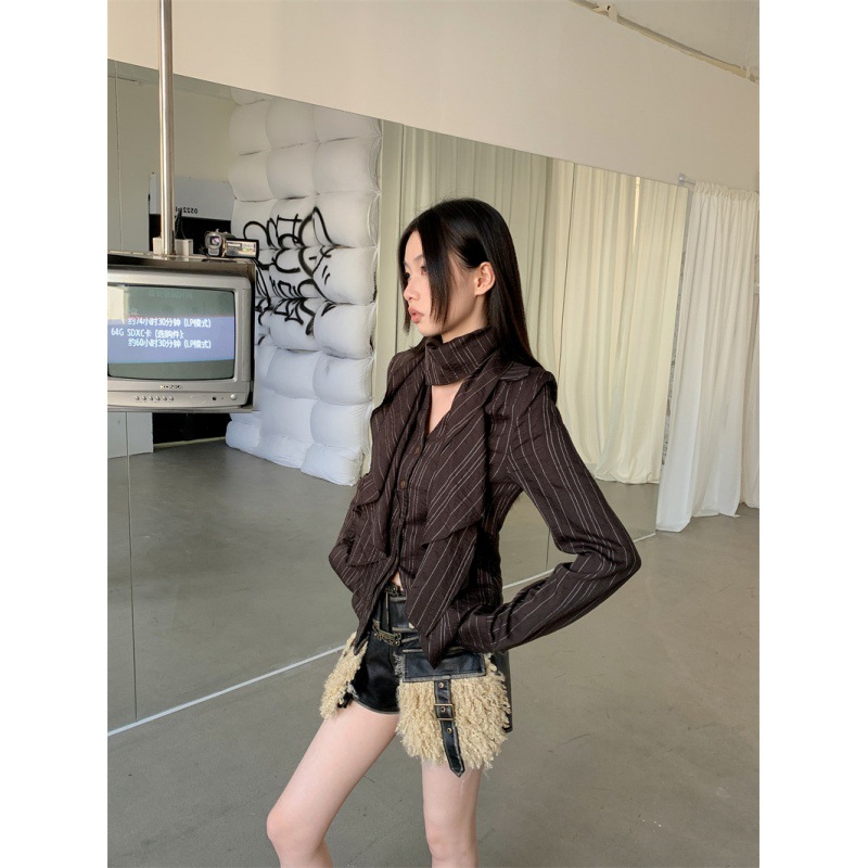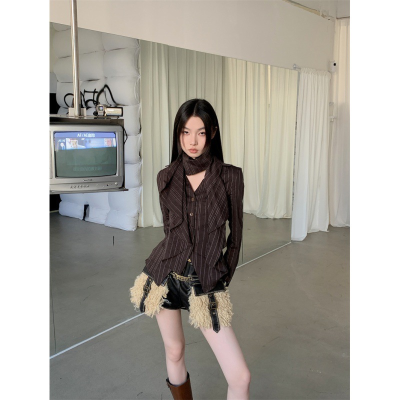 여성용 신상 디자인 스카프 긴팔 허리 조임 셔츠 이너웨어 탑