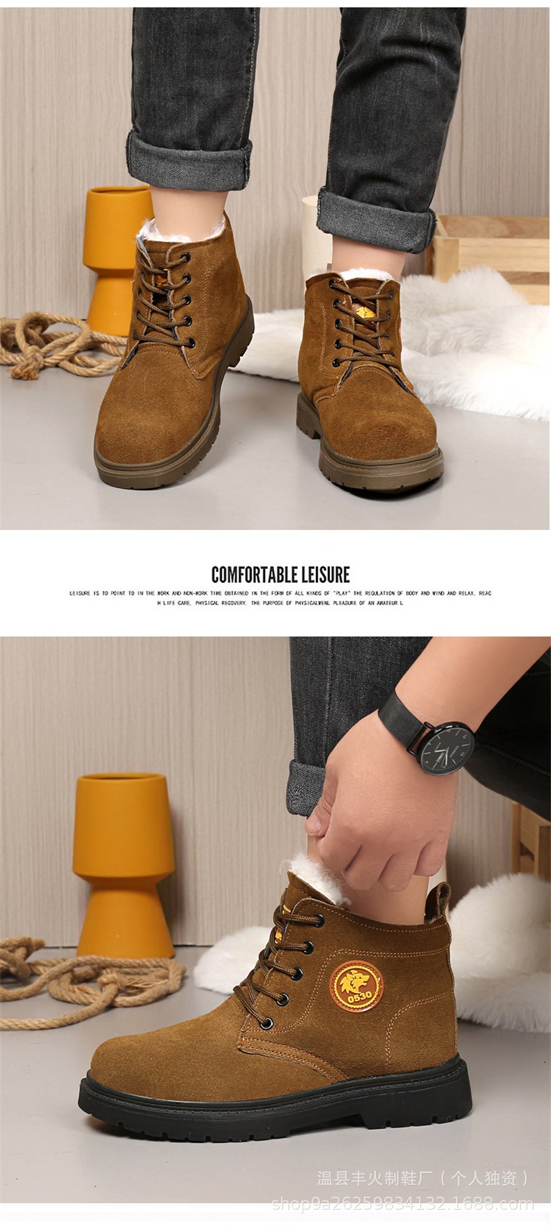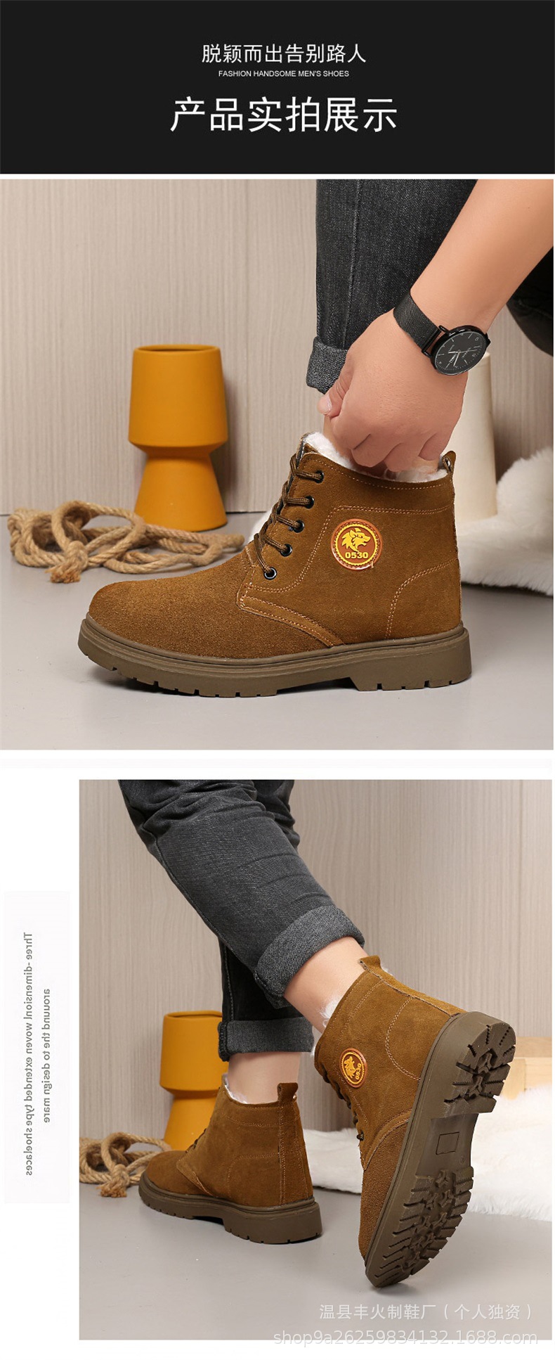 겨울 다용도 부츠, 남성용 면화, 하이탑 벨벳 두꺼운 마틴 부츠, 따뜻하고 미끄럼 방지 스노우 부츠, 추위로부터 보호하는 가을 겨울 부츠