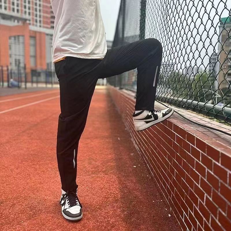 남성용 속건 루즈한 캐주얼 스포츠 바지 바지 달리기 피트니스 축구 트레이닝 바지 사계절 스트레이트 아이스 실크 남성 바지