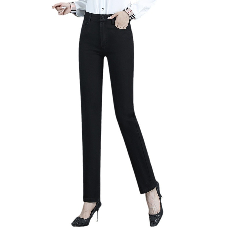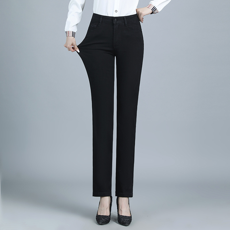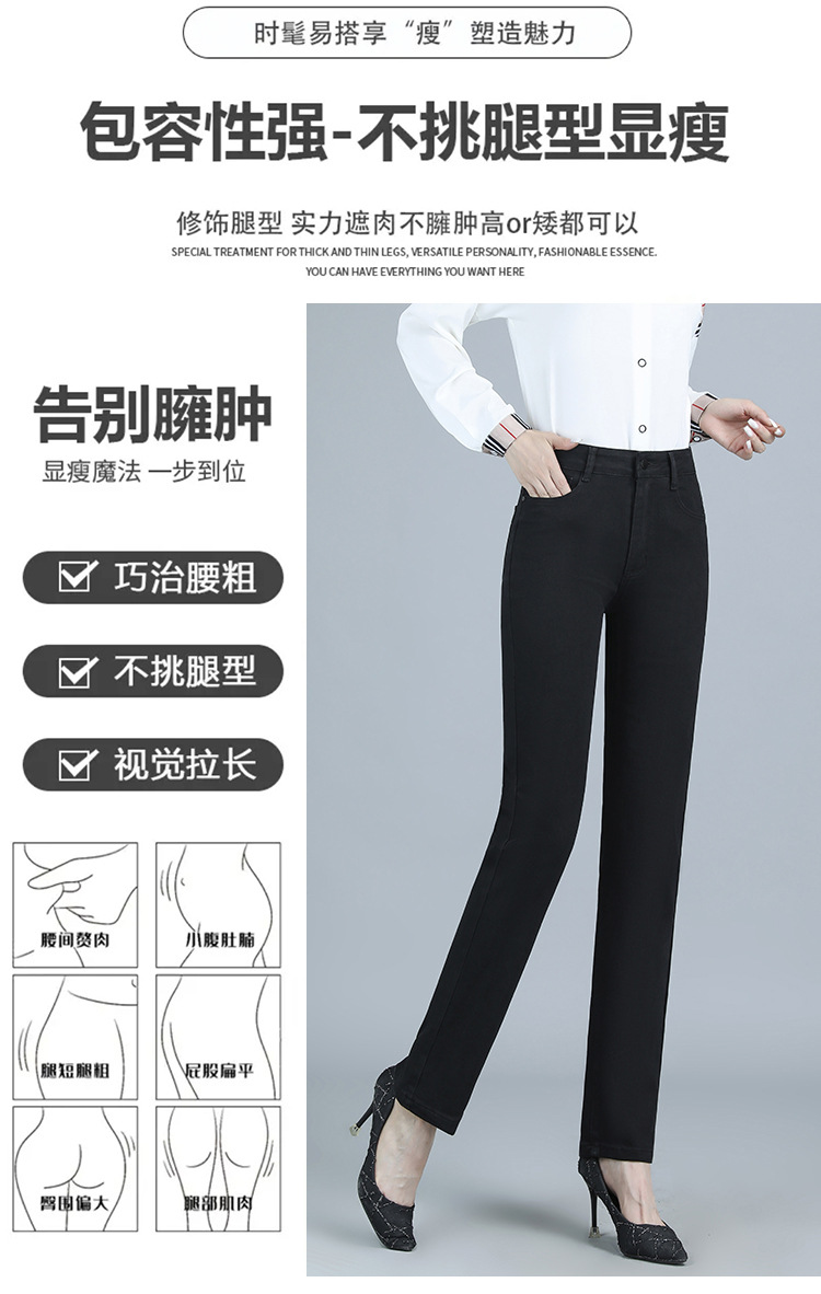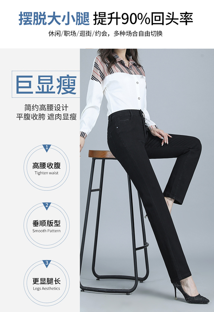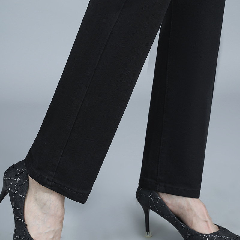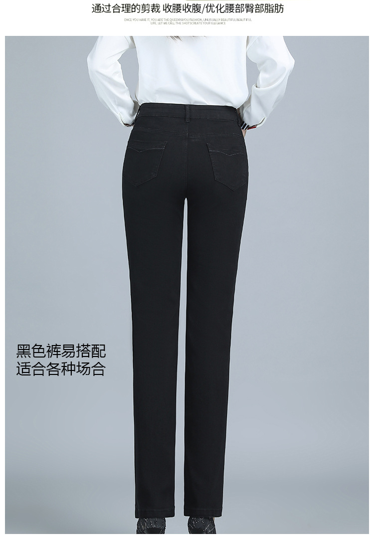 블랙 스트레이트 데님 팬츠, 큰 사이즈, 중년 여성 바지, 중년 엄마 바지, 하이웨이스트, 신축성, 슬림핏, 2026 봄