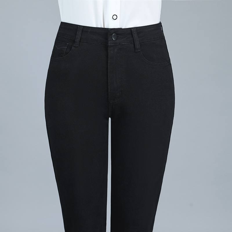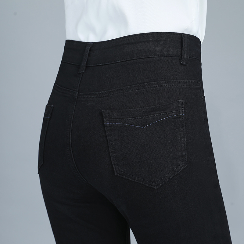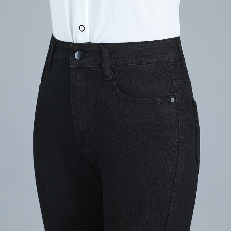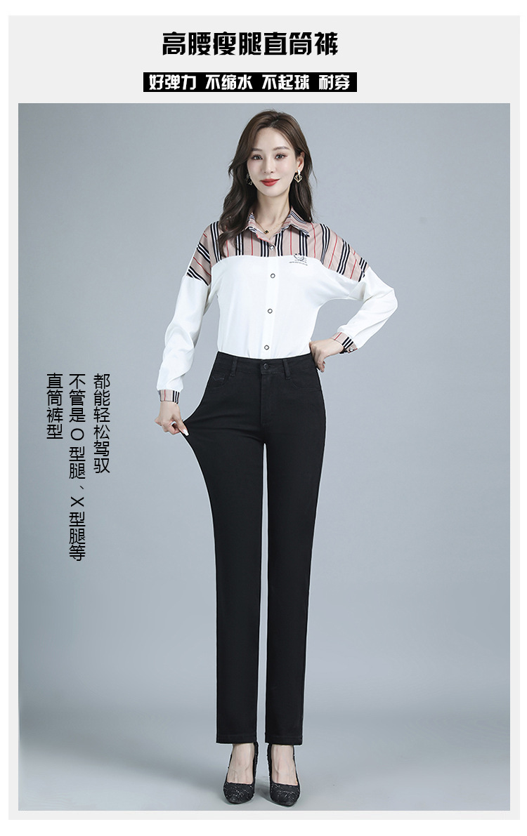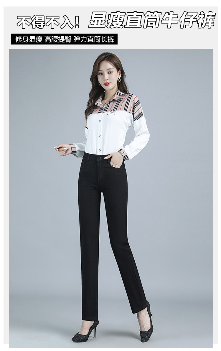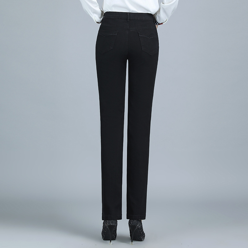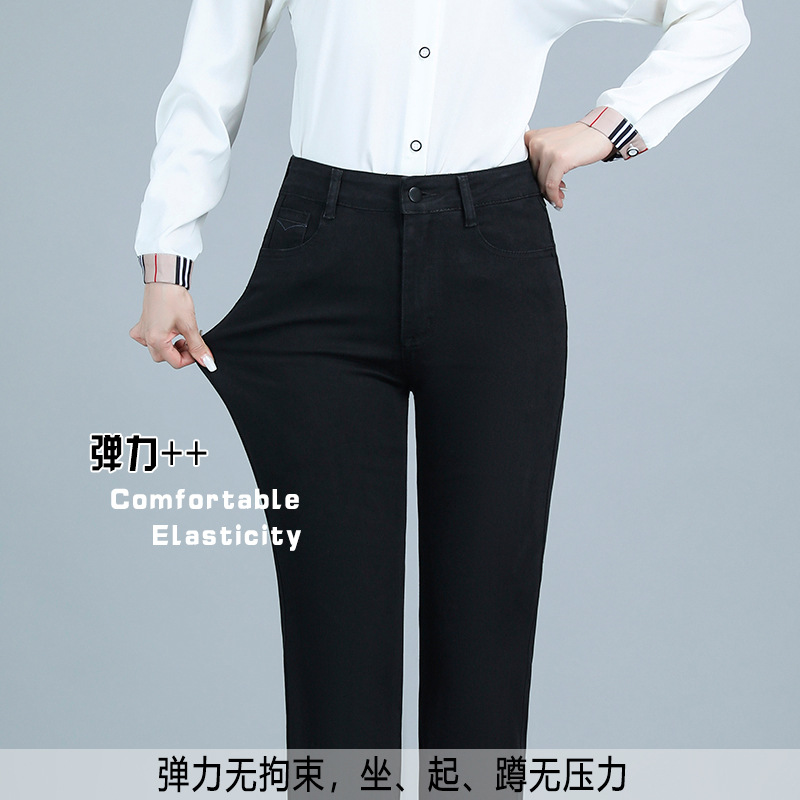 블랙 스트레이트 데님 팬츠, 큰 사이즈, 중년 여성 바지, 중년 엄마 바지, 하이웨이스트, 신축성, 슬림핏, 2026 봄