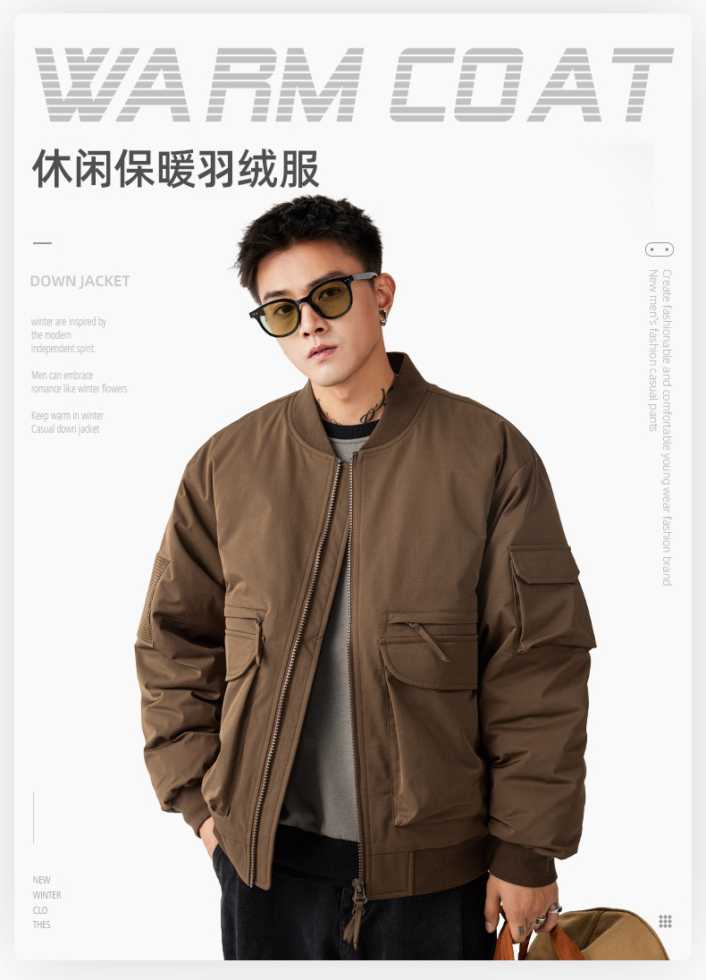 타이왕 남성복丨트렌디 브랜드 다운 재킷 2025 겨울 신상 방수 작업복 재킷 남성용 아웃도어 야구 칼라 상의