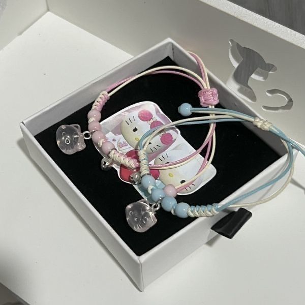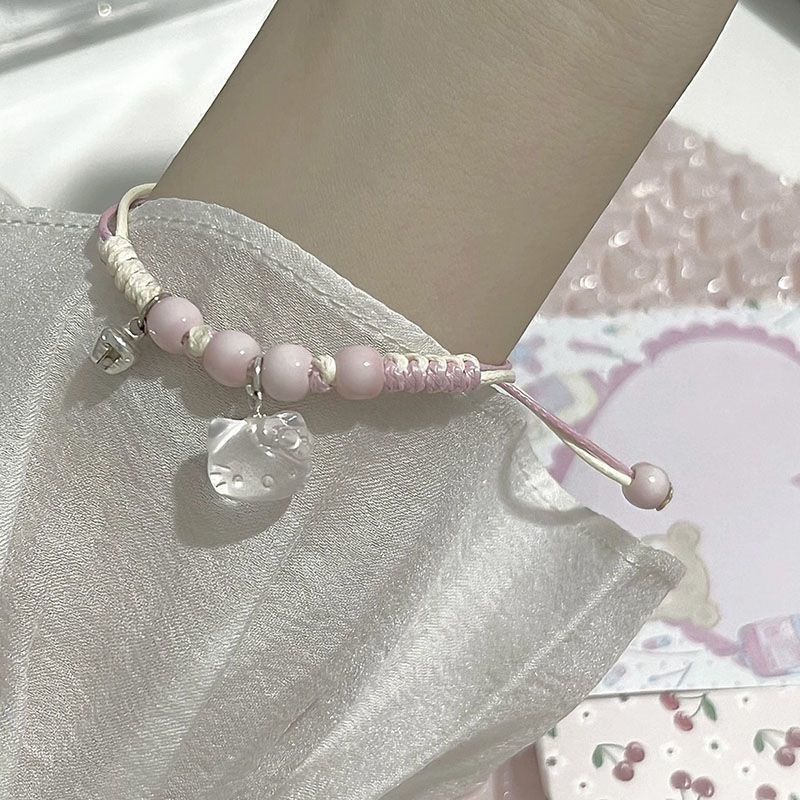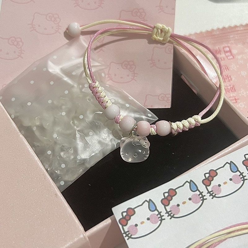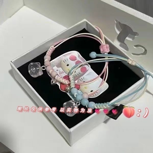 2023 수제 짠 분말 핸드 스트링 팔찌 틈새 귀여운 학생 여자 친구 선물 헬로 키티 조정 가능