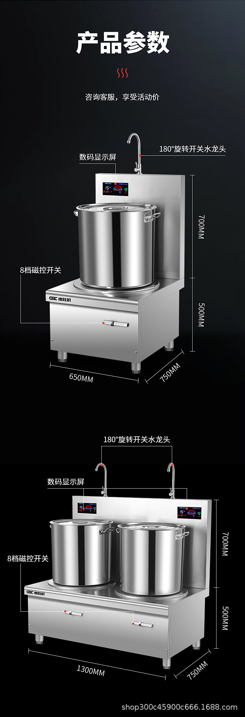 Desheng 주방 상업 유도 쿠커 절인 반죽 수프 쿠커 매점 15KW 고출력 수프 쿠커 플랫 절인 고기 저 수프 쿠커