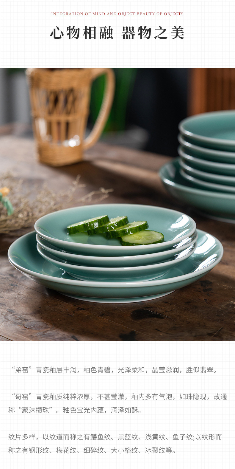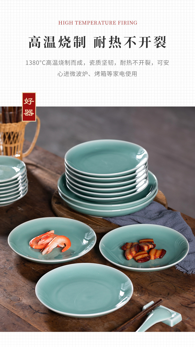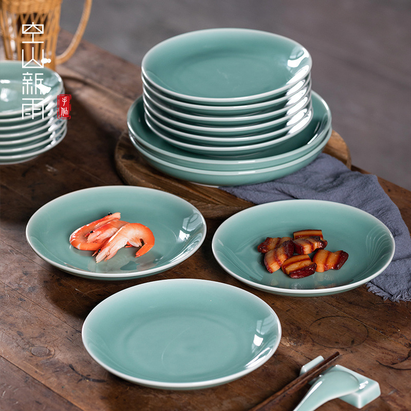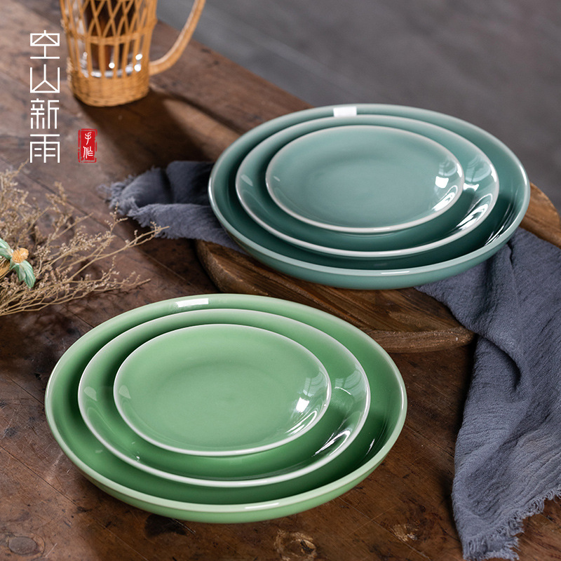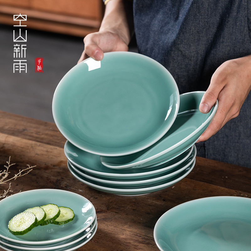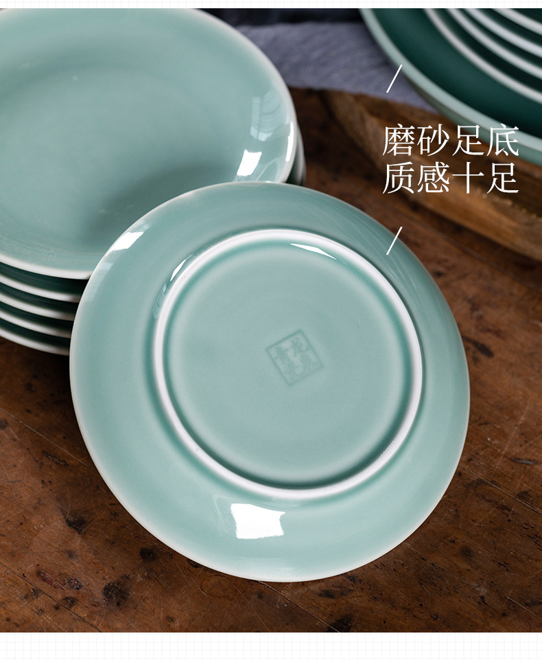 Kongshan 새로운 비 Longquan 청자 야채 접시 뼈 접시 세라믹 가정용 호텔 레스토랑 서양 음식 접시 단색 평면 접시 식기