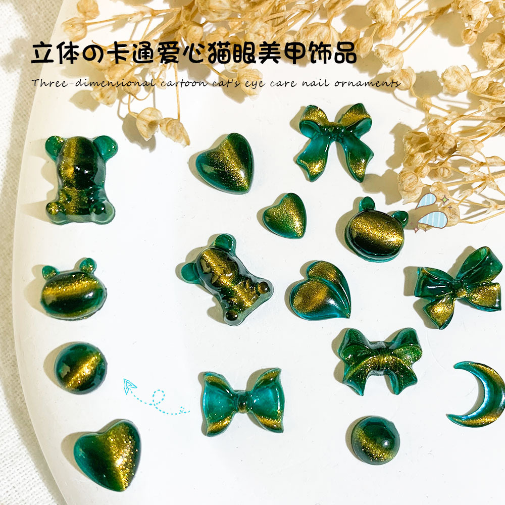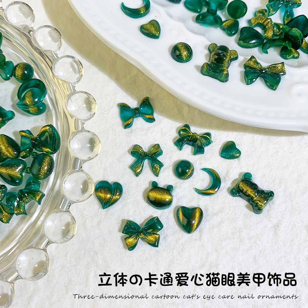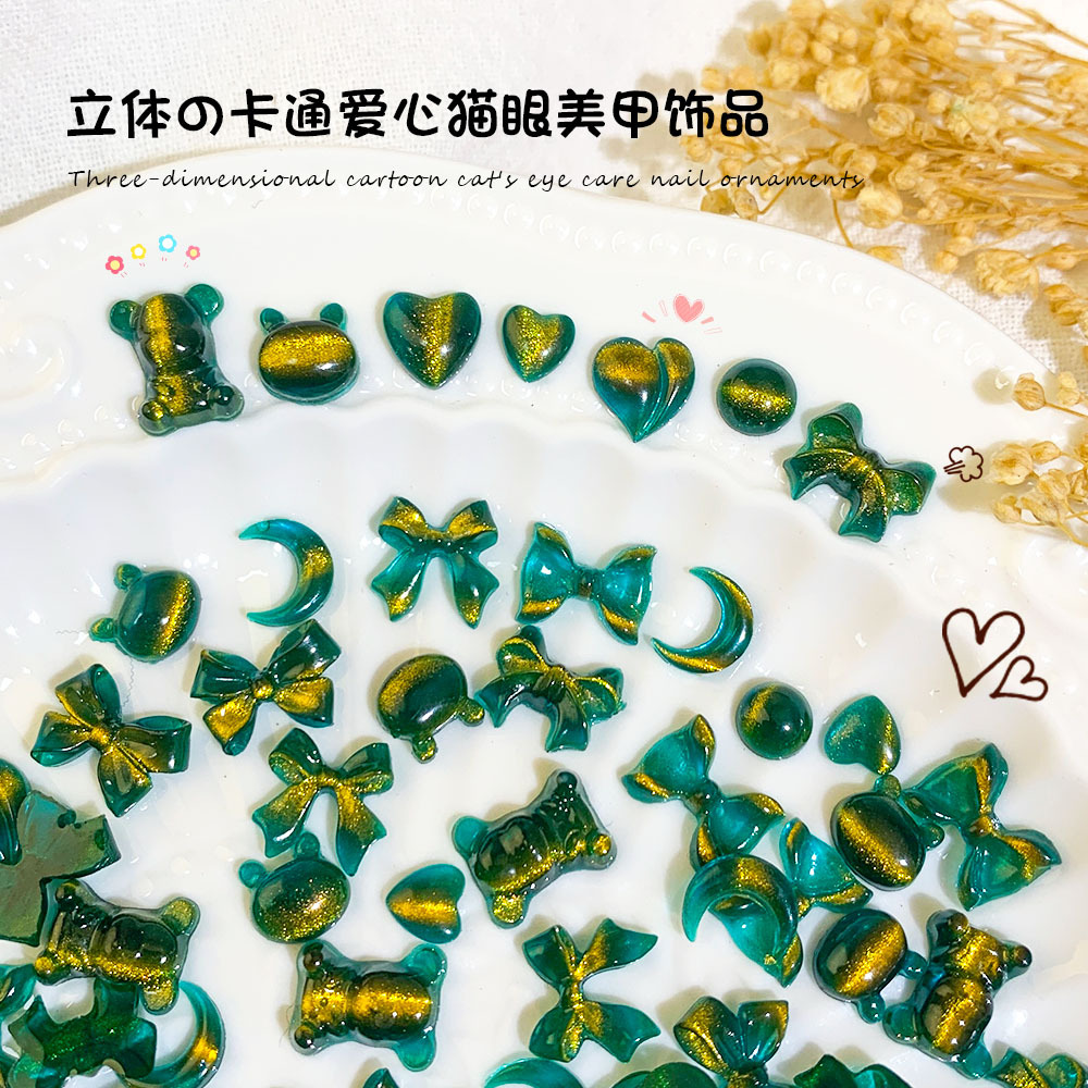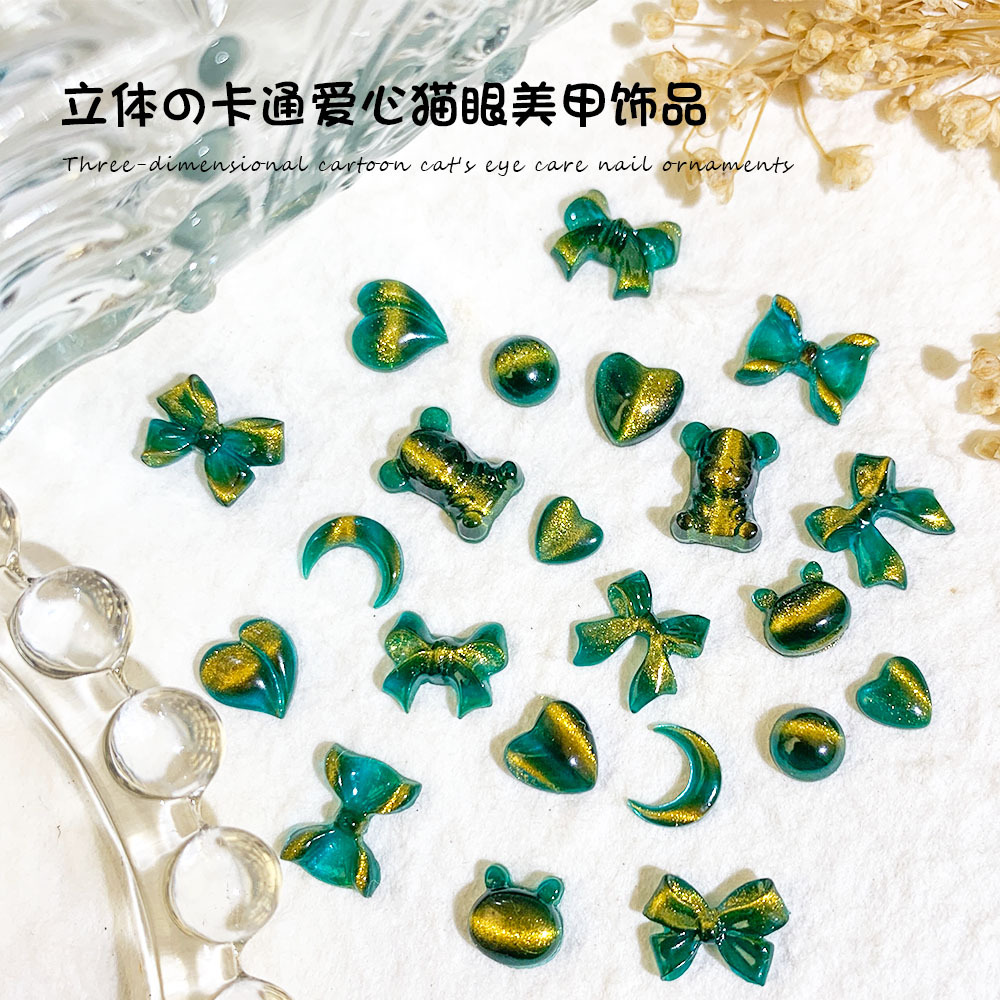 그물 빨간 고양이 눈 녹색 손톱 보석 활 곰 문 사랑 방귀 복숭아 수지 네일 액세서리 도매