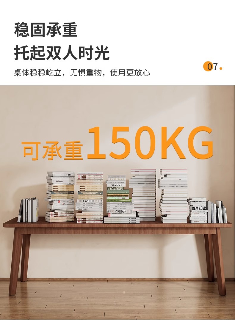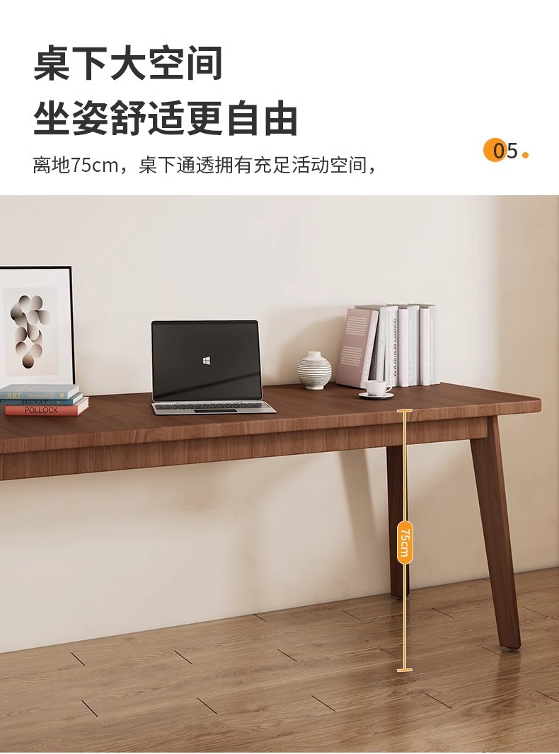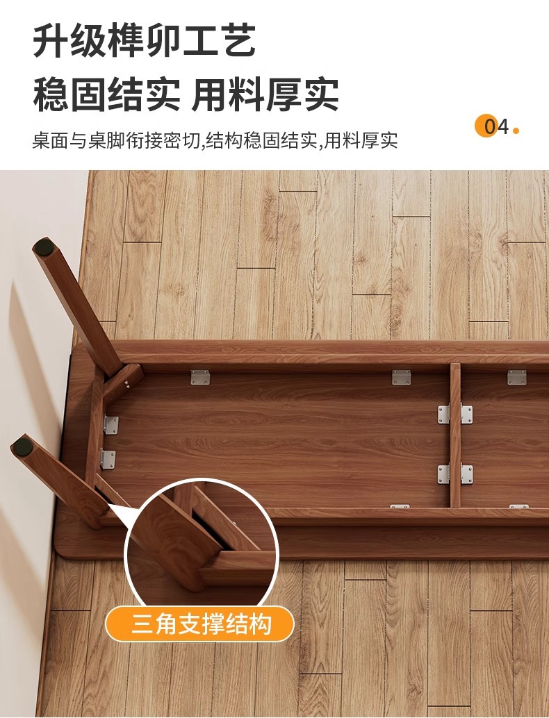 [단단한 소나무 두꺼운 테이블 다리] 160_50_75cm 호두 색.